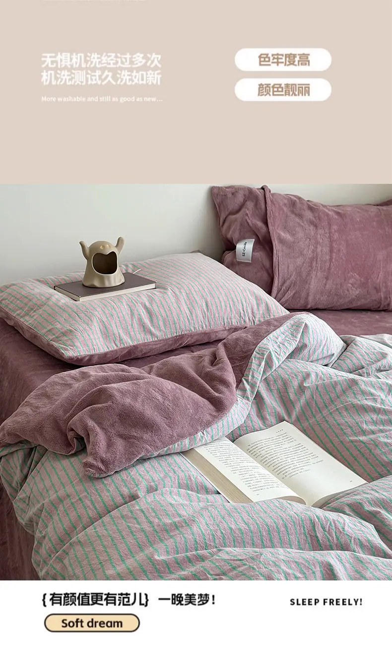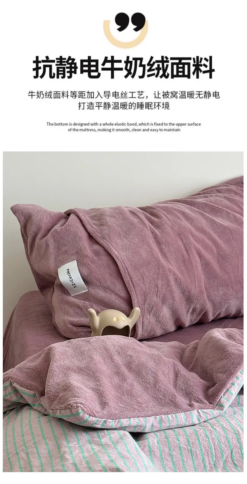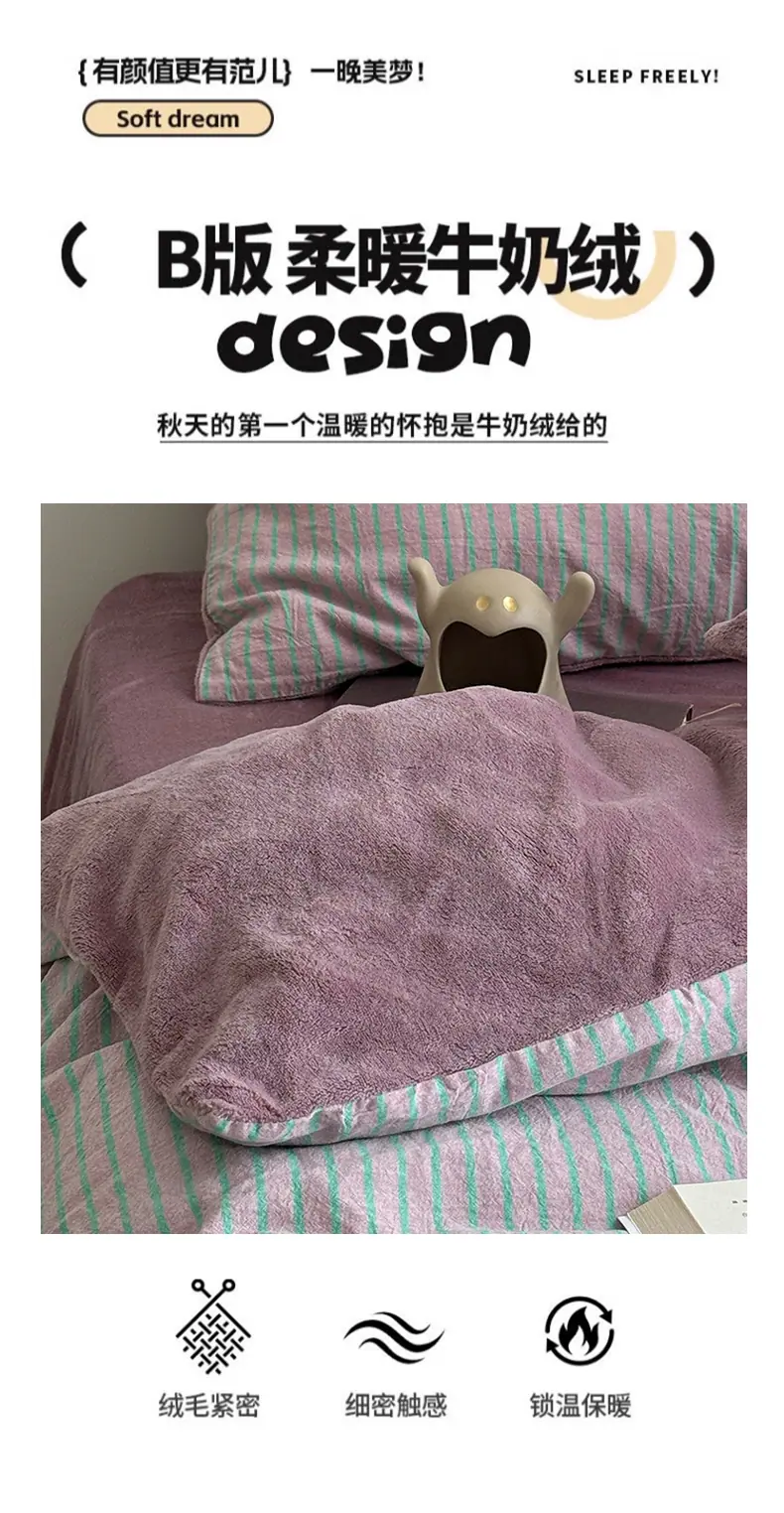 Compra Juego de cuatro piezas de ropa de cama de terciopelo de leche de algodón puro simple lado AB ins invierno engrosado funda nórdica de forro polar de coral sábana juego de tres piezas 4 al por mayor en Joom.pro