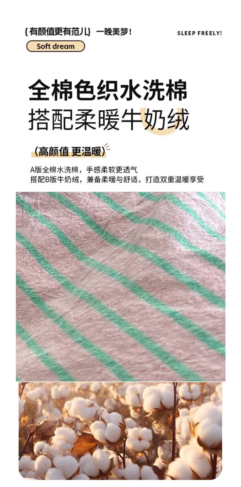 stripe, Twilight-Pink【A All-Cotton Washed Cotton B Milk Velvet Skin-Friendly and Warm】, Twilight-Green【A All-C...