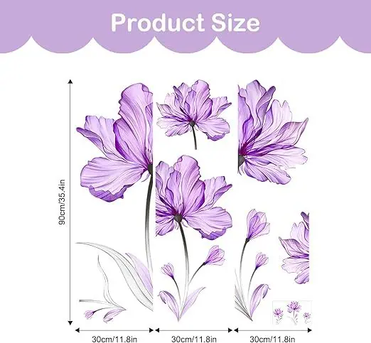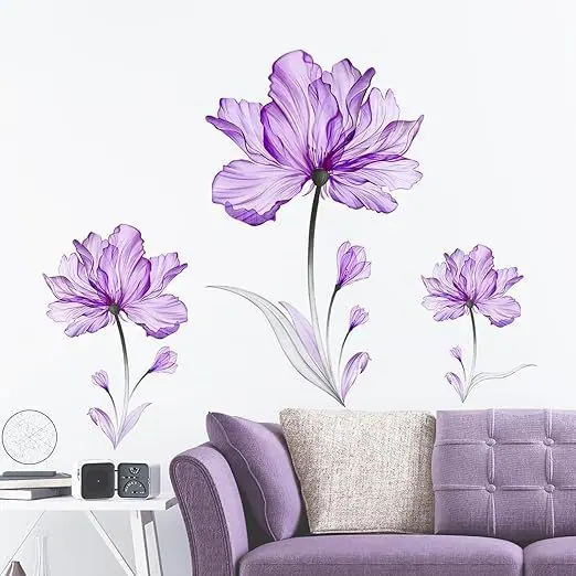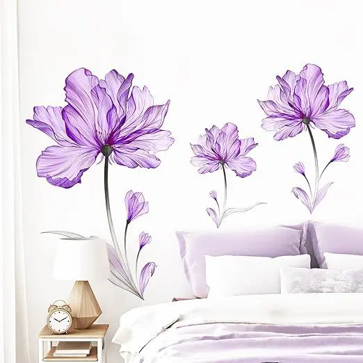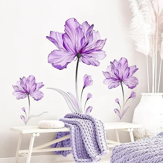 Adhesivo de pared patchwork de flores moradas pintadas transfronterizo, pared de fondo, decoración del hogar, adhesivo de PVC autoadhesivo al por mayor