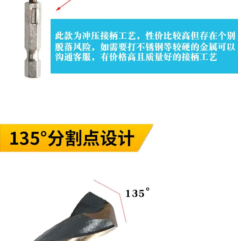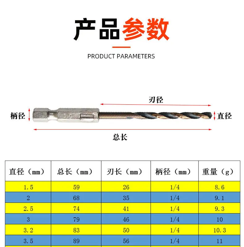 Descripción del Producto:Este tipo de broca está disponible en nuestra empresa para taladrar madera, para taladrar metal y para taladrado de metal de alta gama. Este modelo es una broca de gama media especializada para taladrar metal. Por favor, identifíquela. Si necesita otros modelos, ¡comuníquese con el servicio al cliente!