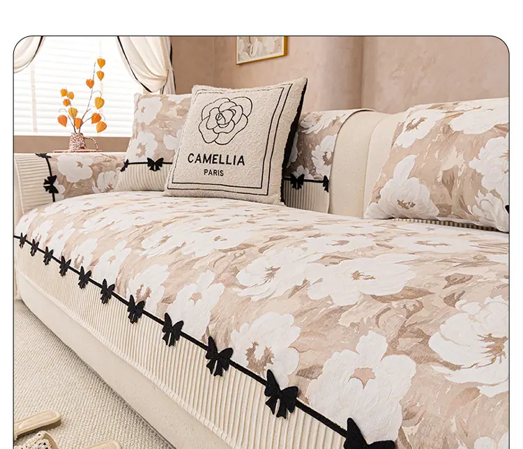 Cojín de Sofá Universal de Chenilla Cuatro Estaciones 2025 Nuevo Francés de Alta Gama Fijo Antideslizante Cubierta de Tela para Cojín de Asiento de Fila Recta