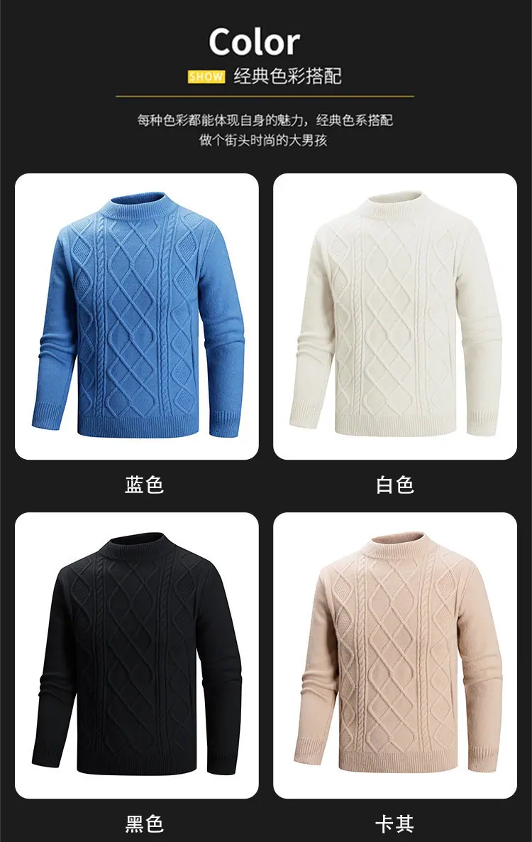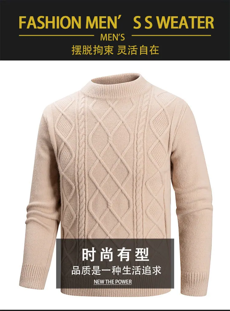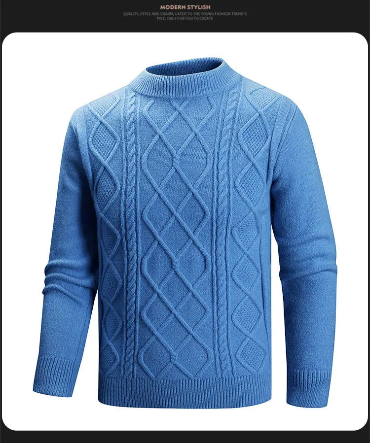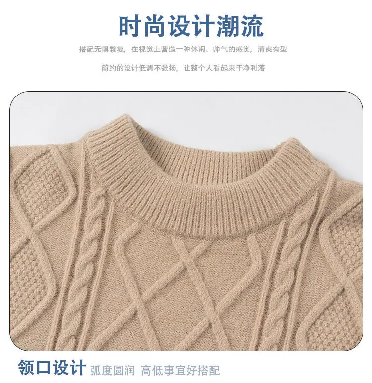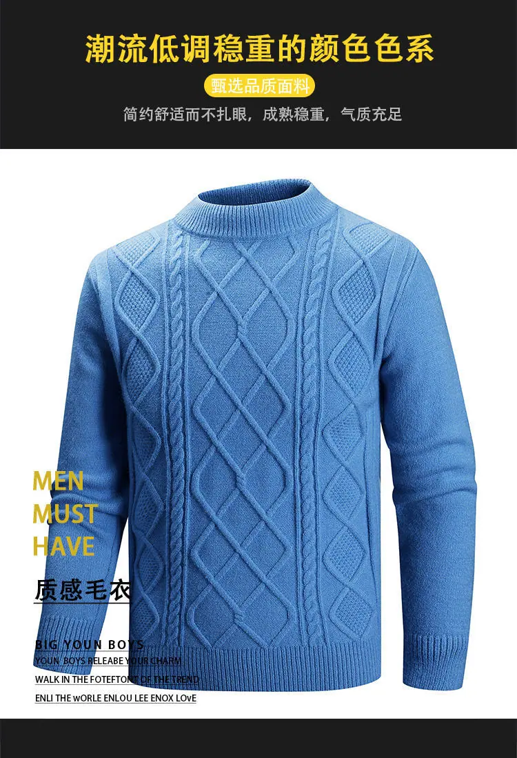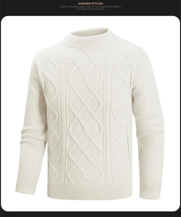 Otoño/Invierno 2025 Nuevo Suéter Casual para Hombre Marca de Tendencia Moda Punto Cable Cuello Redondo Jersey Tejido Top para Hombre