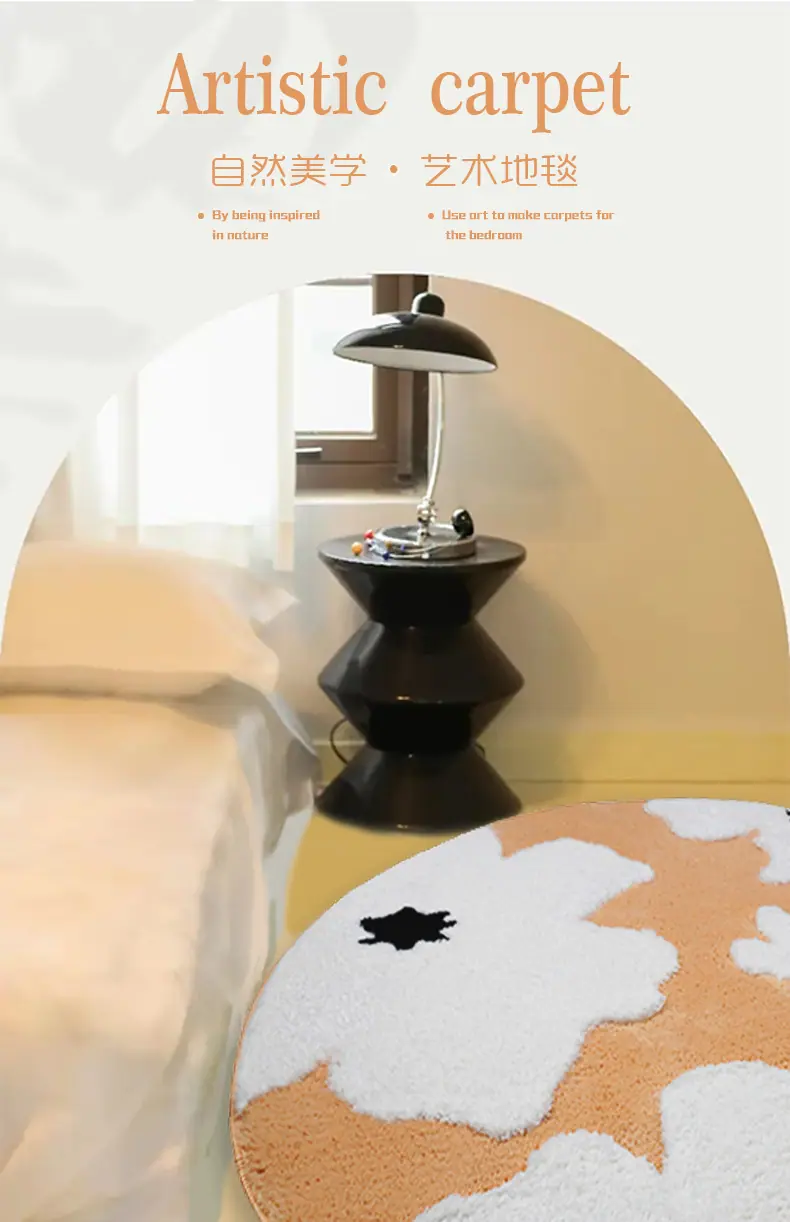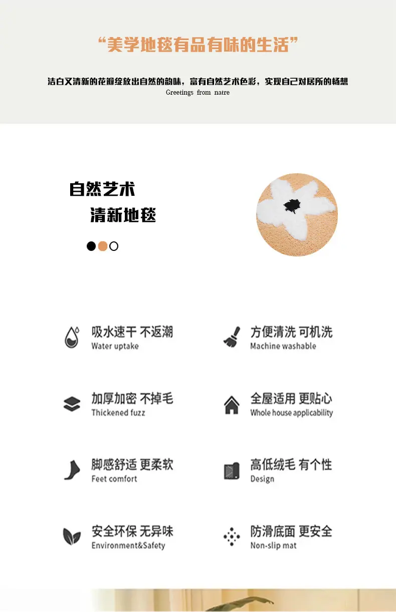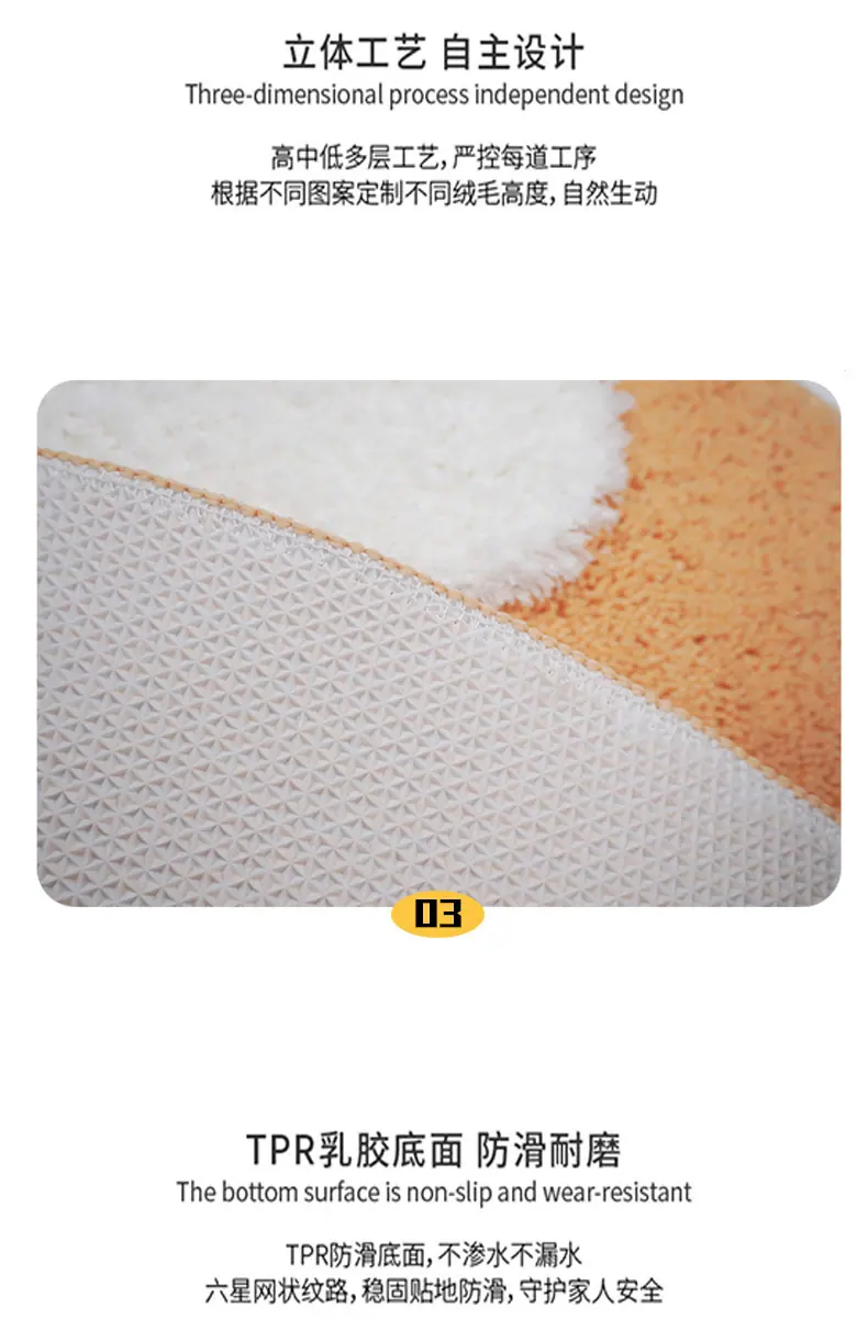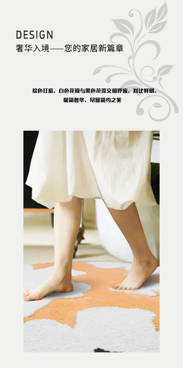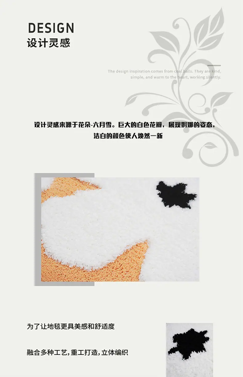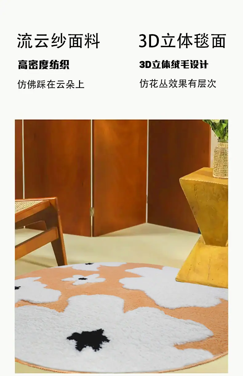 Alfombra Redonda Simple de Flores Flocada Tufted para Sala de Estar, Alfombra de Noche para Dormitorio, Alfombrilla para Pies, Tapete Absorbente para Baño, Alfombrilla Antideslizante