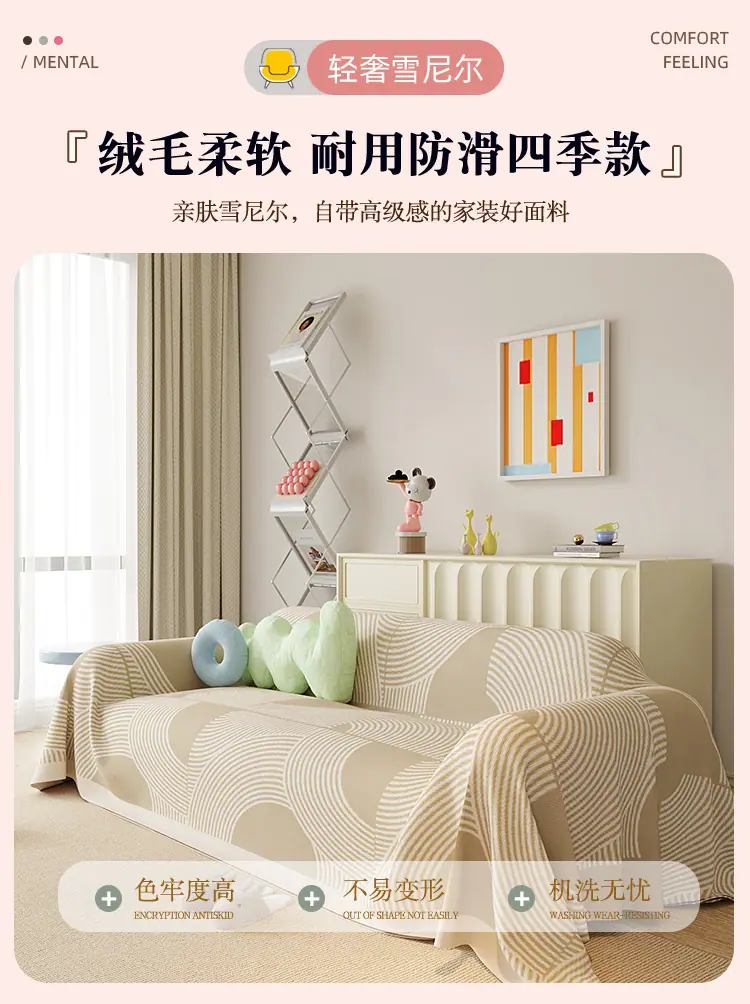 Flying Diary Toalla para Sofá Estilo Lujo Ligero Moderno Minimalista Versátil Cubre Sofá de Chenilla Antideslizante Anti Arañazos de Gato Cubre Sofá