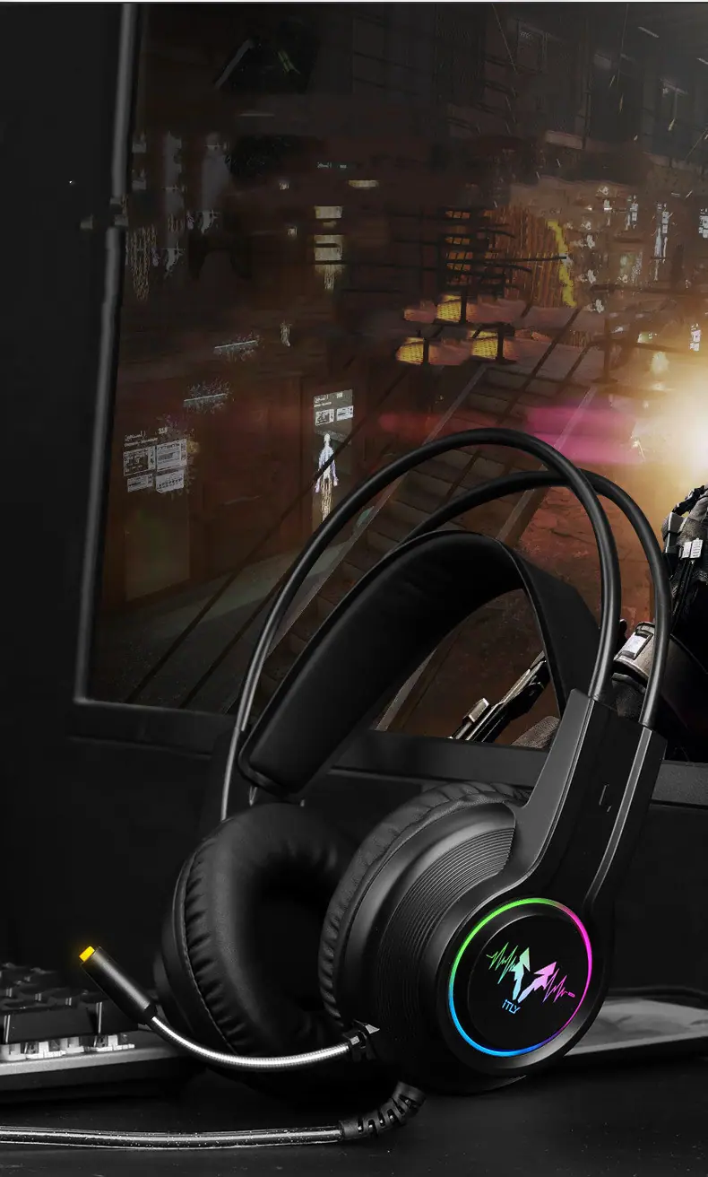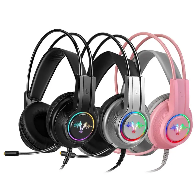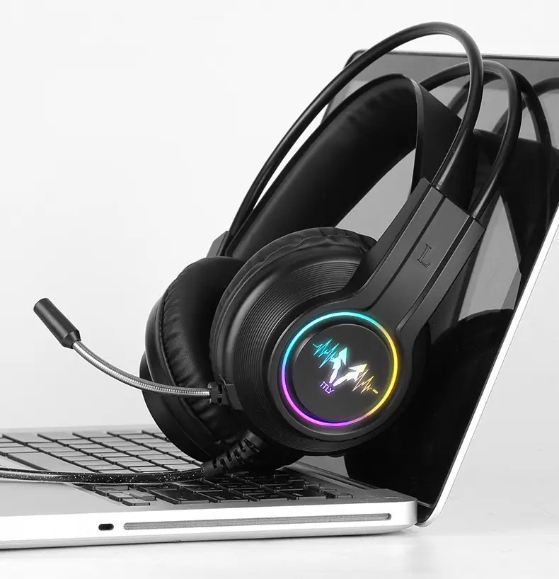 Auriculares gaming RGB AE wolfhounder H200 para computadora de escritorio, auriculares gaming con cable, auriculares para e-sports