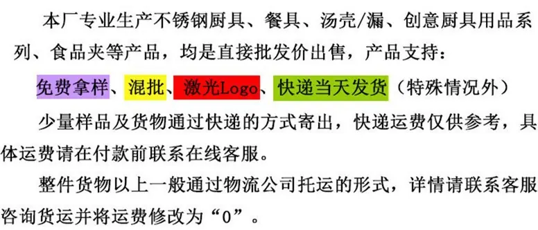 La Fábrica de Productos de Acero Inoxidable Jieyang City Lancheng District Pandong Zhanxingyuan es un fabricante y procesador profesional de utensilios de cocina de acero inoxidable, vajilla, espátulas, cucharones/coladores para sopa, series de utensilios de cocina creativos, pinzas para alimentos y otros productos, y cuenta con un sistema de gestión de calidad completo y científico. Nuestros productos tienen especificaciones completas y excelente calidad. Continuaremos trabajando arduamente, tomando la calidad del producto como la vida de la empresa y el servicio íntegro como el alma de la compañía, para crear un estilo de vida hogareño cómodo. Amigos de todos los ámbitos de la vida son bienvenidos a visitar, guiar y discutir negocios.