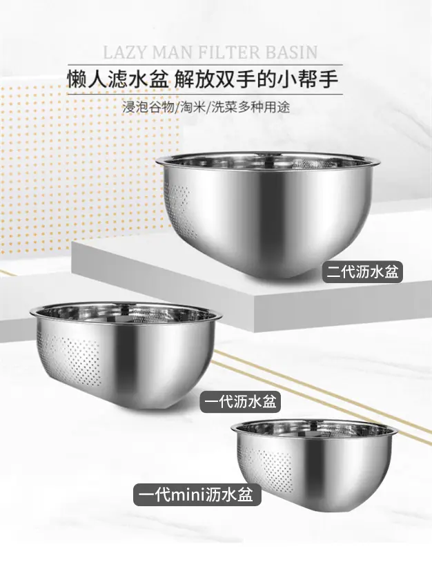 Compra Colador de Acero Inoxidable 304 Espesado para Lavar Verduras Colador de Arroz Escurridor Palangana Suministros de Cocina para el Hogar Fabricante Mayorista al por mayor en Joom.pro