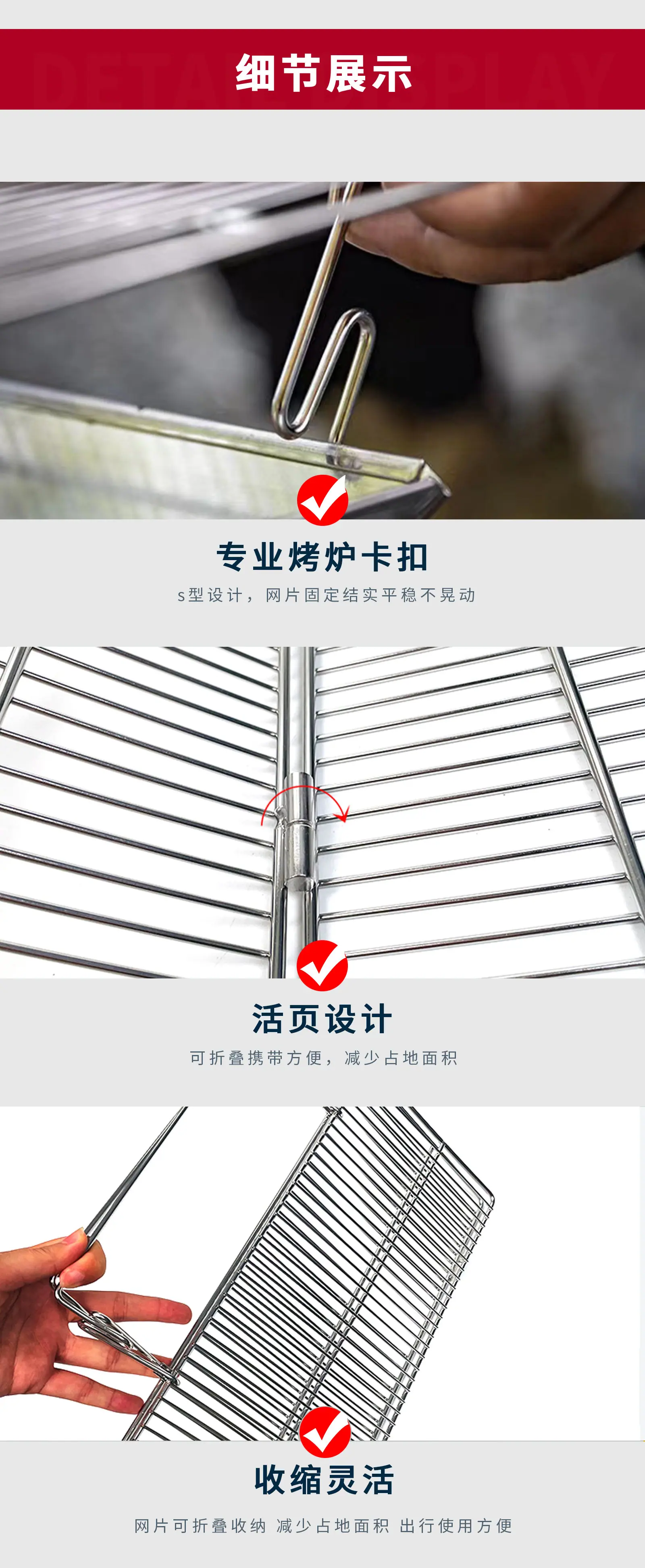 Parrilla de Barbacoa Plegable de Acero Inoxidable Engrosado Personalizado Malla de Repuesto para Parrilla para Camping al Aire Libre Parrilla de Barbacoa Portátil para Picnic