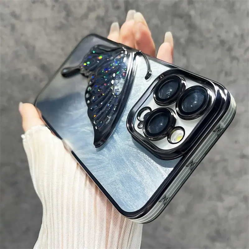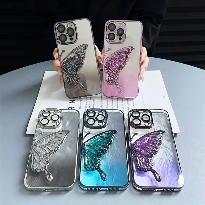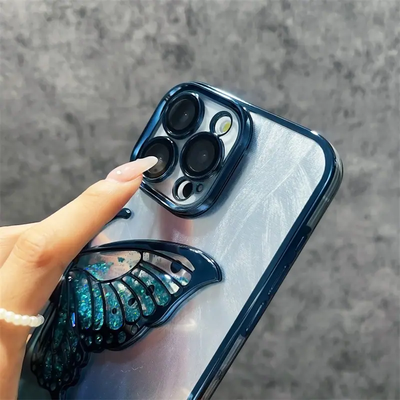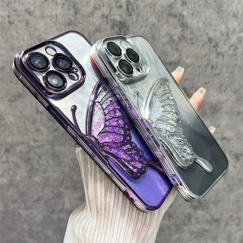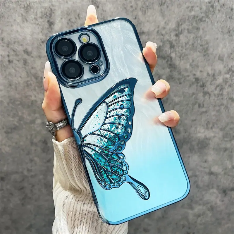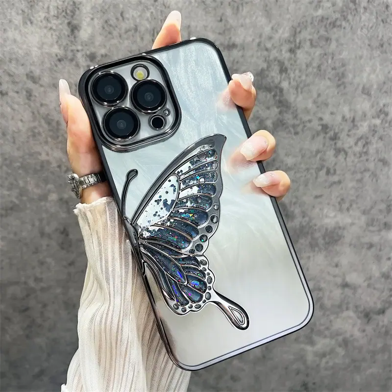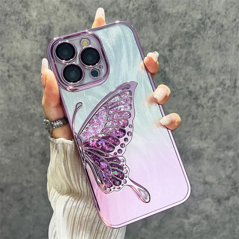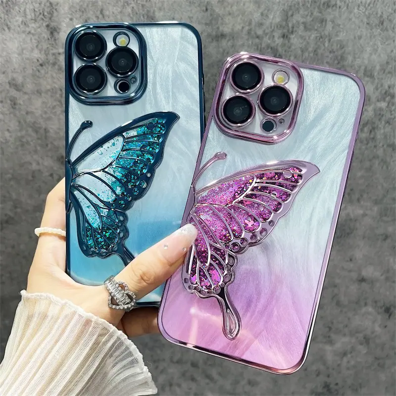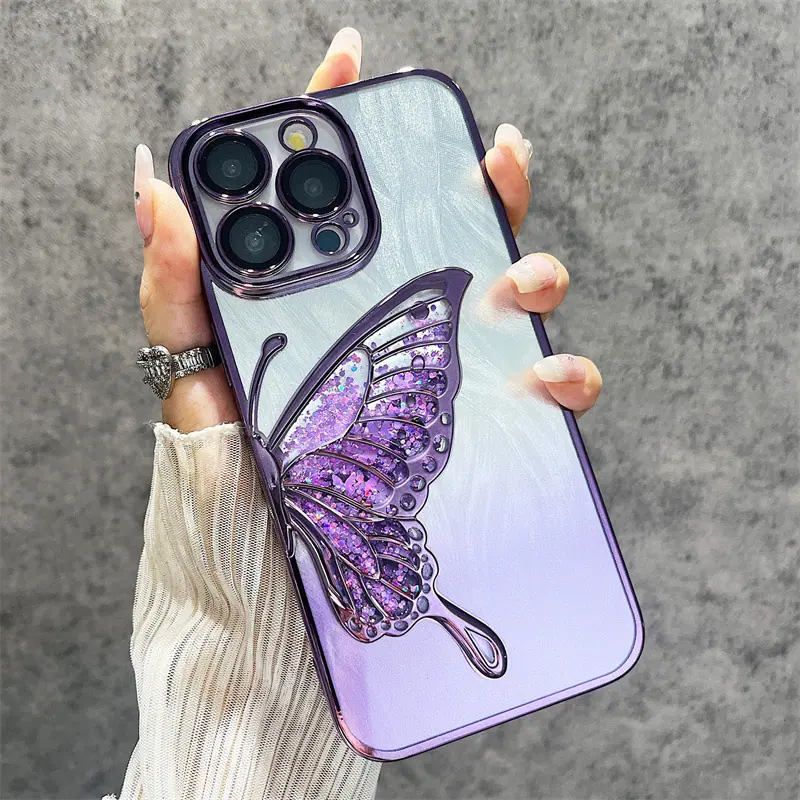 Funda de lujo de hilo de plumas con arena movediza de mariposa para iPhone16promax para Apple 15pro Todo incluido 13/14 Mujeres