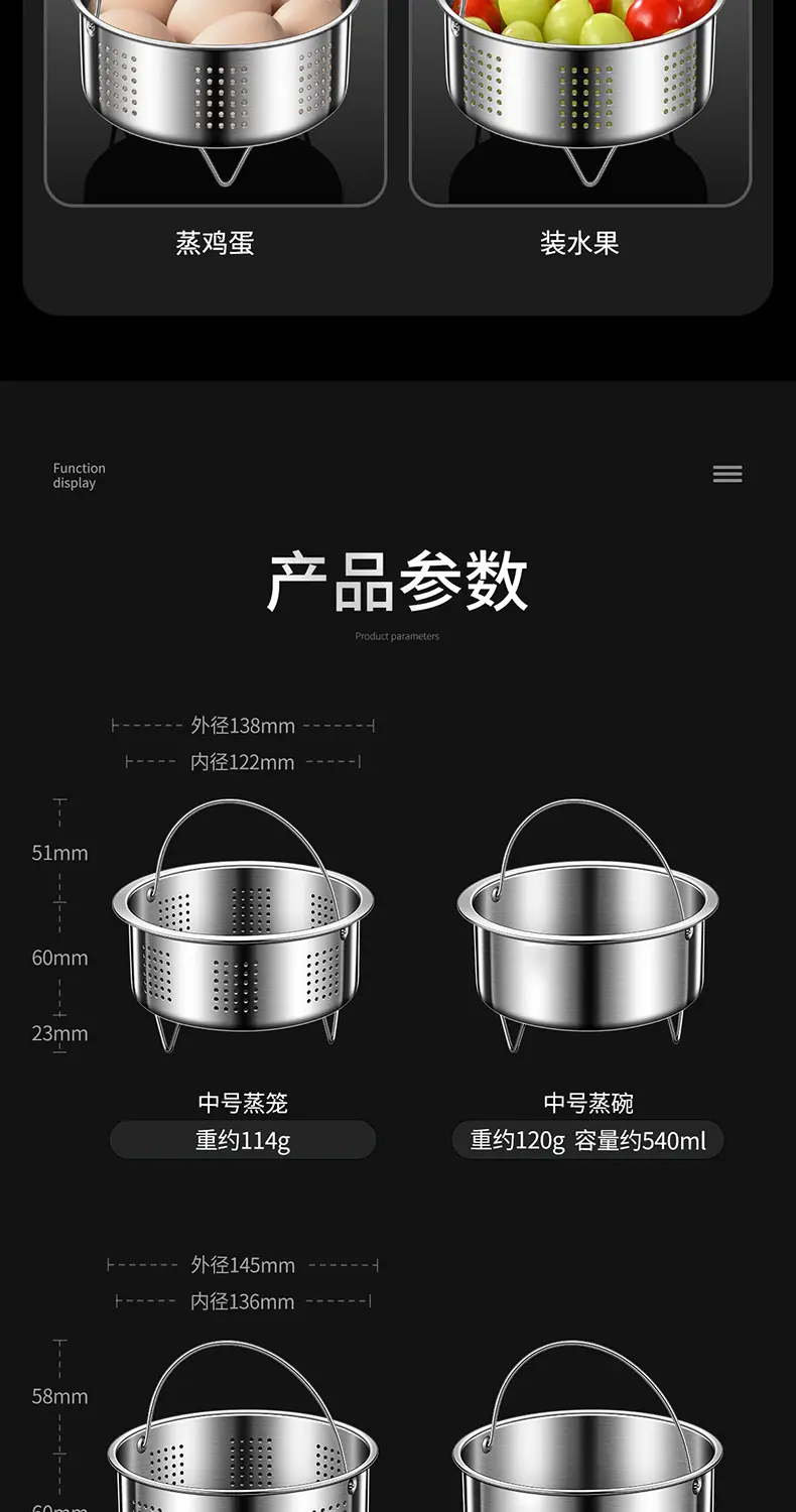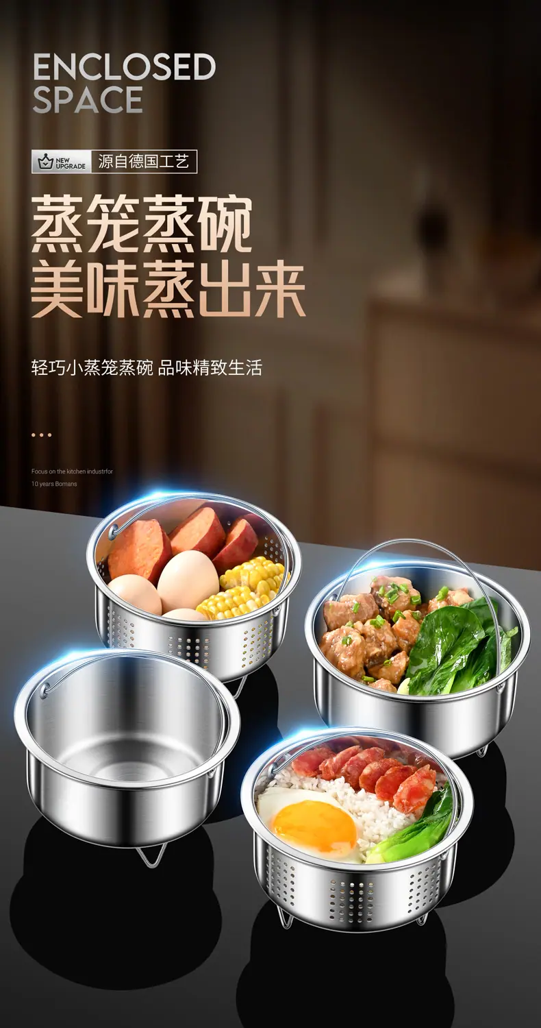 304 small steamer: medium size with stand, 304 small steamer: large size with stand, 304 Small Steaming Bowl: ...