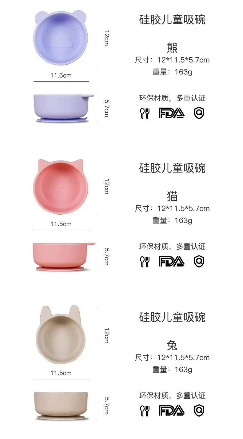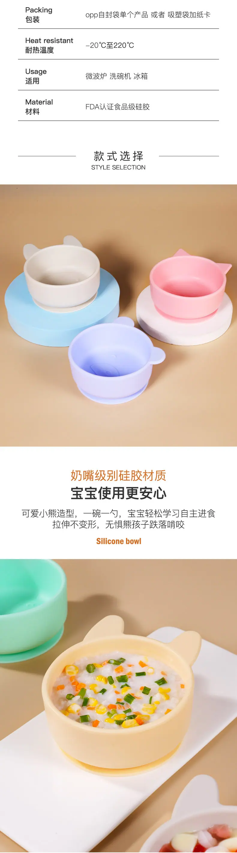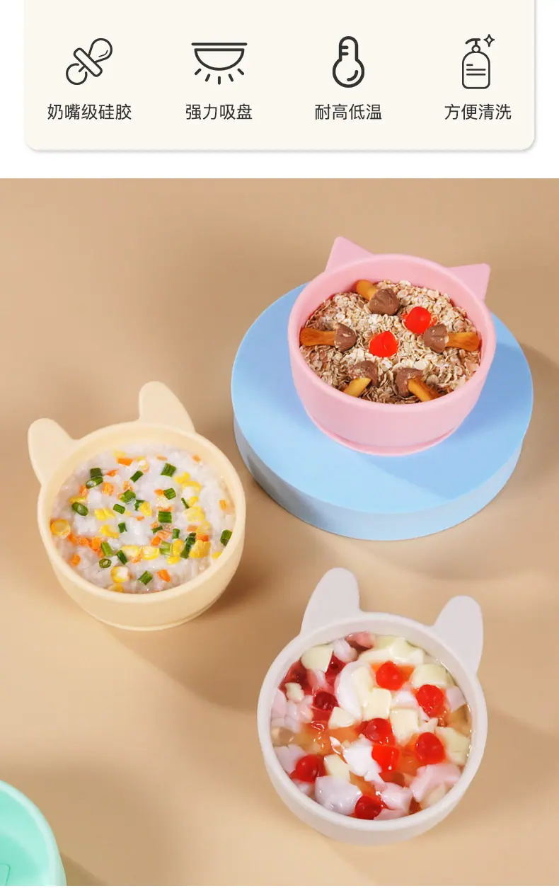 Compra Nuevo Tazón de Silicona para Niños con Ventosa, Vajilla para Alimentación Infantil, Tazón para Alimentos Anticaída, Tazón con Ventosa Integrada al por mayor en Joom.pro