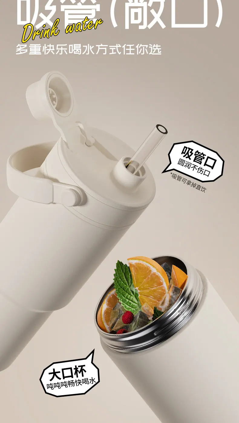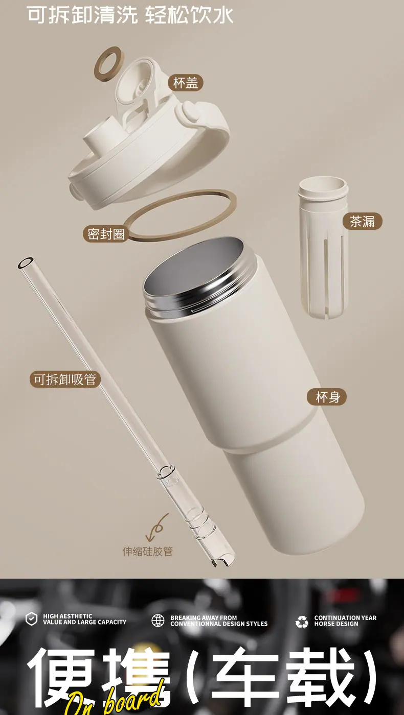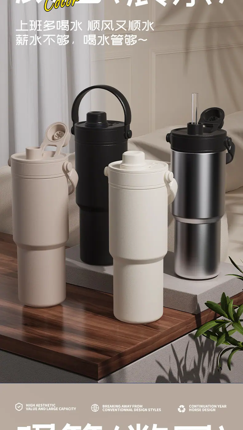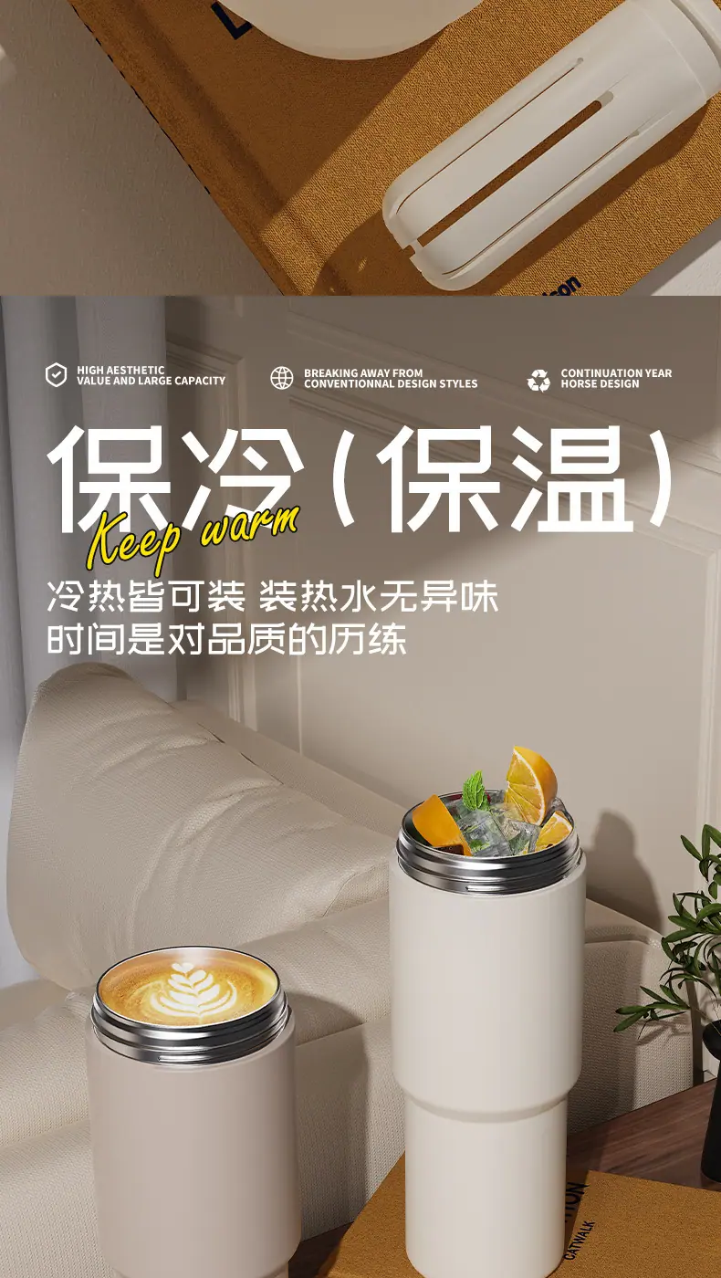 Vaso para Coche Aislado Patrón de Dibujos Animados Vaso de Agua Portátil Gran Capacidad Taza de Café Vaso de Agua de Acero Inoxidable de Alto Valor