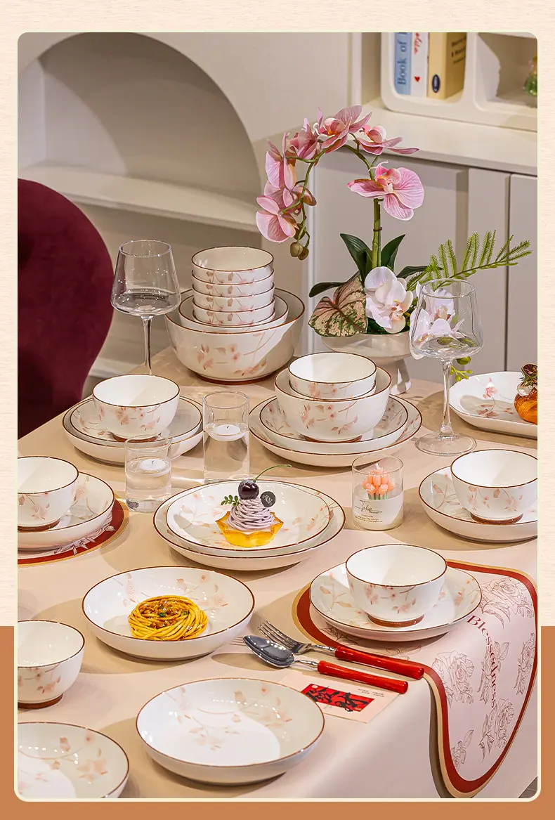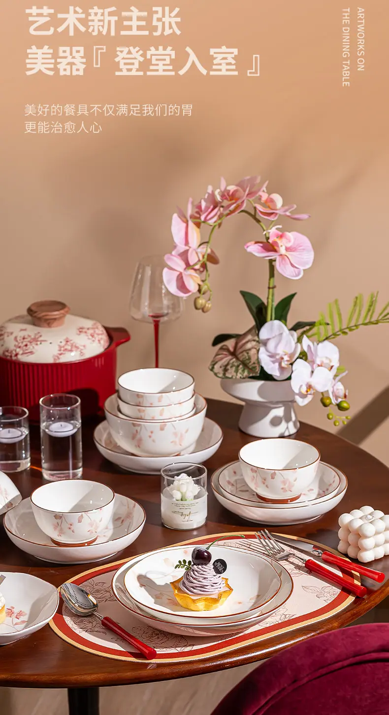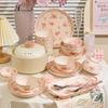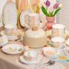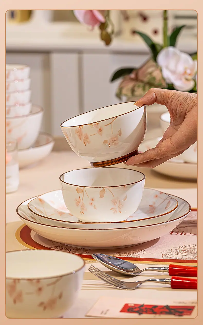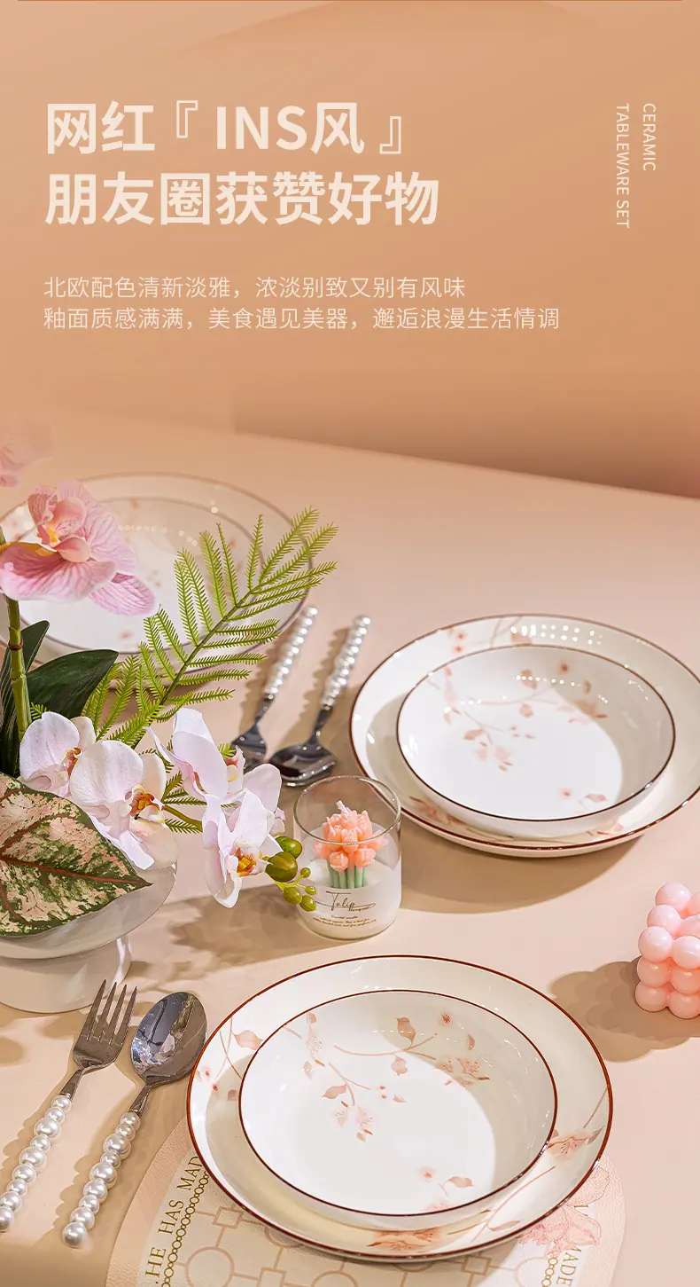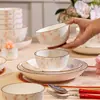 Juego de vajilla de estilo ins de alto valor para el hogar, color bajo cubierta de alta temperatura, combinación de plato y tazón de arroz de cerámica fresca pequeña, regalo