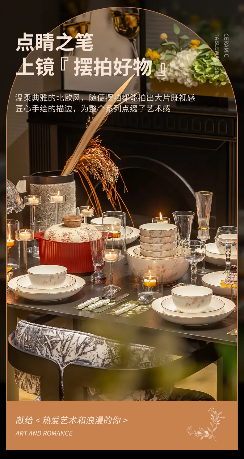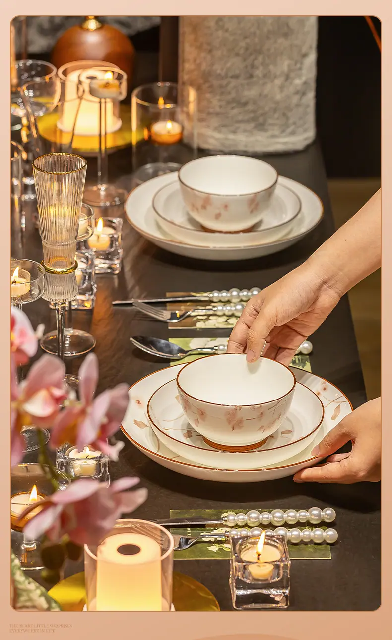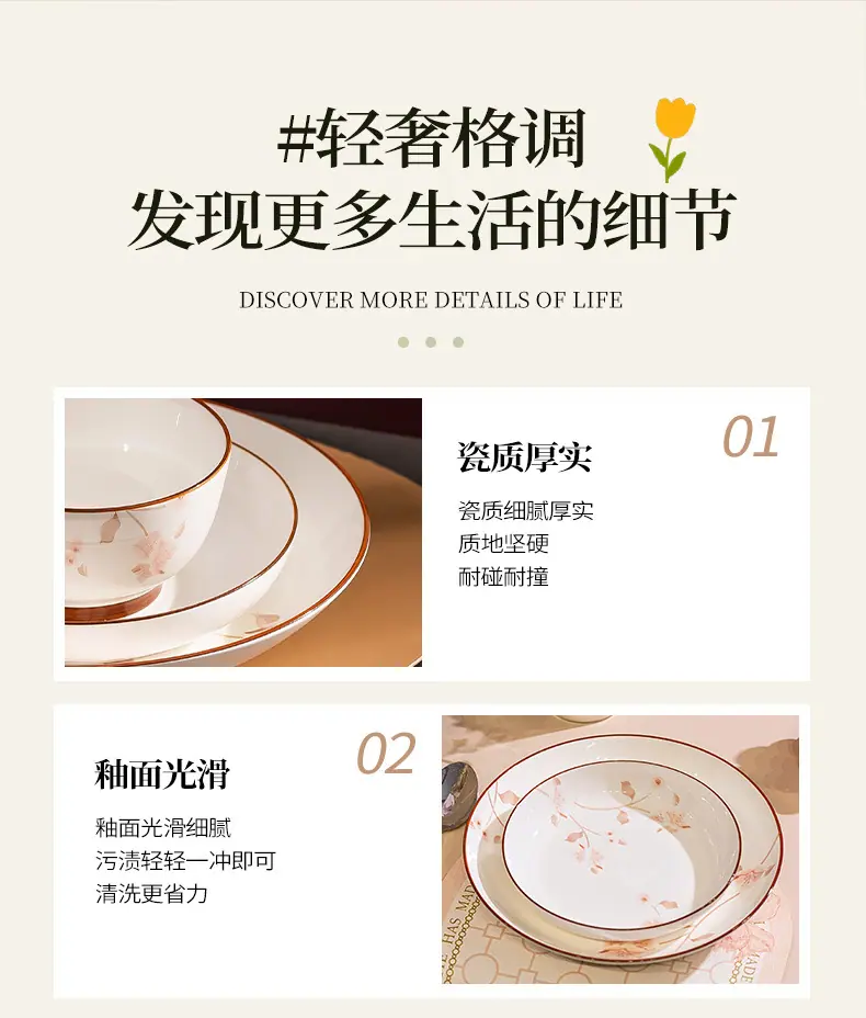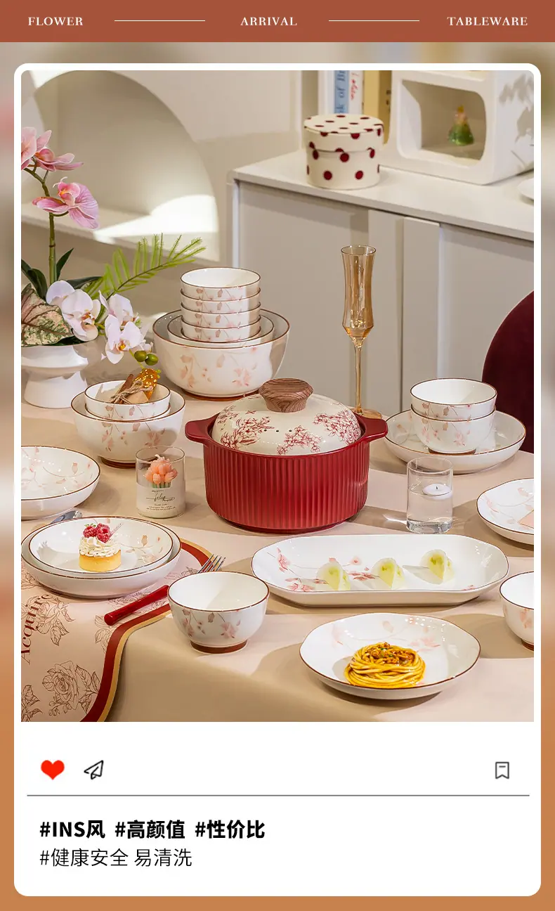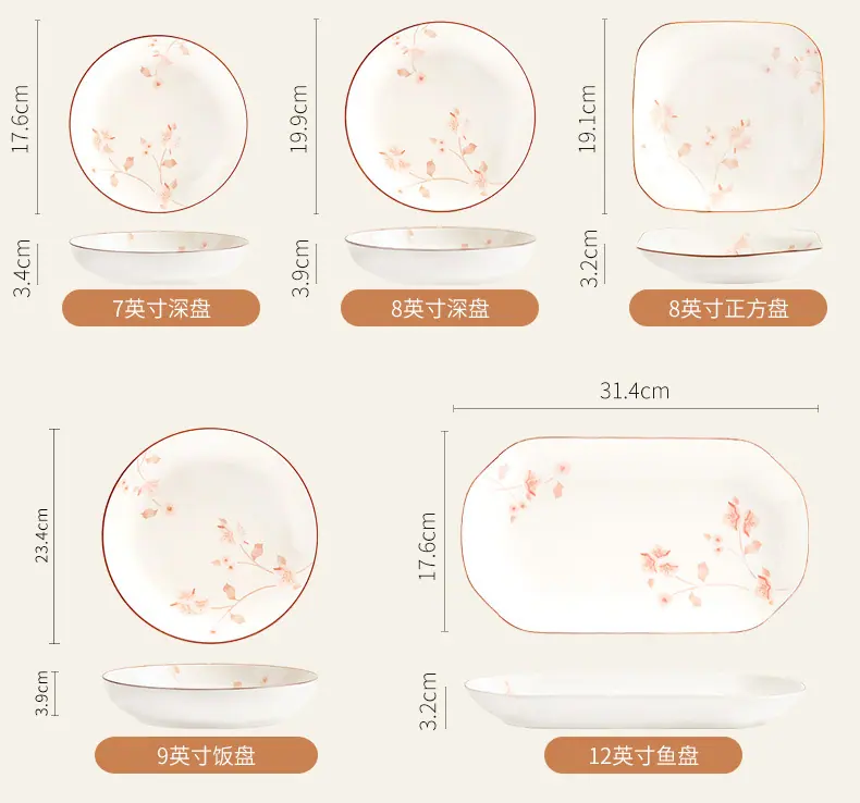 Juego de vajilla de estilo ins de alto valor para el hogar, color bajo cubierta de alta temperatura, combinación de plato y tazón de arroz de cerámica fresca pequeña, regalo