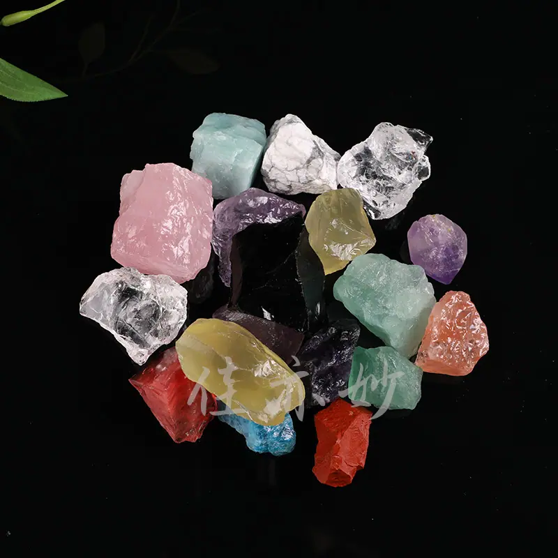 White crystal, Citrine, Light amethyst, Green fluorite, Male yellow stone, Blue stone, Orange salt, Colored fl...