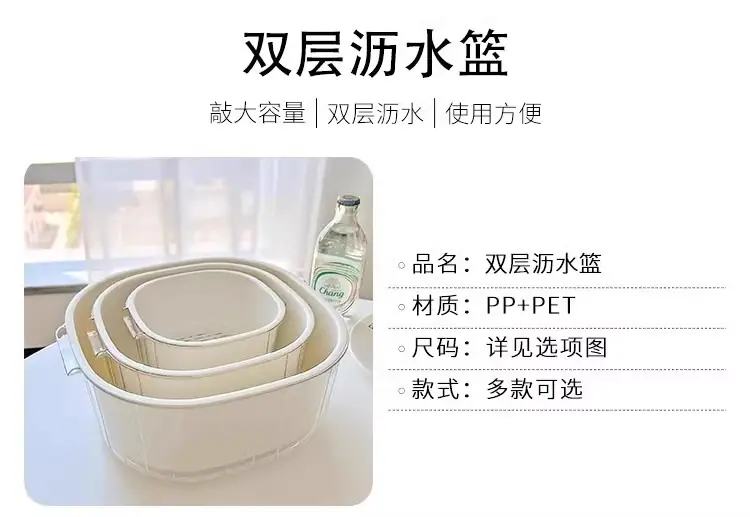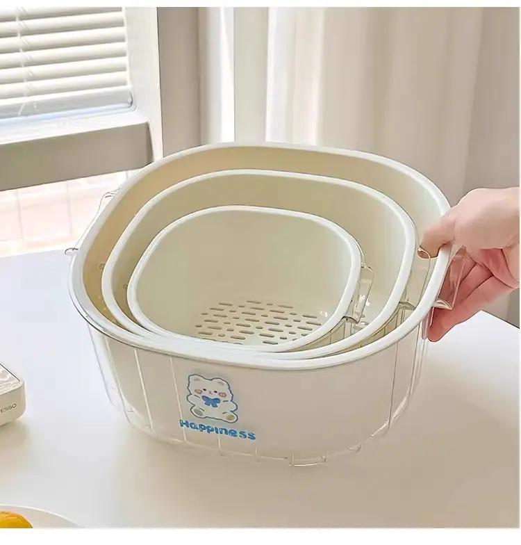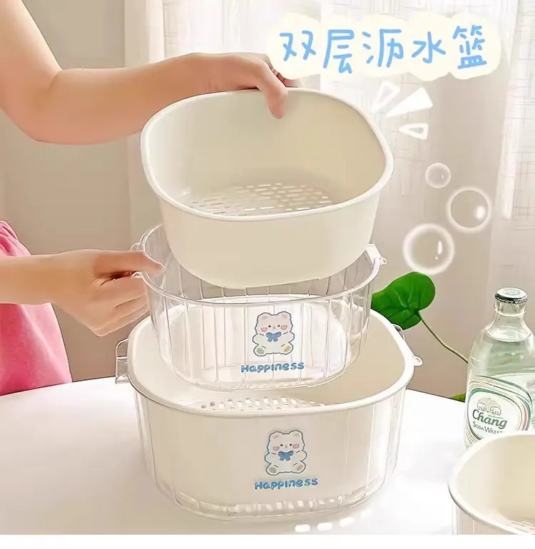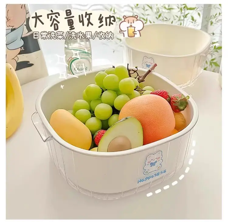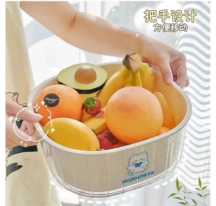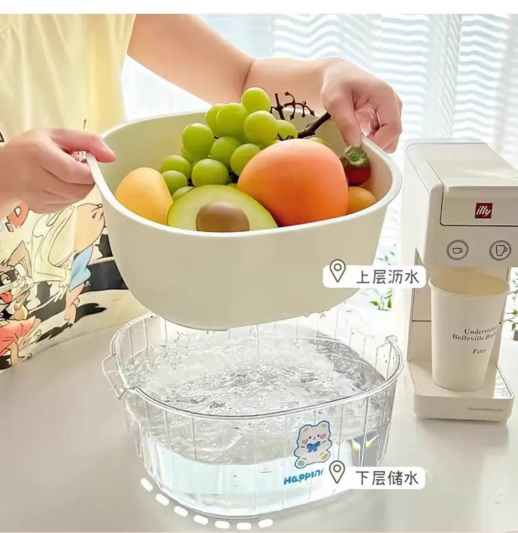 Cesta de drenaje para lavabo de verduras de doble capa, cesta de plástico para cocina, hogar, plato de fruta, filtro de agua para sala de estar, cesta para verduras, cesta para lavar, almacenamiento