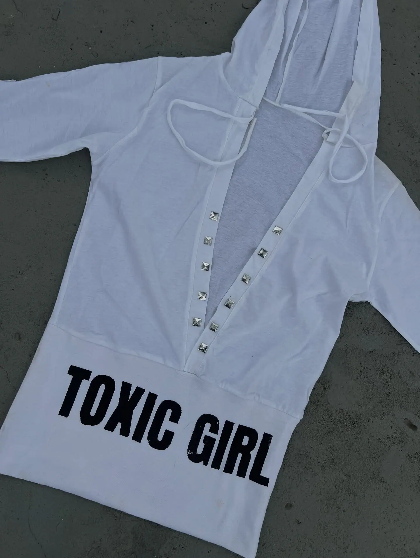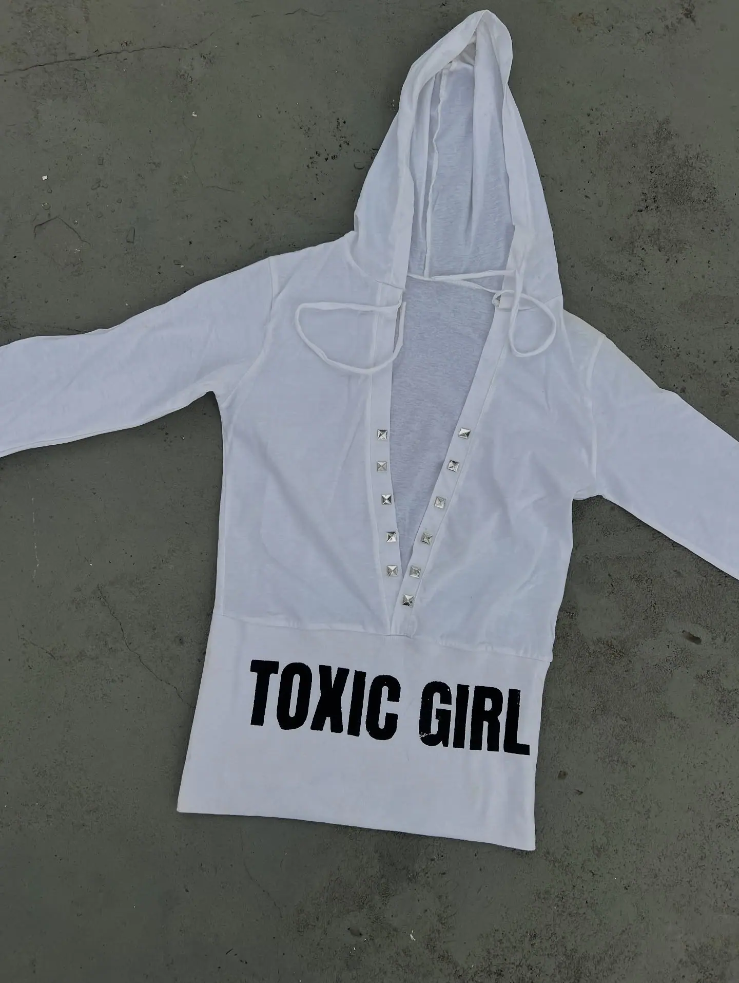 2025 Otoño Nuevo Personalidad Americana Caliente Pedrería Cuello en V Manga Larga con Capucha Camiseta de Mujer Tendencia Moda Urbana Chica Caliente