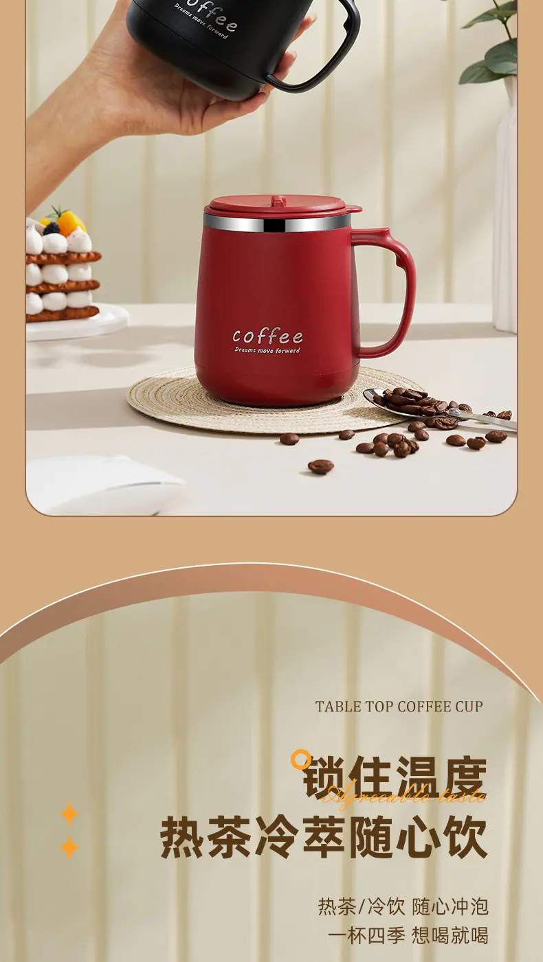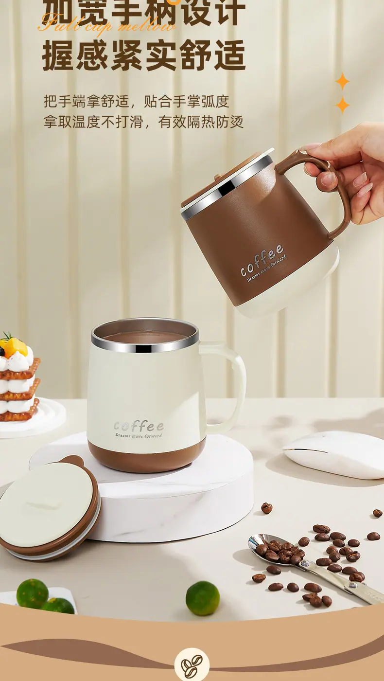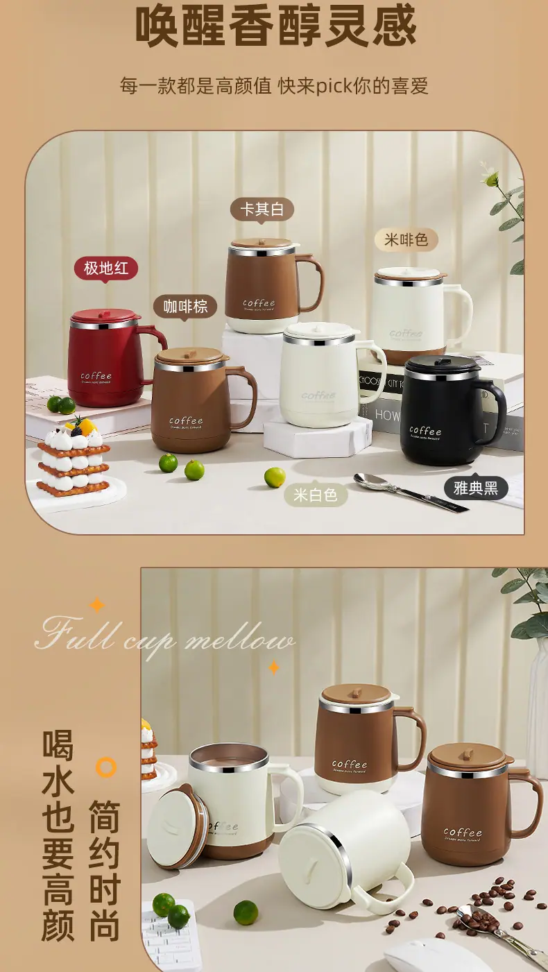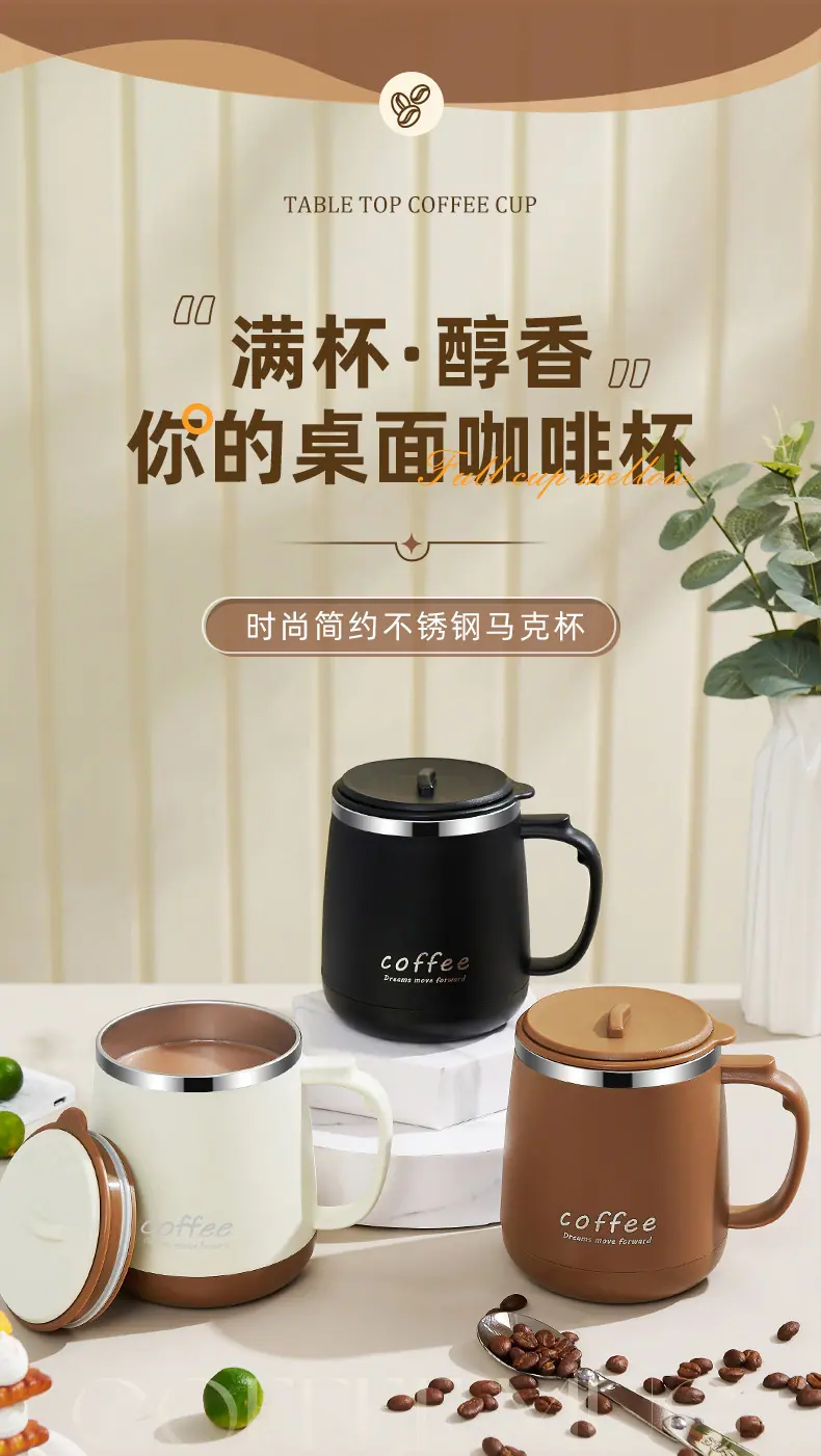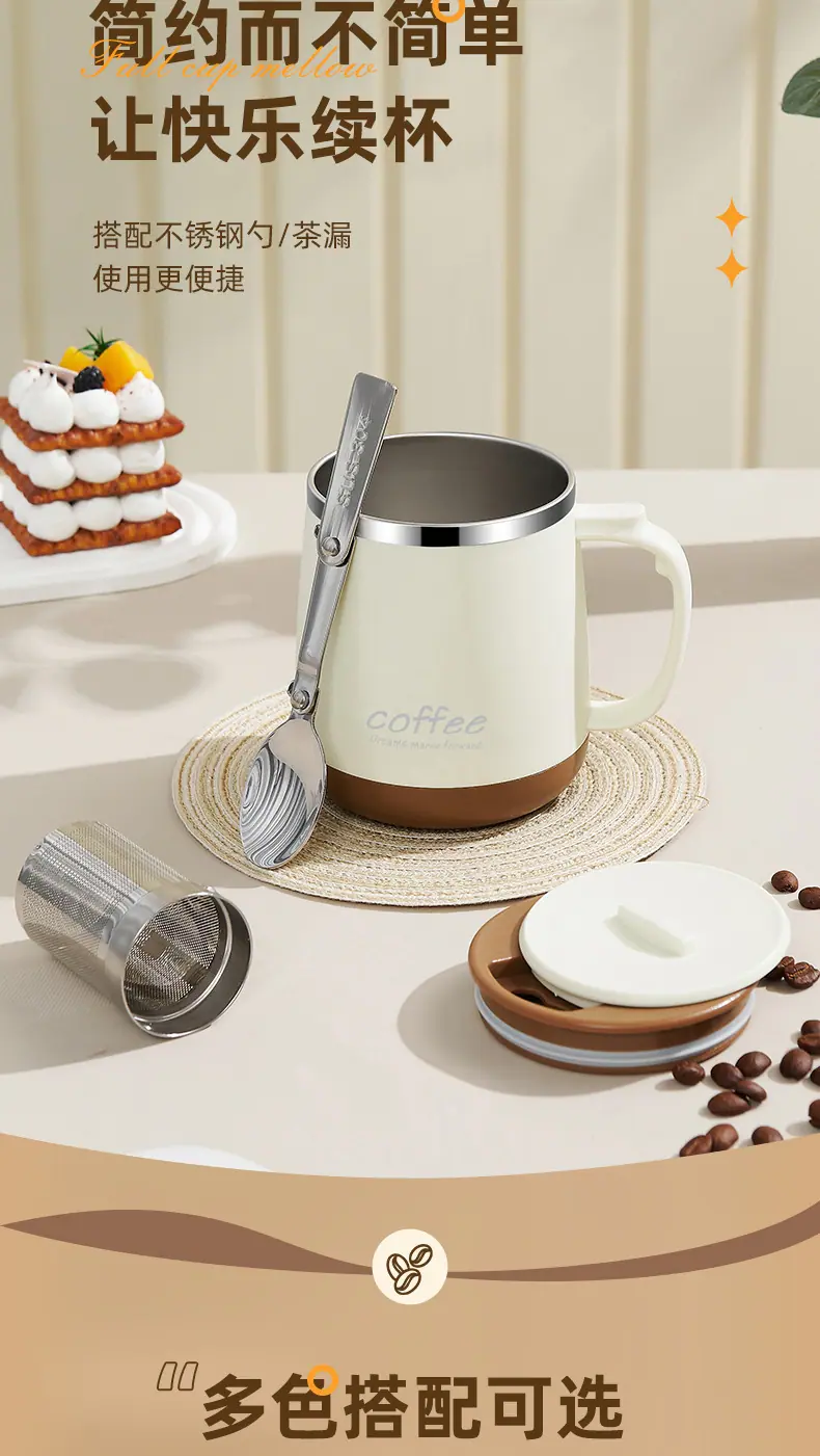 Compra Taza de Café de Acero Inoxidable 304 Taza Portátil Simple con Tapa y Cuchara Taza para Té de Oficina a Prueba de Fugas Vaso Termo al por mayor en Joom.pro