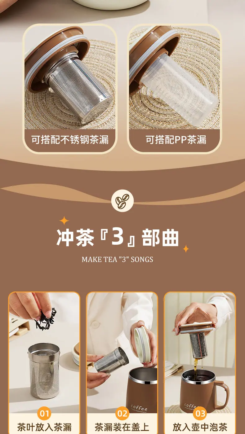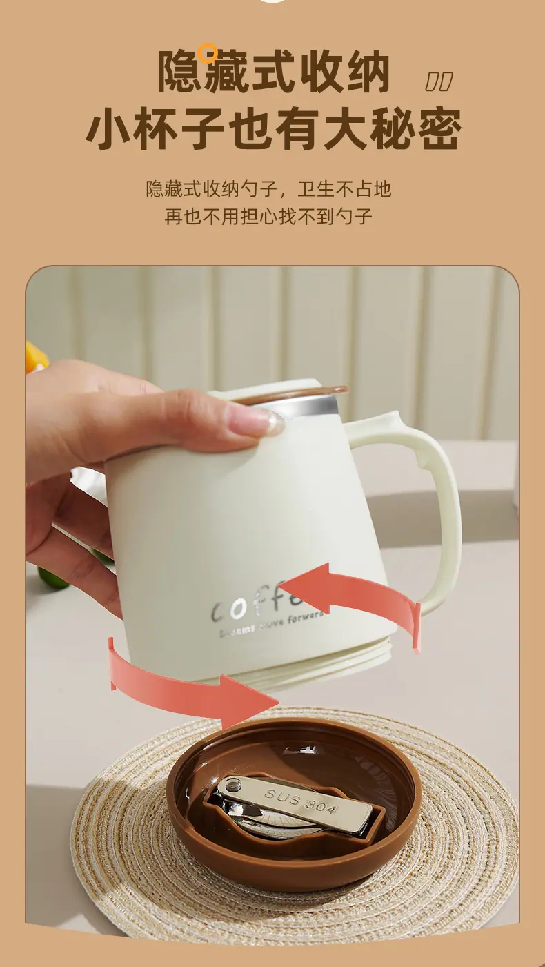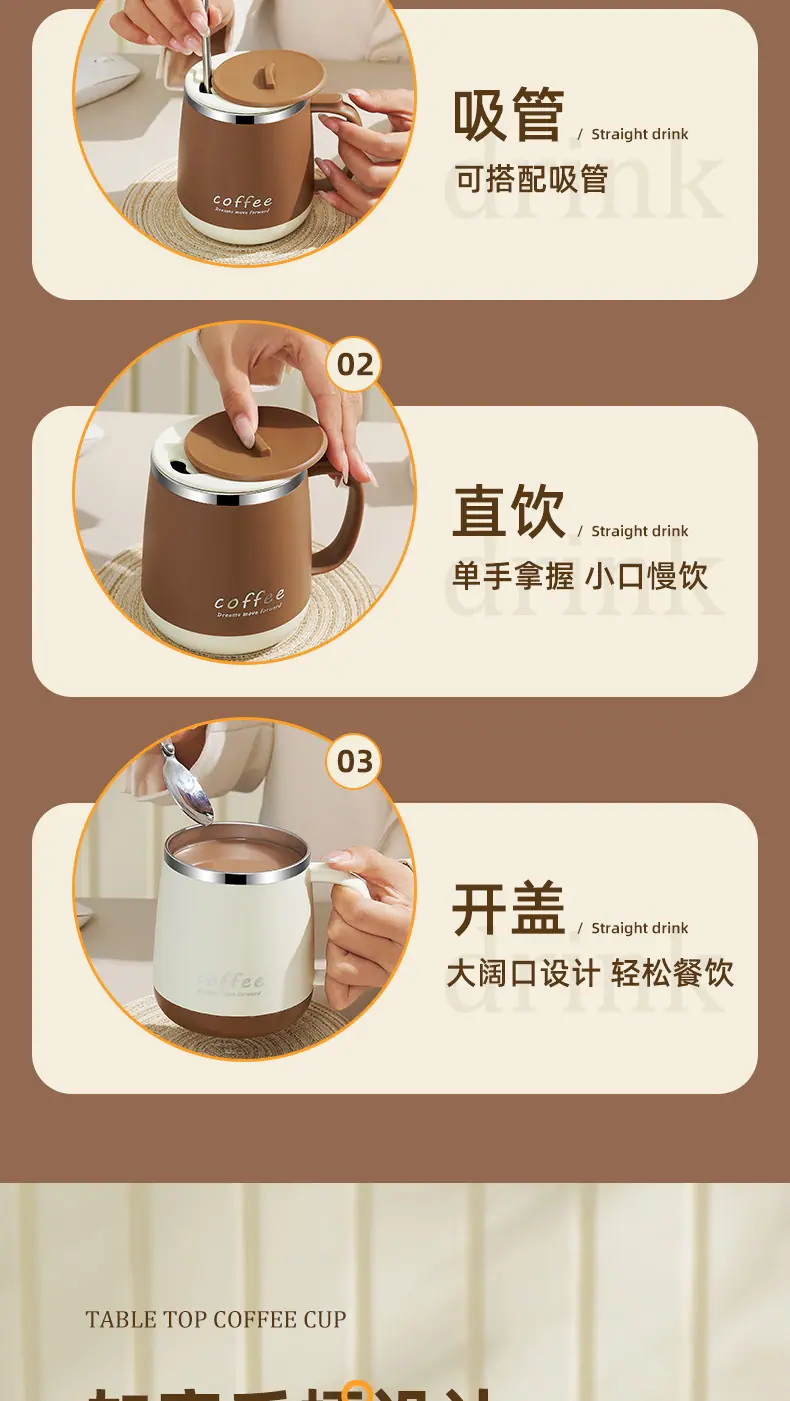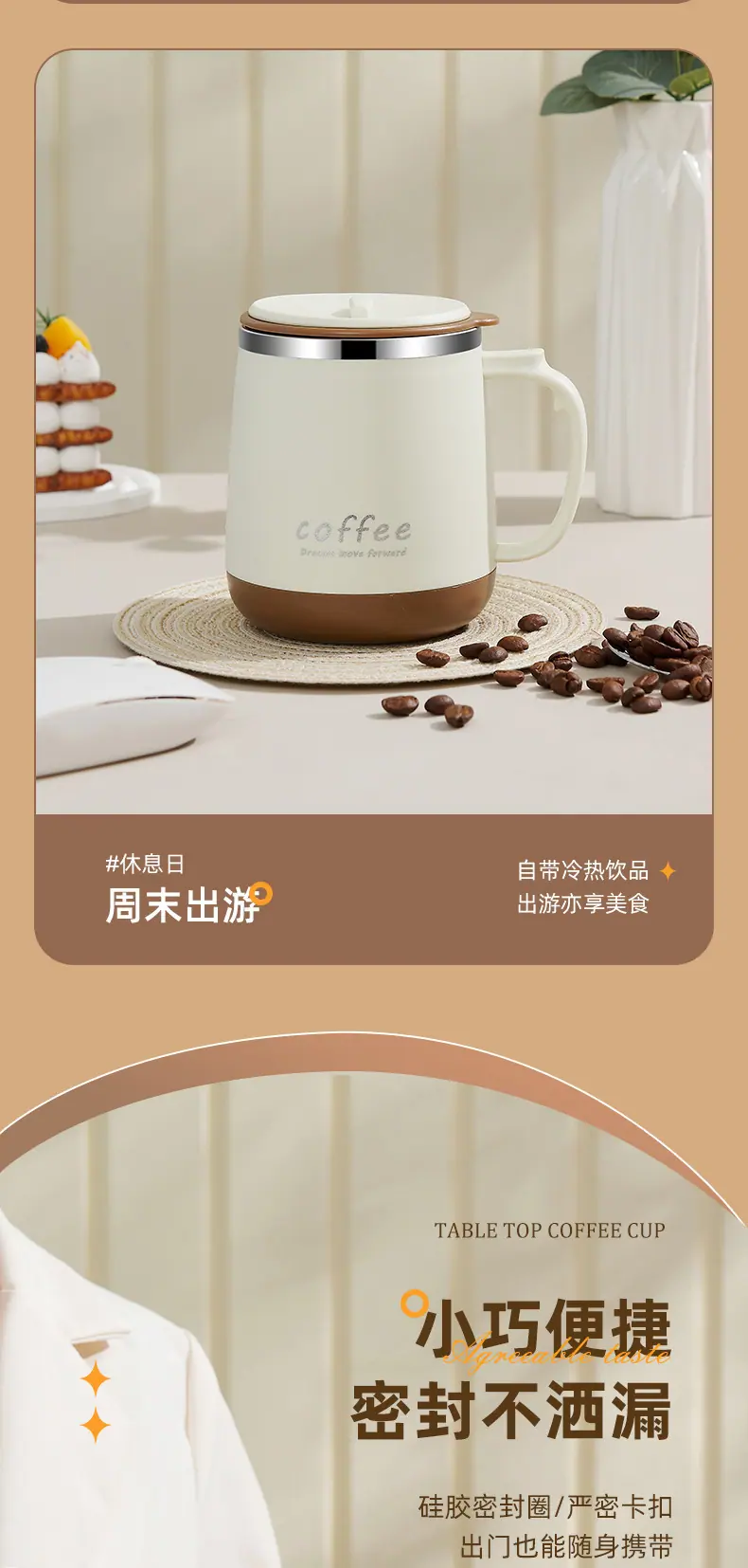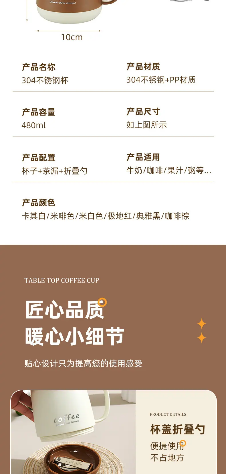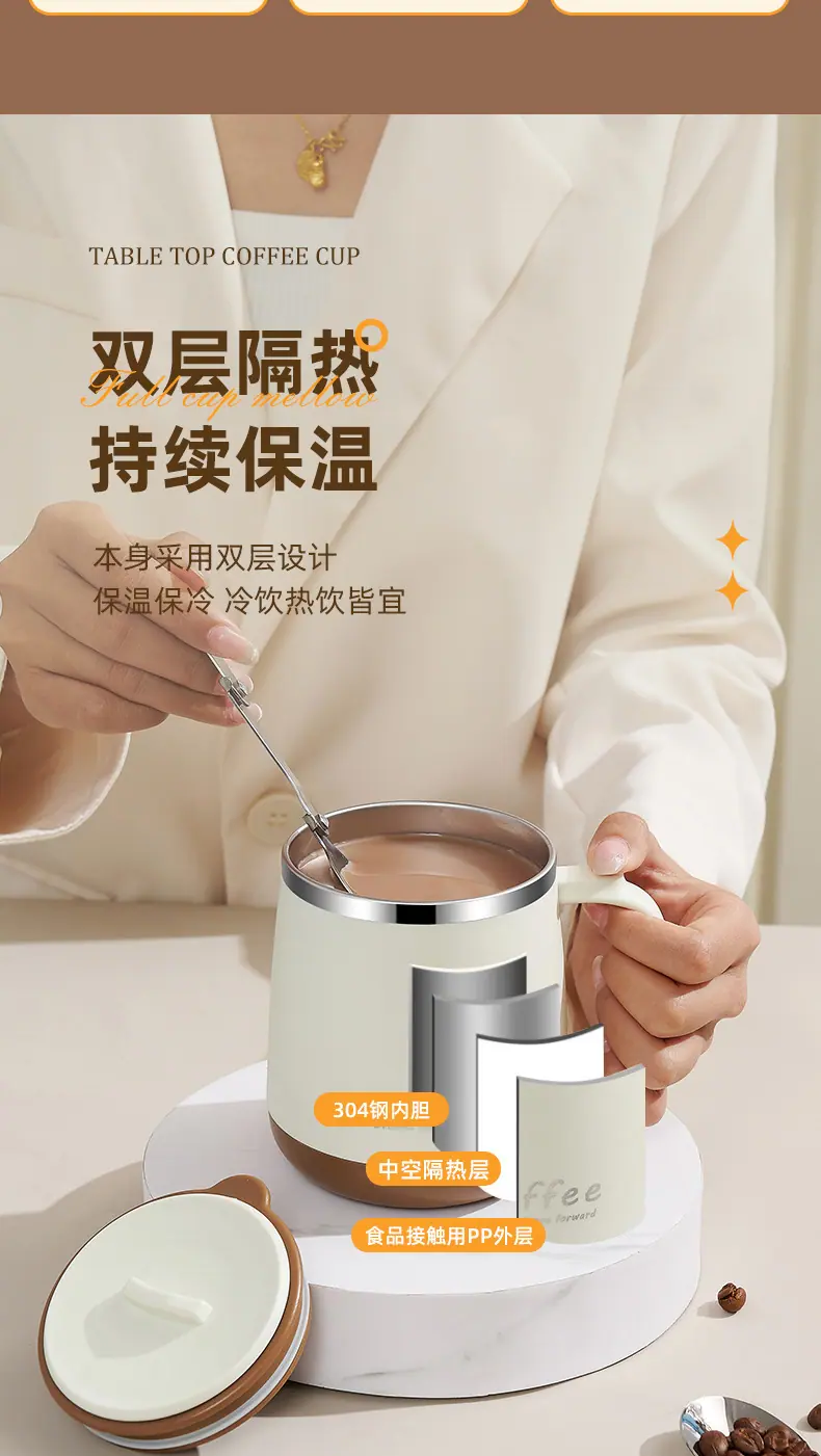 Compra Taza de Café de Acero Inoxidable 304 Taza Portátil Simple con Tapa y Cuchara Taza para Té de Oficina a Prueba de Fugas Vaso Termo al por mayor en Joom.pro