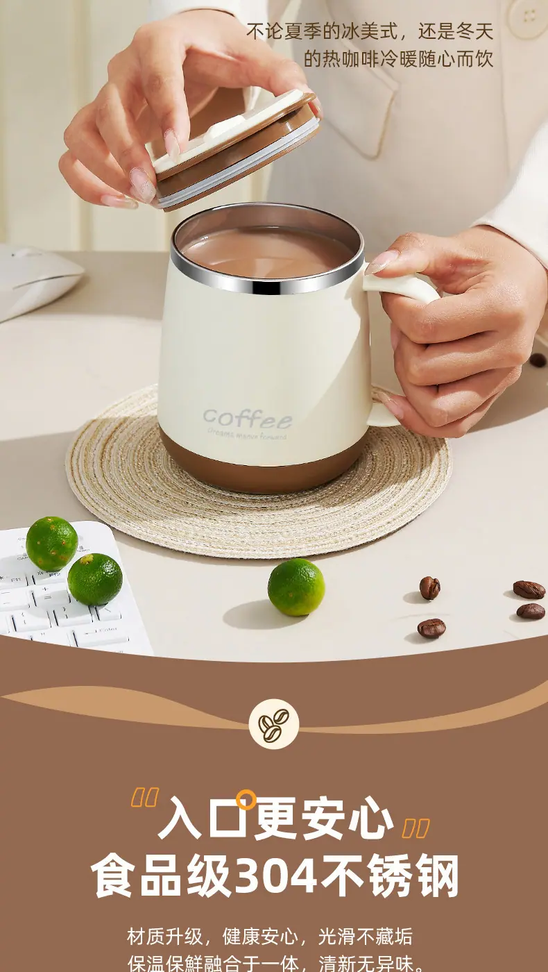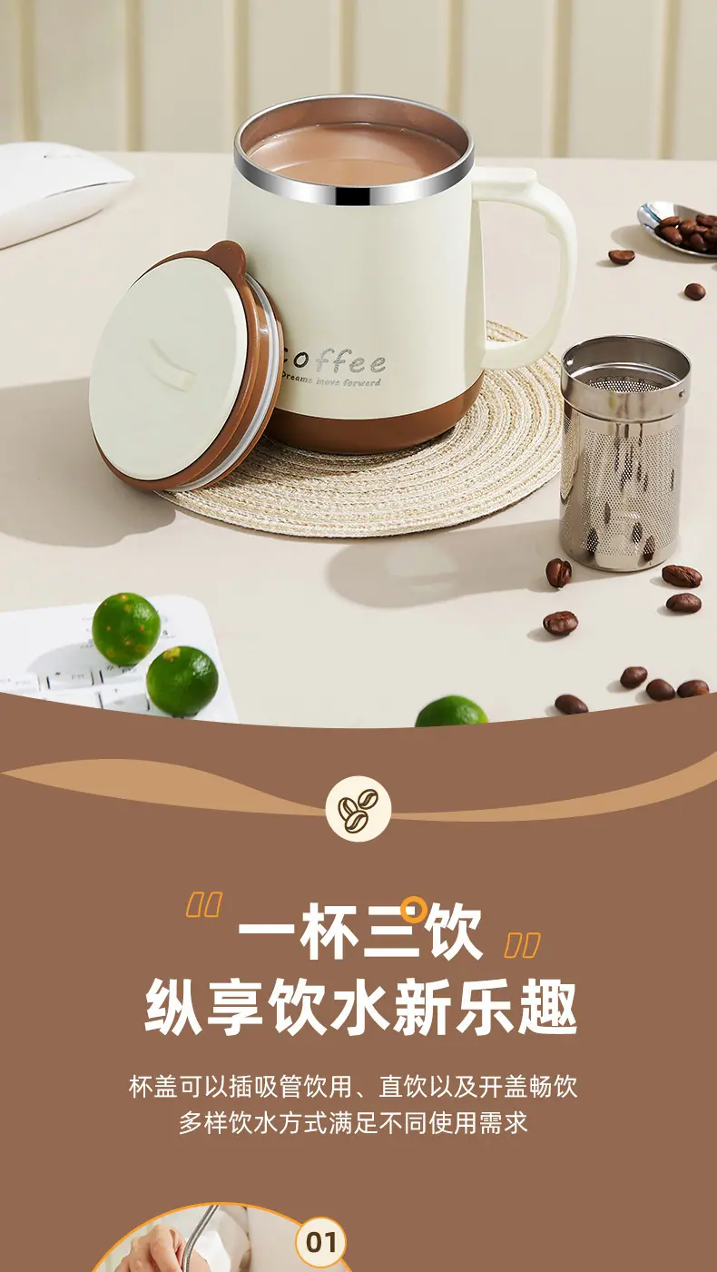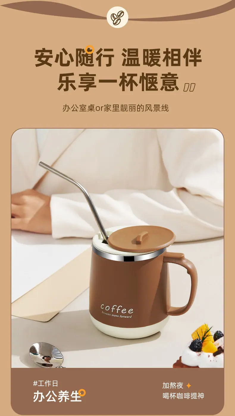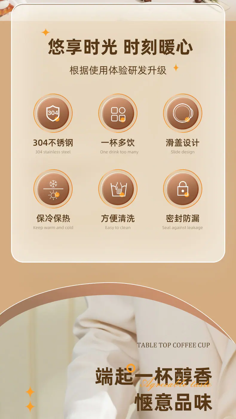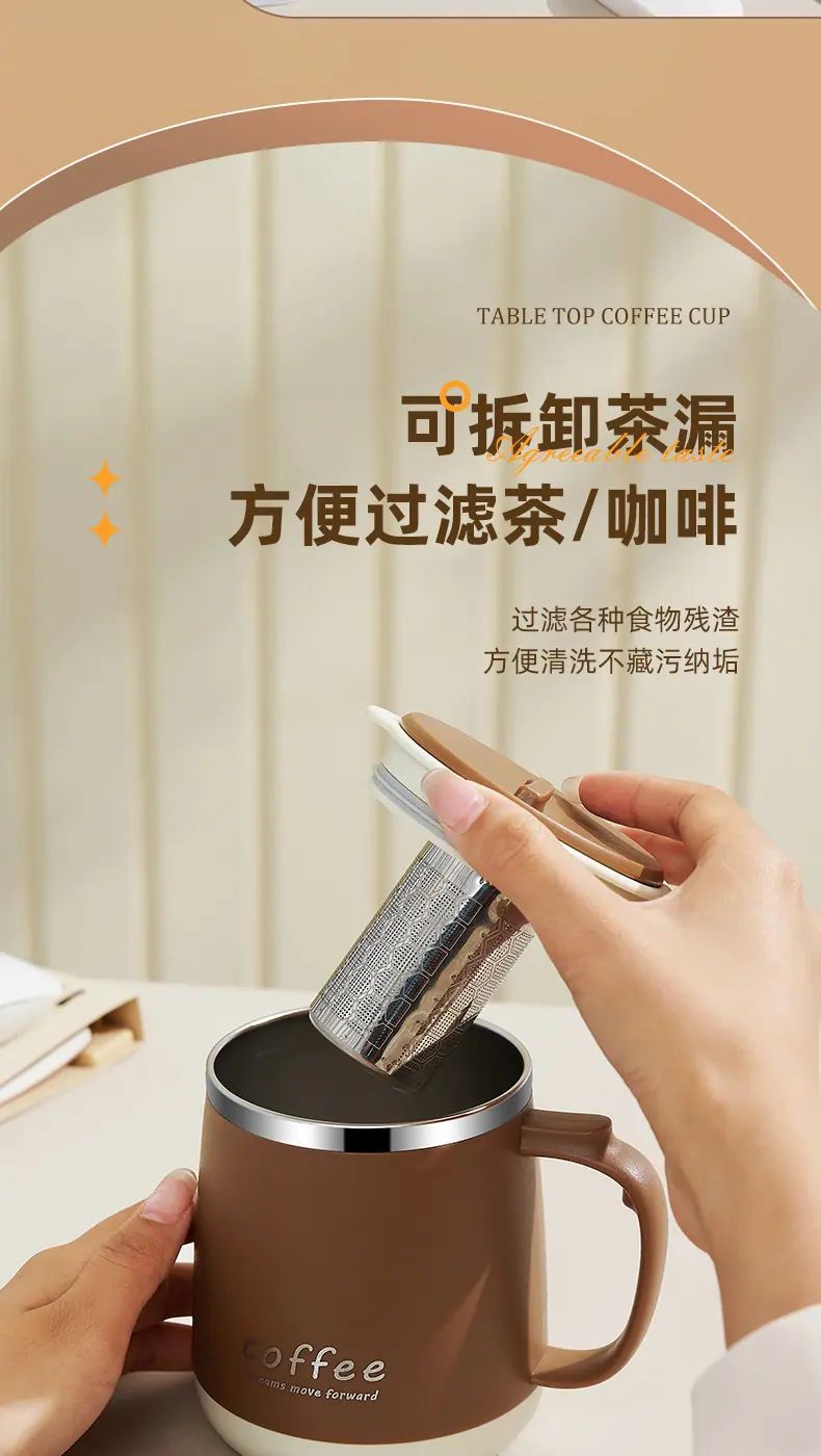 Compra Taza de Café de Acero Inoxidable 304 Taza Portátil Simple con Tapa y Cuchara Taza para Té de Oficina a Prueba de Fugas Vaso Termo al por mayor en Joom.pro