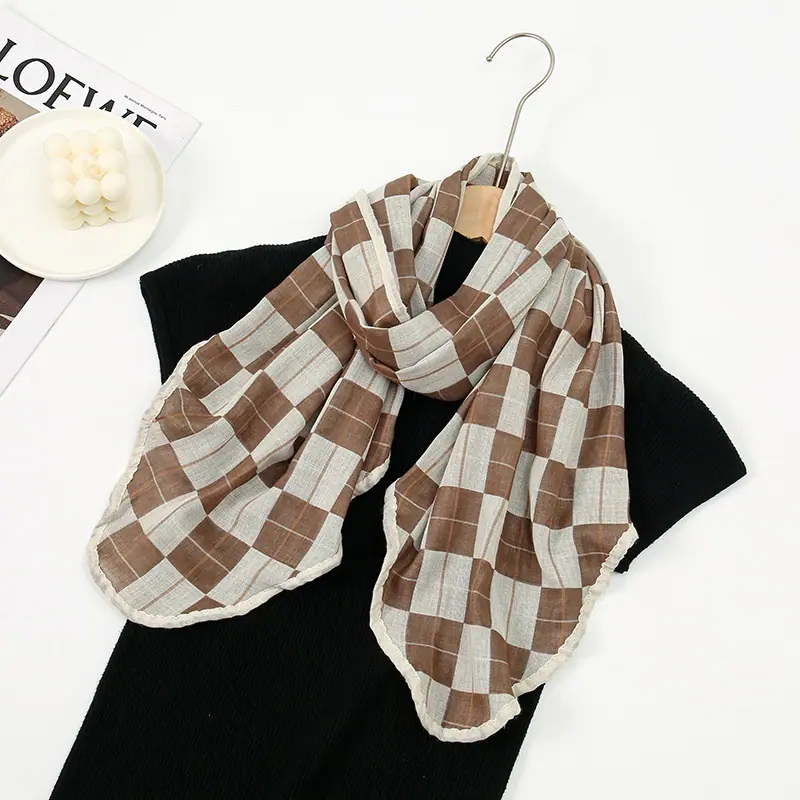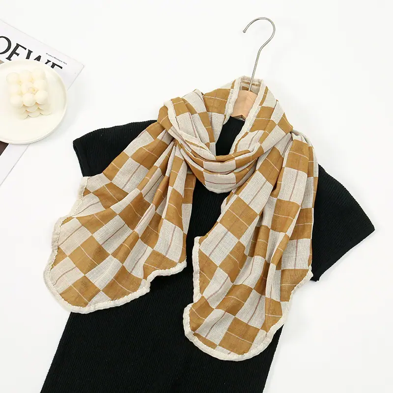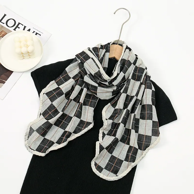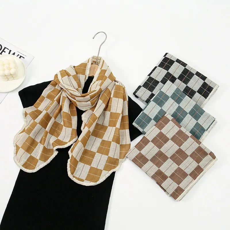 Nueva Bufanda Chal de Algodón Lino a Cuadros Diamante Grande de Otoño e Invierno