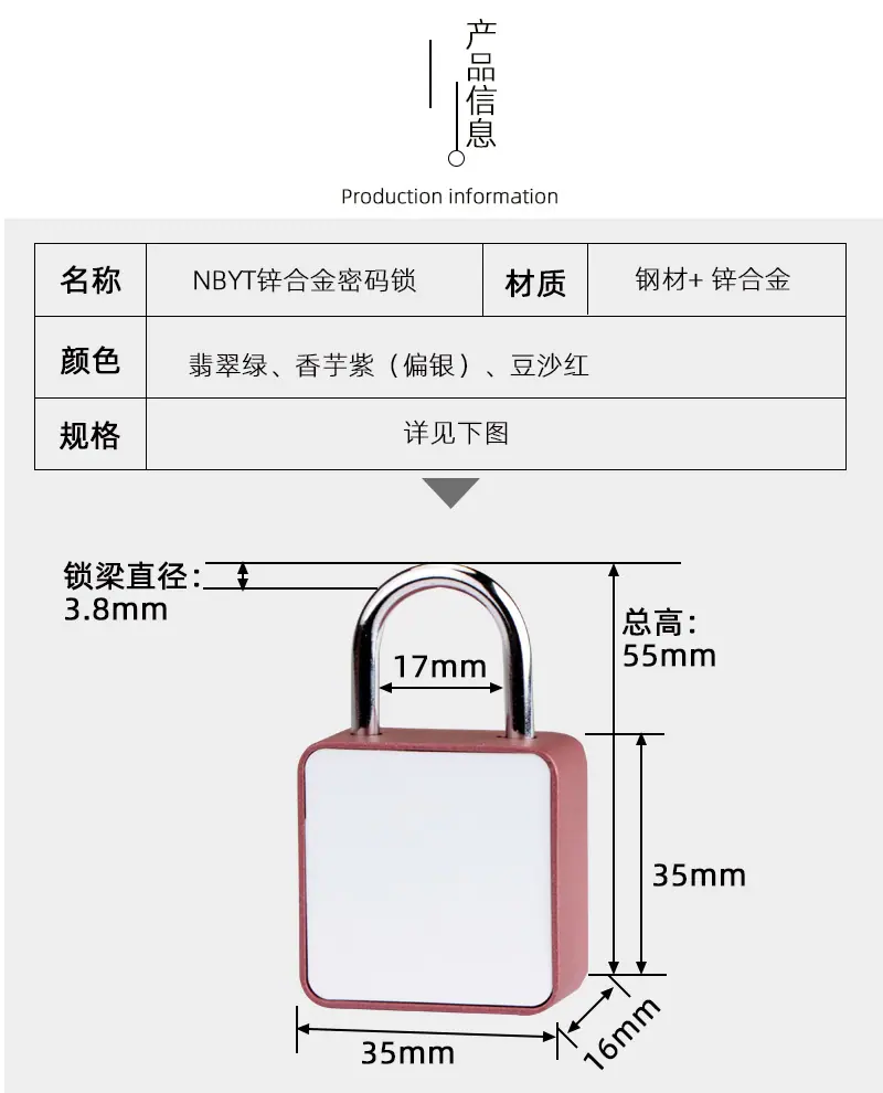 [Fábrica de Origen] Nbyt Candado de Contraseña de Aleación de Zinc Gabinete Aleación de Zinc Procesamiento Creativo Personalizado Oem