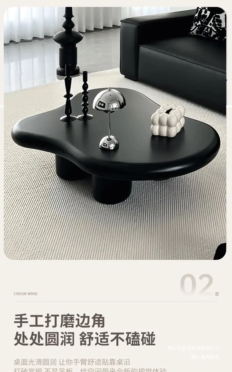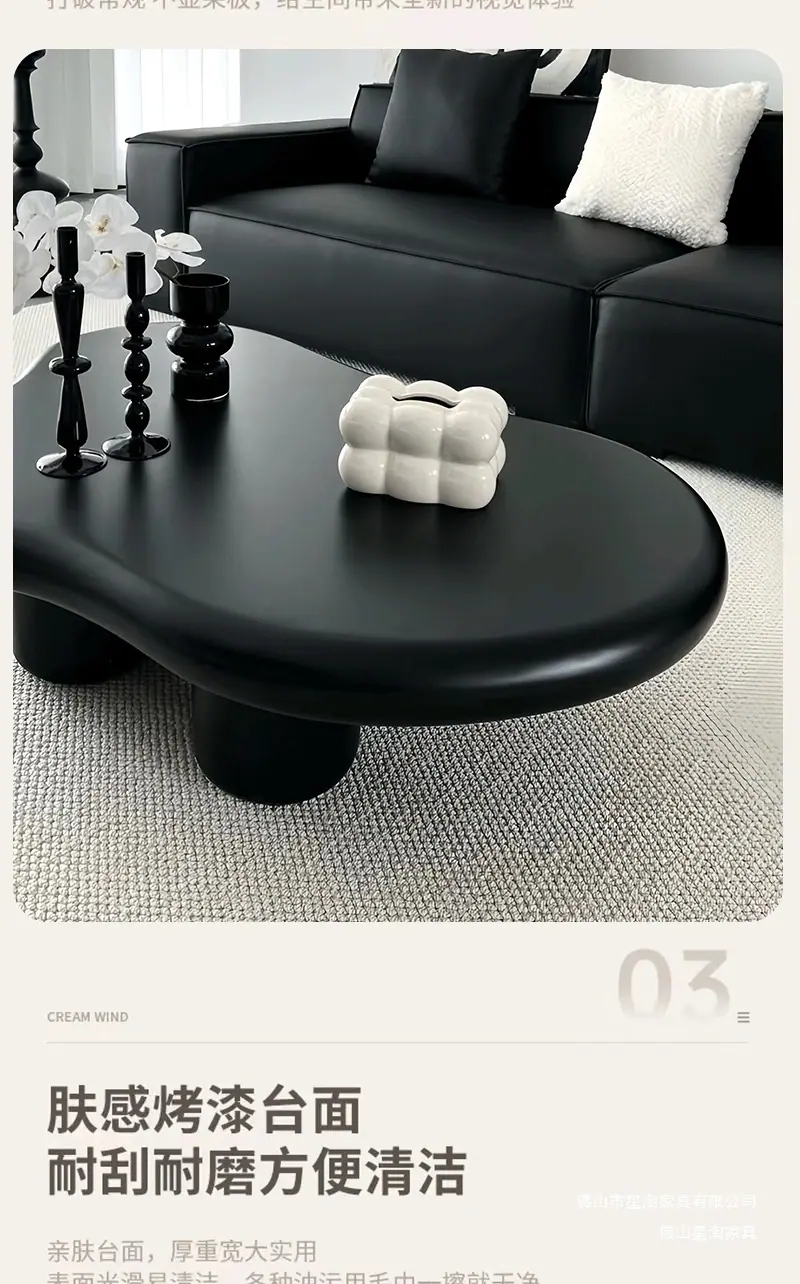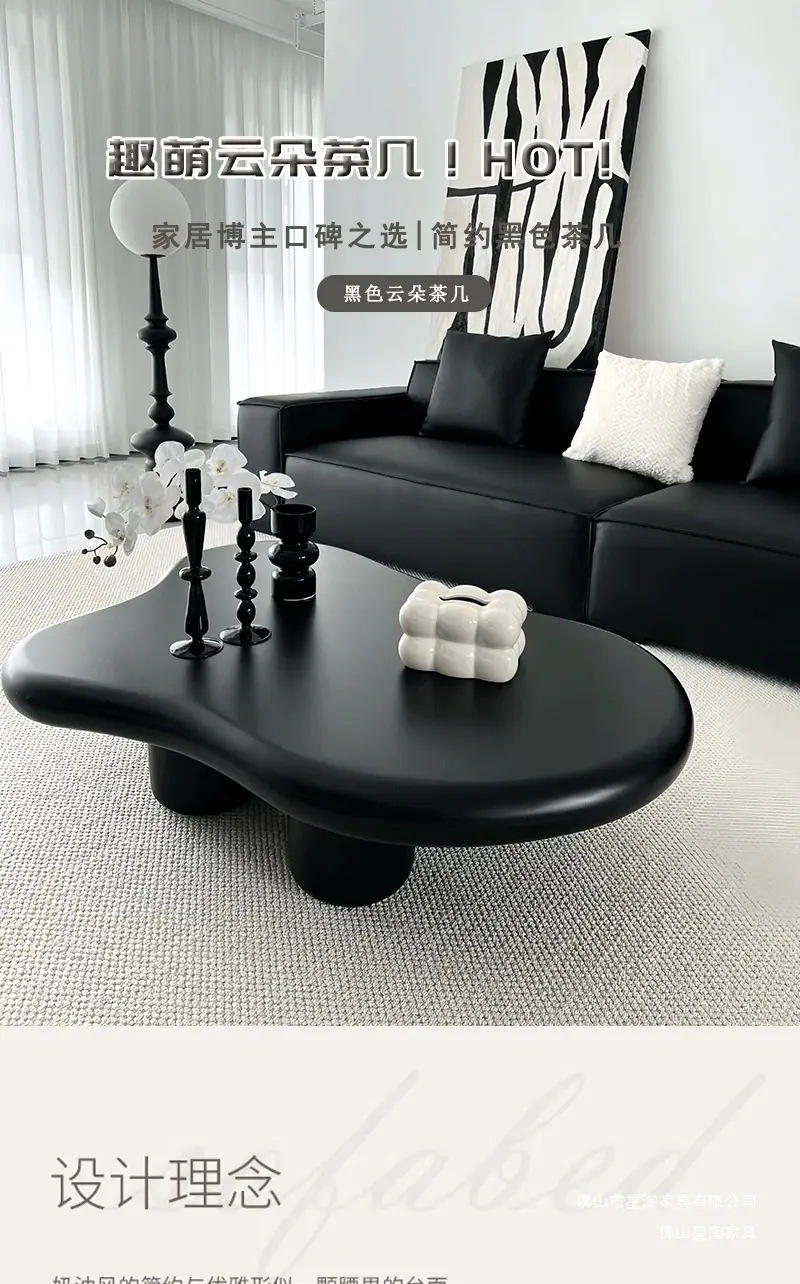 Mesa de Centro Francesa Nube Hogar Sala de Estar Lujo Ligero Mesa Irregular Apartamento Pequeño Simple Moderna Mesa de Té Negra