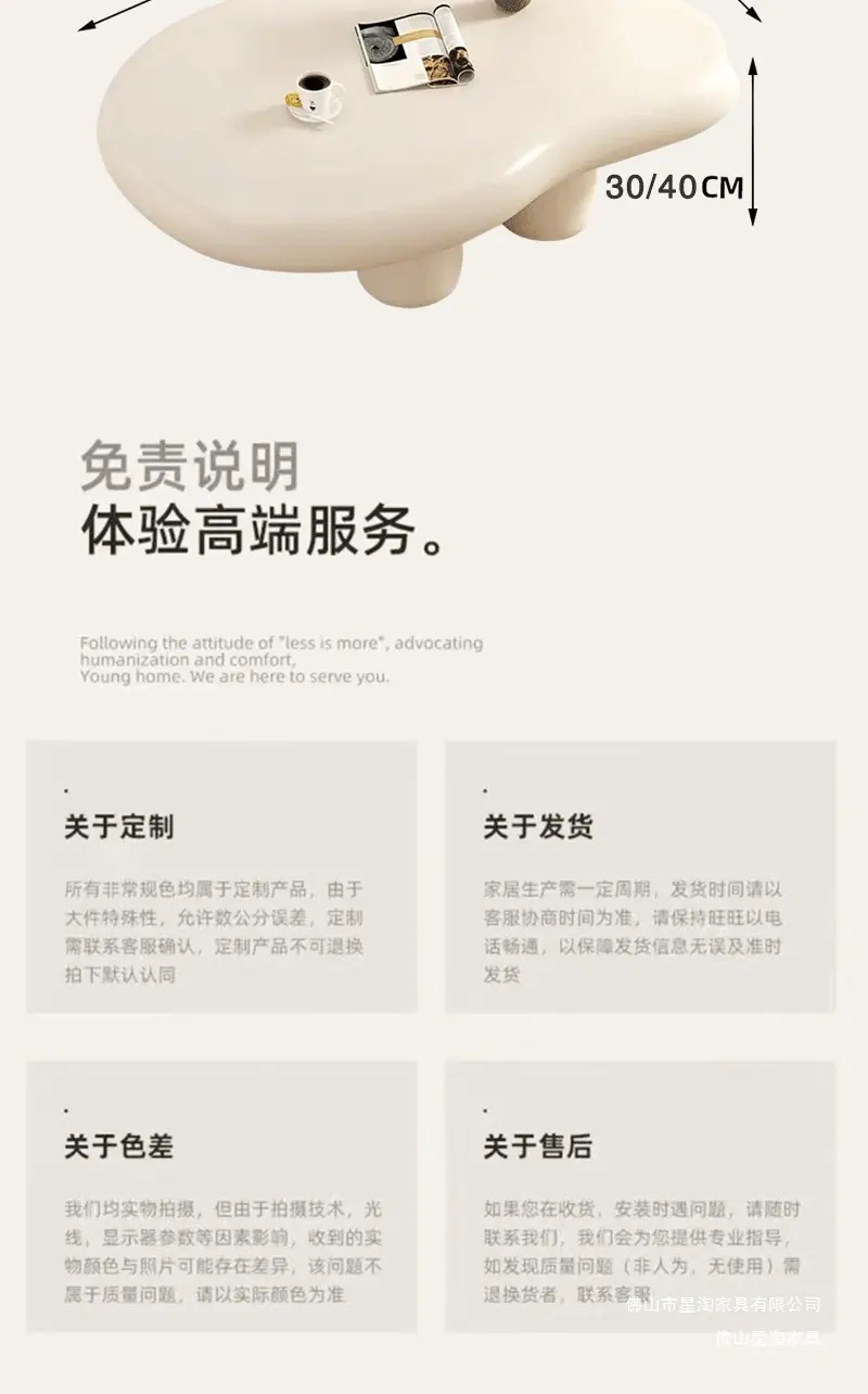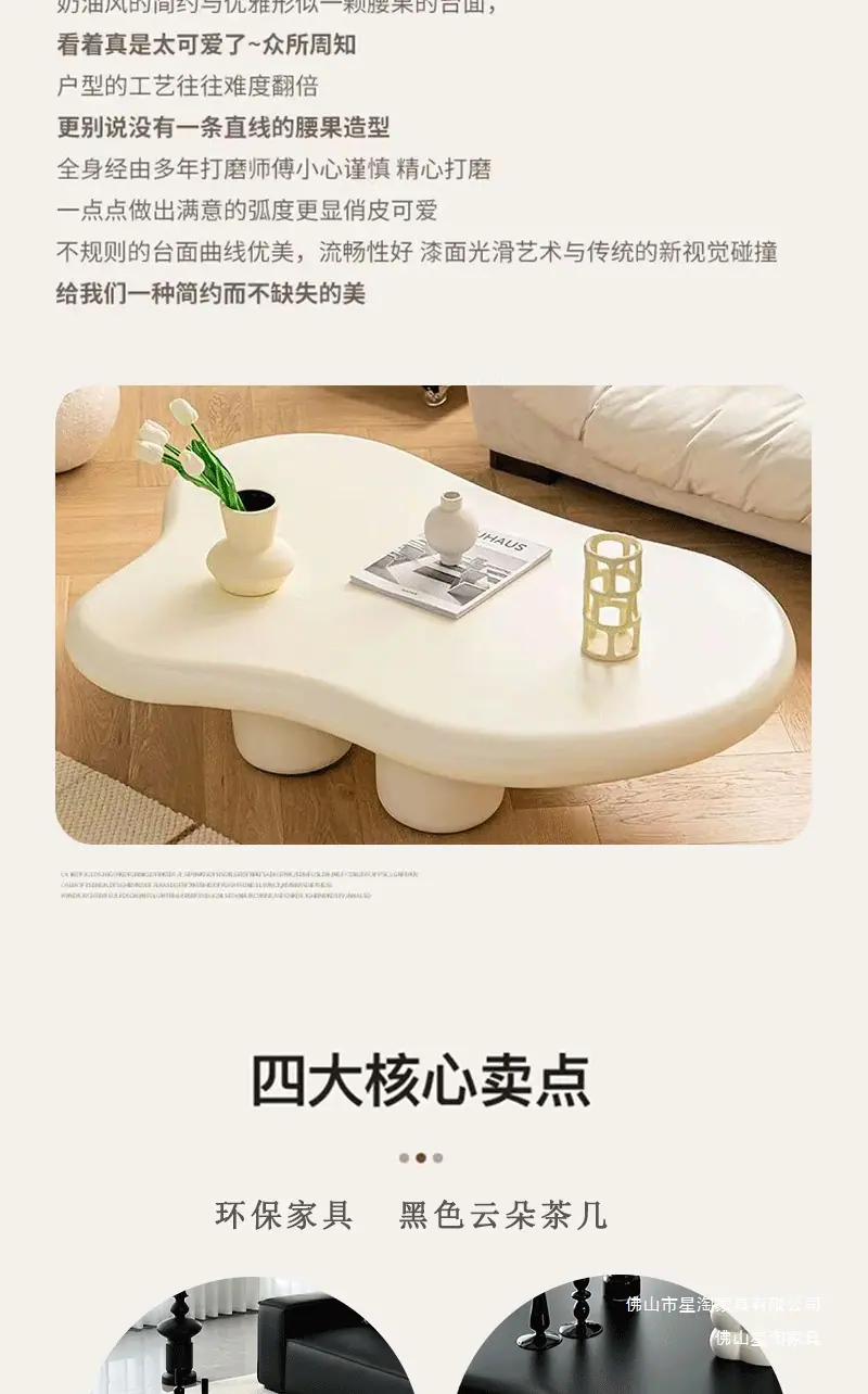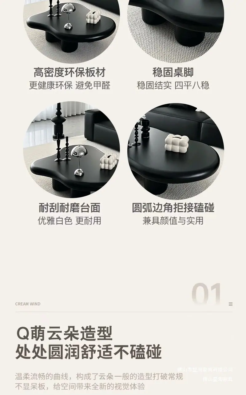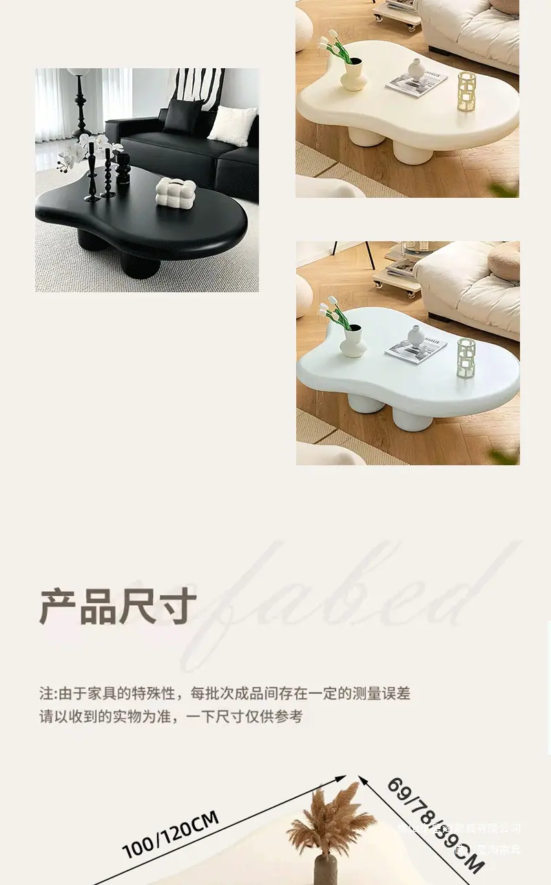 Mesa de Centro Francesa Nube Hogar Sala de Estar Lujo Ligero Mesa Irregular Apartamento Pequeño Simple Moderna Mesa de Té Negra