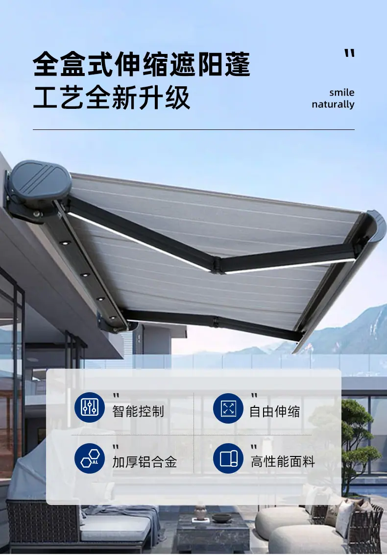 Compra Toldo retráctil de aleación de aluminio eléctrico transfronterizo para patio, balcón, cerramiento engrosado, exterior, impermeable, retráctil, totalmente automático al por mayor en Joom.pro