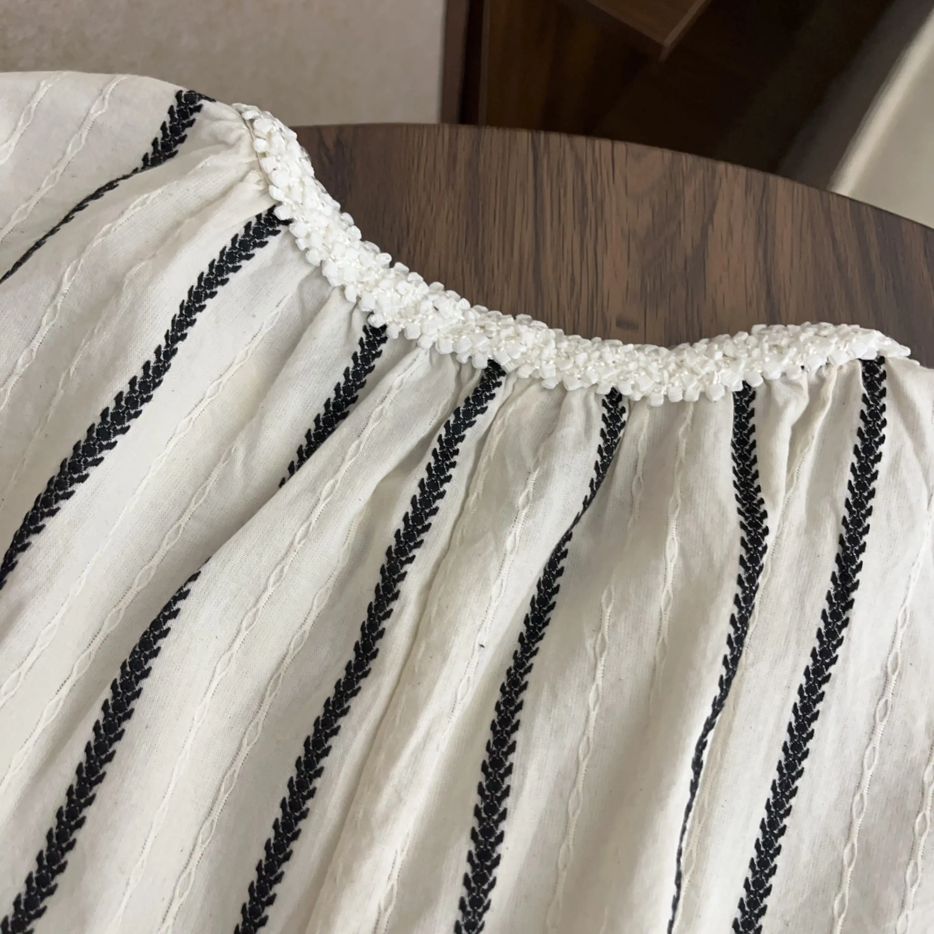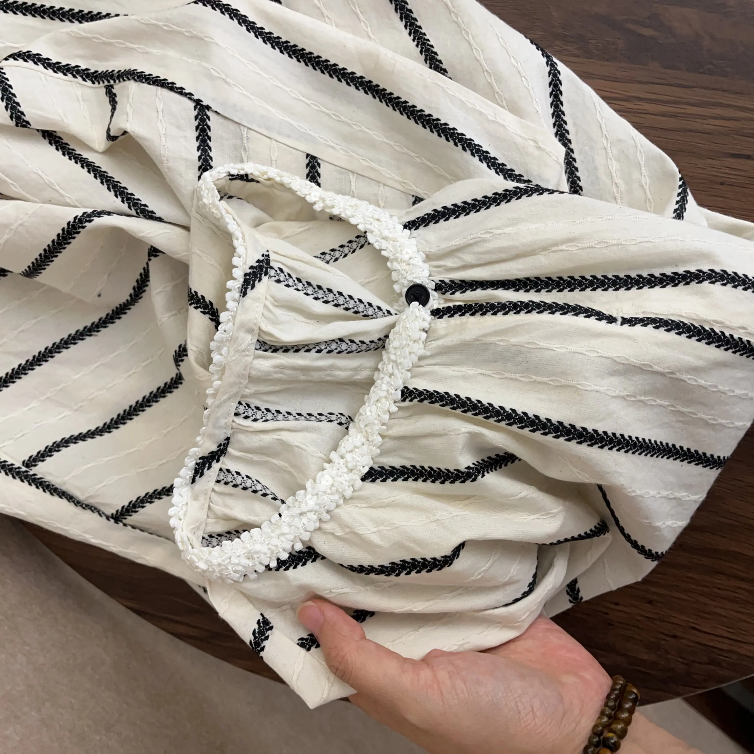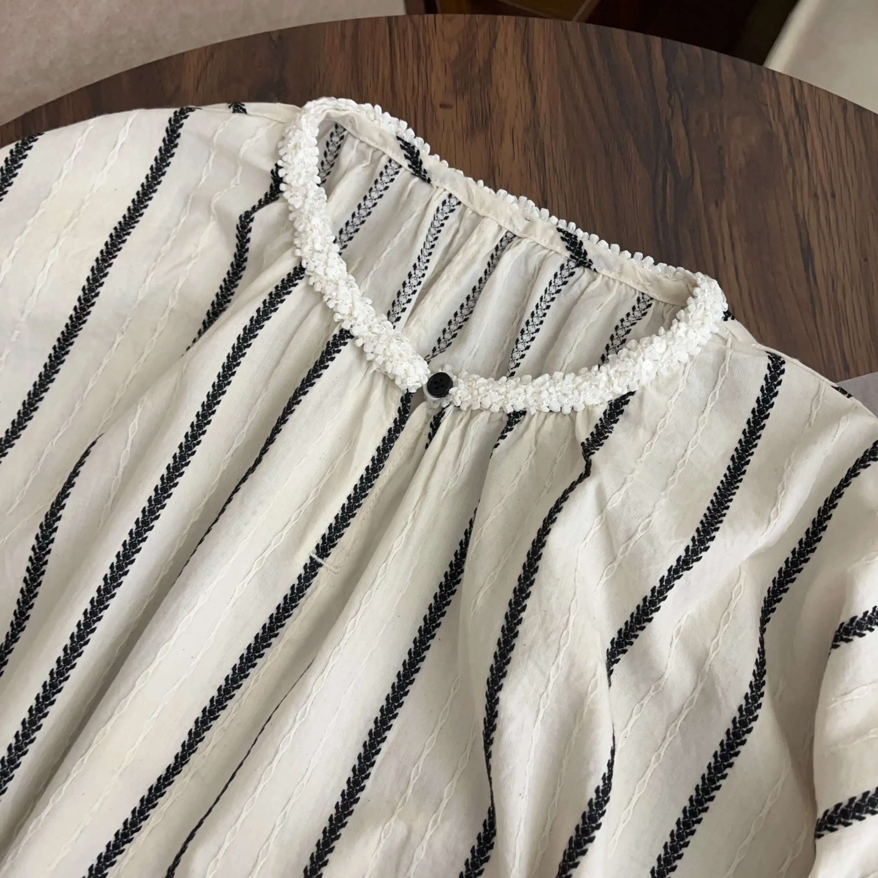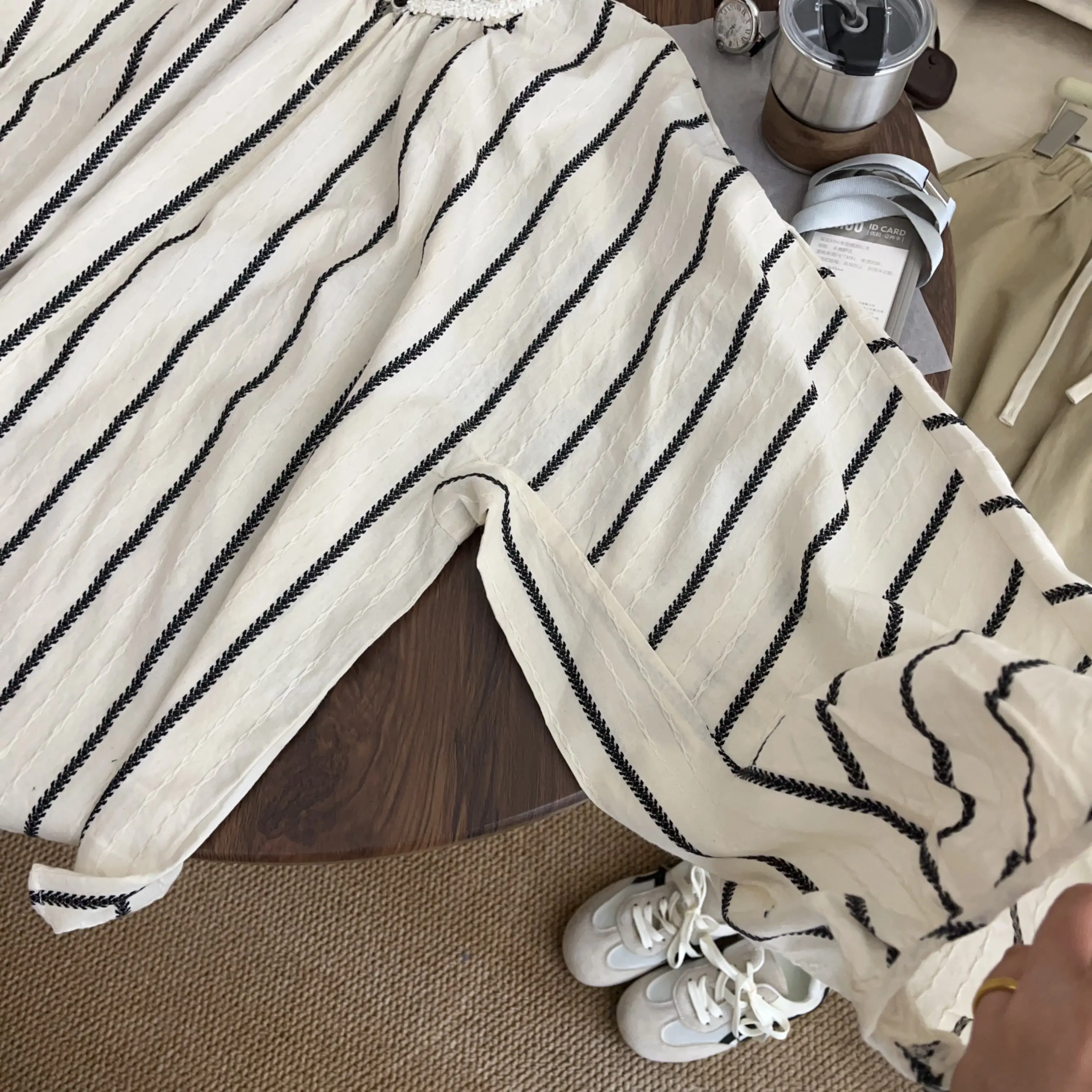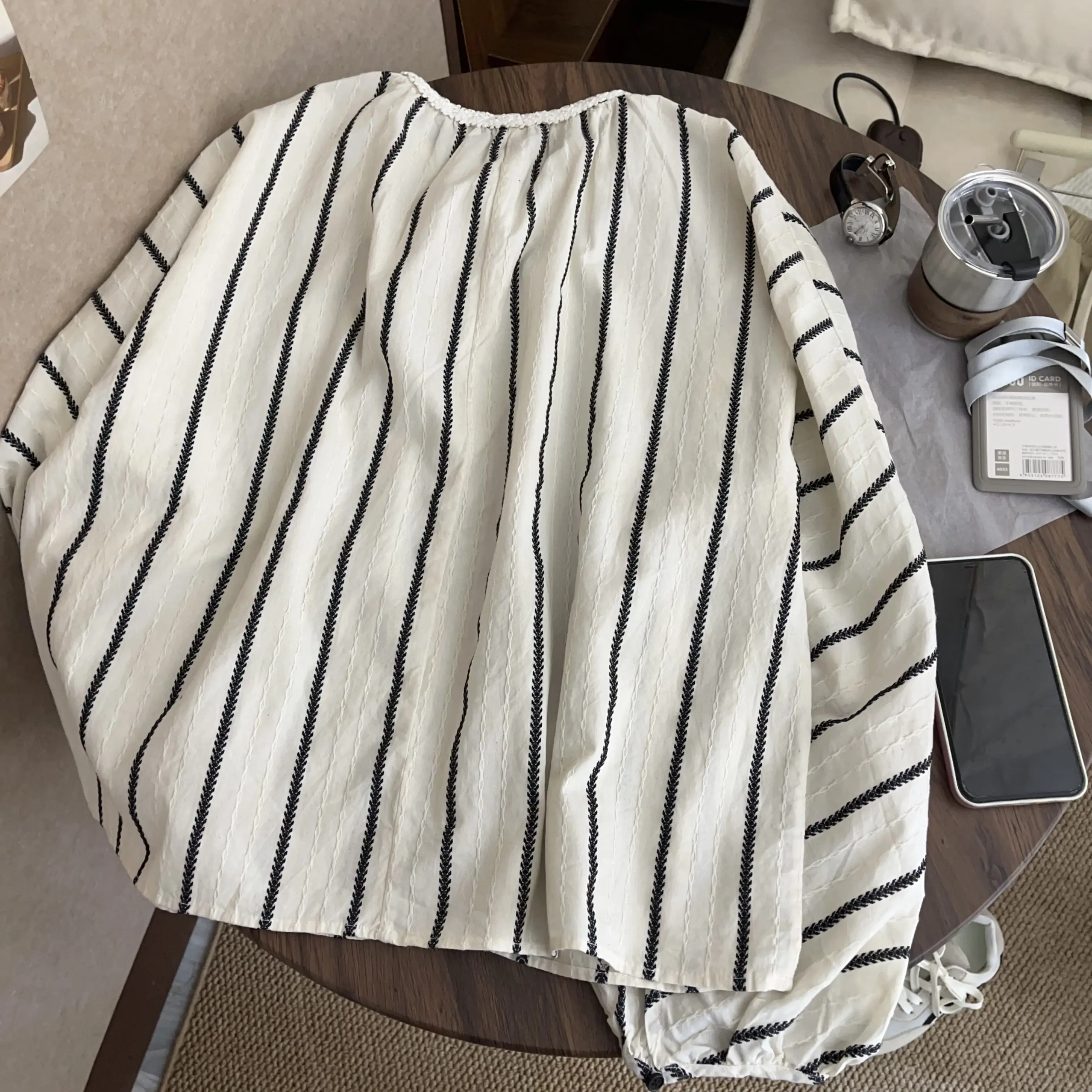 Principios de Otoño Nueva Camisa de Manga Larga de Algodón Puro a Rayas Top Mujer Estilo Coreano Suelto Casual Versátil Largo Medio Camisa de Alta Gama