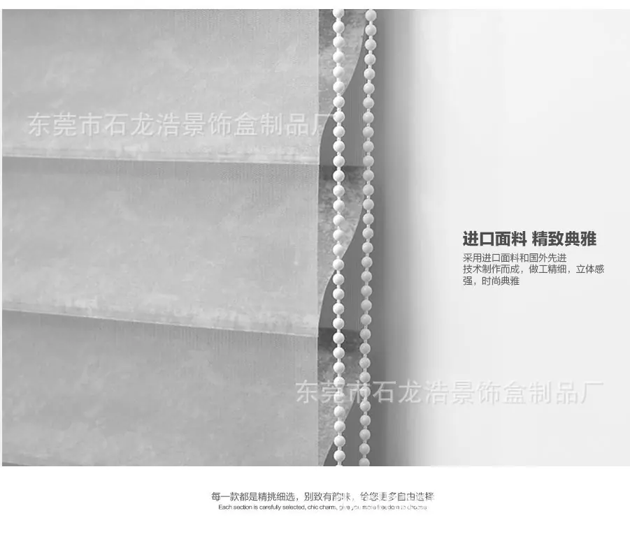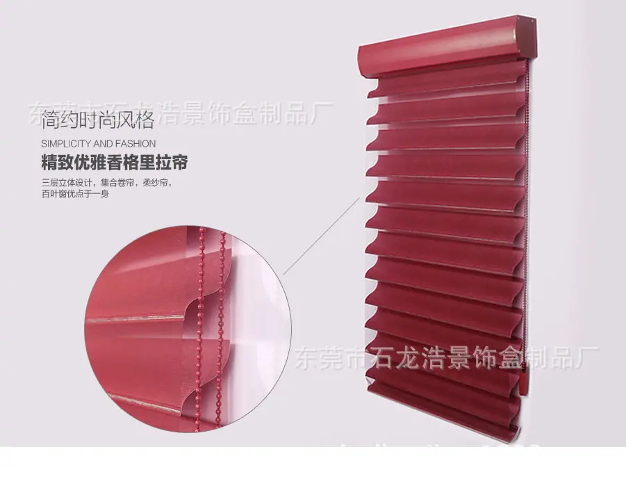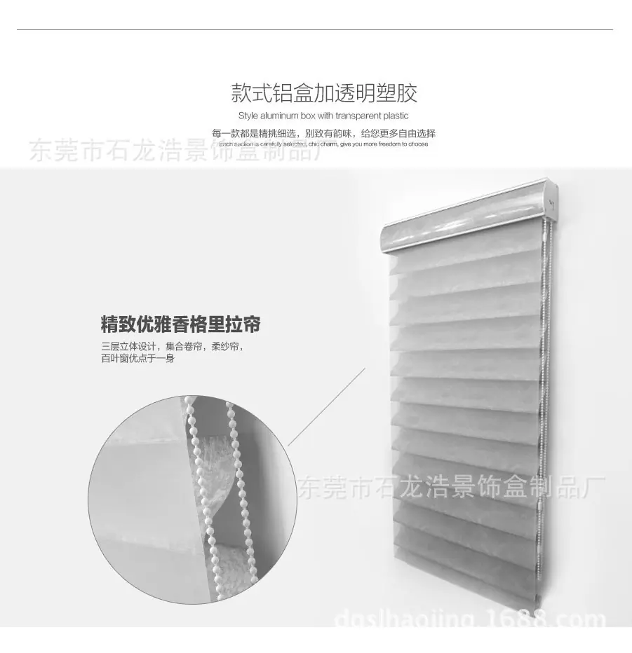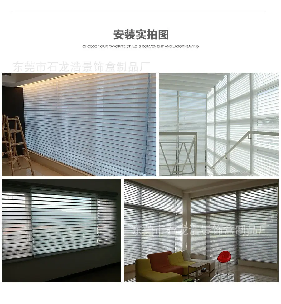 | Perfil de la empresa La Fábrica de Productos de Cajas Decorativas Dongguan Shilong Haojing se enfoca en la investigación y desarrollo y producción de productos de protección solar manuales, eléctricos e inteligentes (manuales & eléctricos & inteligentes: persianas de panal, persianas de madera, persianas cebra, persianas de gasa suave, persianas de aluminio, cortinas exteriores cortavientos), conectando la gama completa de productos de protección solar a múltiples sistemas de plataforma inteligente, combinando y aplicando productos tradicionales de protección solar y ahorro de energía con tecnología de sistema inteligente moderna, creando constantemente nuevos conceptos para los productos, y teniendo suficiente comprensión del mercado y espíritu creativo para los sistemas populares de la industria de la protección solar, recibiendo así elogios de la industria. ¡Nuestra fábrica se adhiere al principio de que la calidad es vida y el servicio es propósito! Sus necesidades son nuestro objetivo. ¡Damos la más sincera bienvenida a la consulta, la negociación y la cooperación! ¡Damos la bienvenida a amigos de todos los ámbitos de la vida para visitar nuestra fábrica, brindar orientación y negociar negocios! |