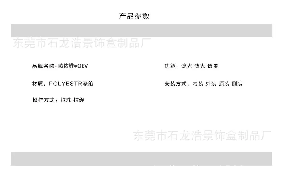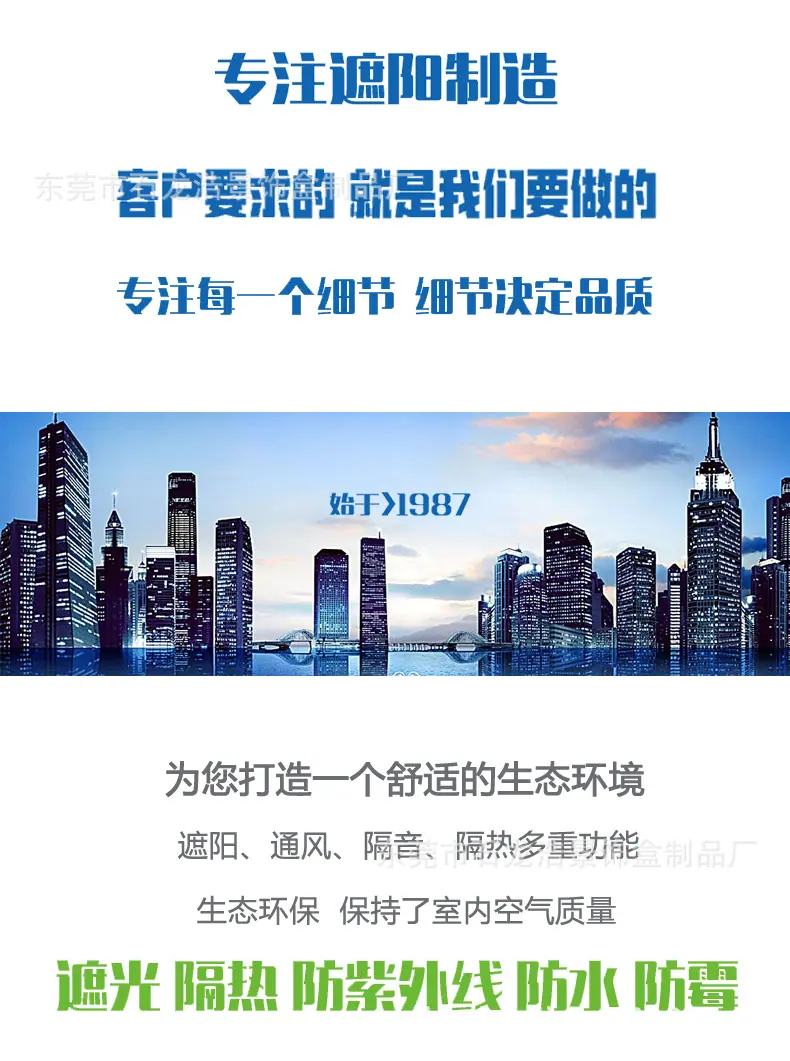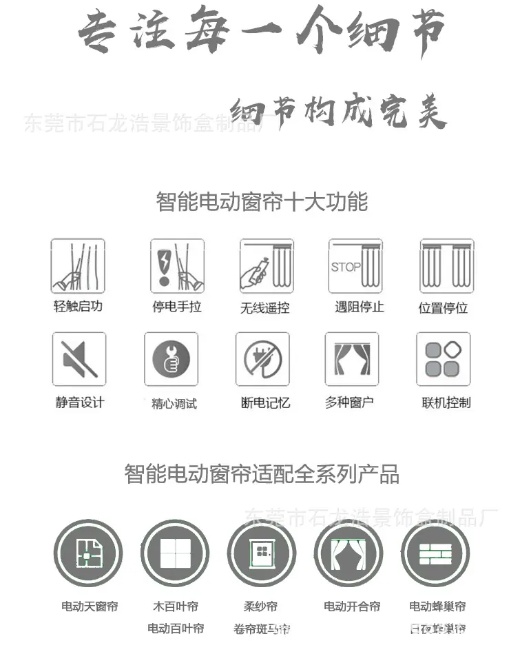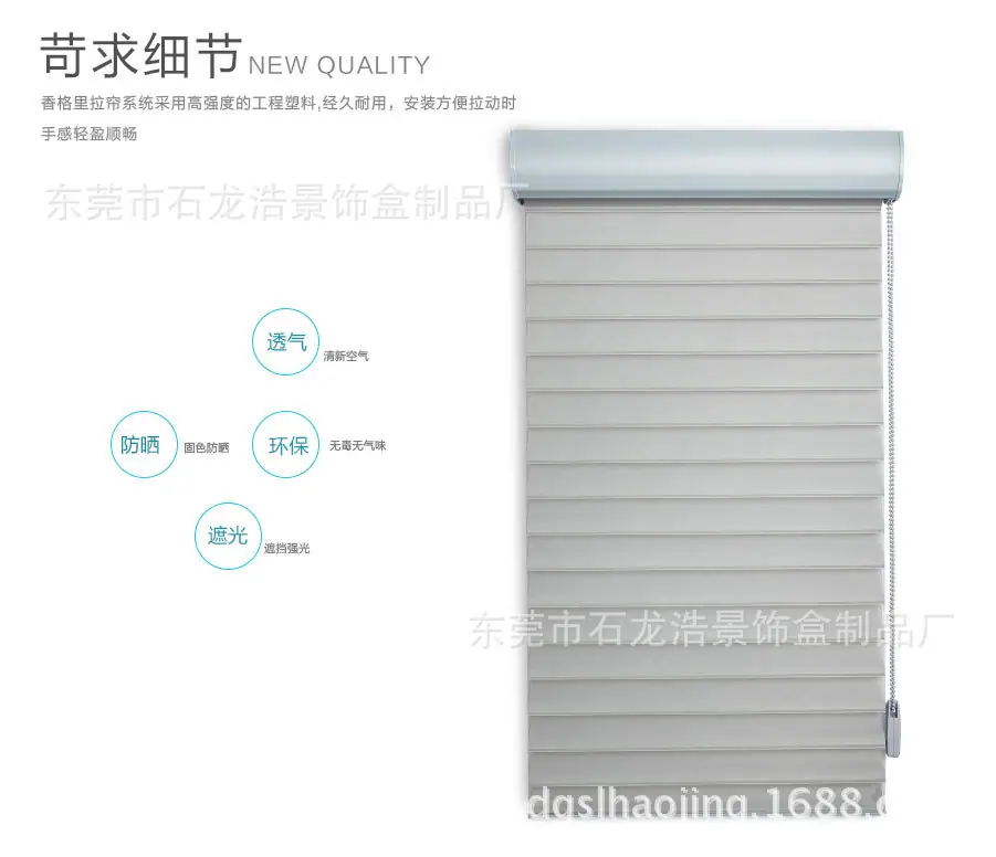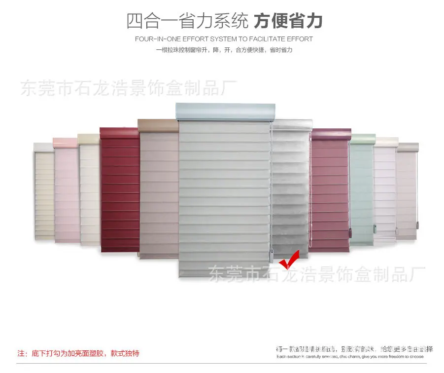| Perfil de la empresa La Fábrica de Productos de Cajas Decorativas Dongguan Shilong Haojing se enfoca en la investigación y desarrollo y producción de productos de protección solar manuales, eléctricos e inteligentes (manuales & eléctricos & inteligentes: persianas de panal, persianas de madera, persianas cebra, persianas de gasa suave, persianas de aluminio, cortinas exteriores cortavientos), conectando la gama completa de productos de protección solar a múltiples sistemas de plataforma inteligente, combinando y aplicando productos tradicionales de protección solar y ahorro de energía con tecnología de sistema inteligente moderna, creando constantemente nuevos conceptos para los productos, y teniendo suficiente comprensión del mercado y espíritu creativo para los sistemas populares de la industria de la protección solar, recibiendo así elogios de la industria. ¡Nuestra fábrica se adhiere al principio de que la calidad es vida y el servicio es propósito! Sus necesidades son nuestro objetivo. ¡Damos la más sincera bienvenida a la consulta, la negociación y la cooperación! ¡Damos la bienvenida a amigos de todos los ámbitos de la vida para visitar nuestra fábrica, brindar orientación y negociar negocios! |