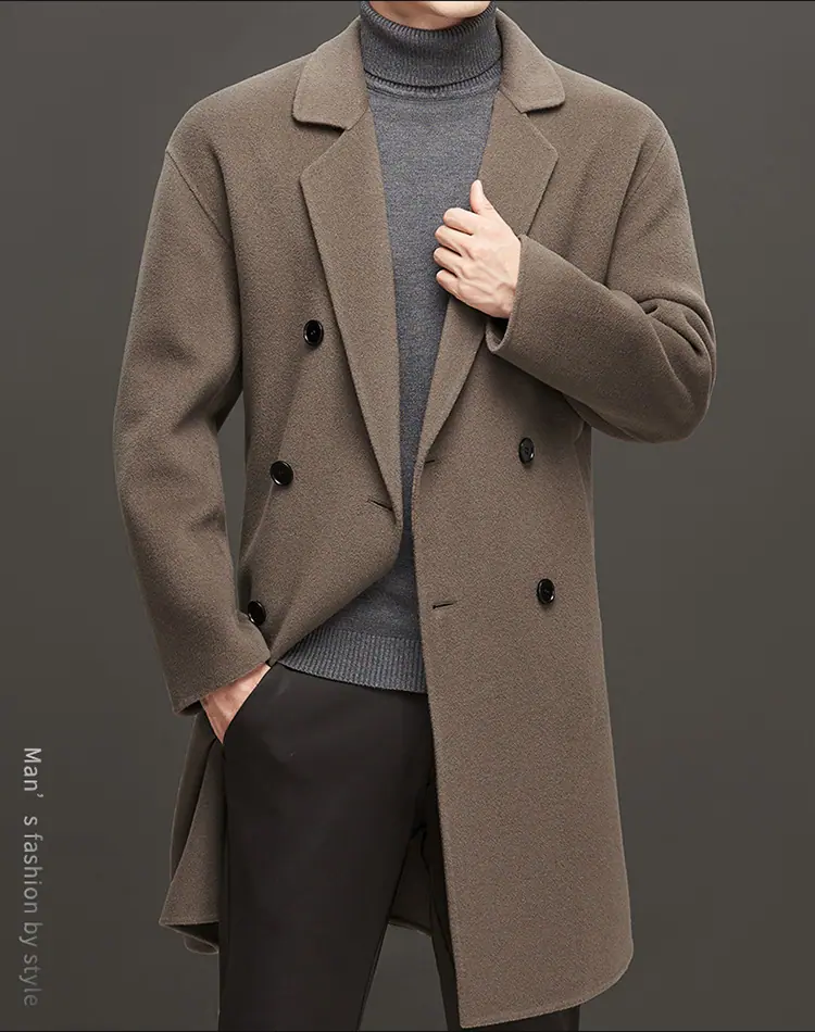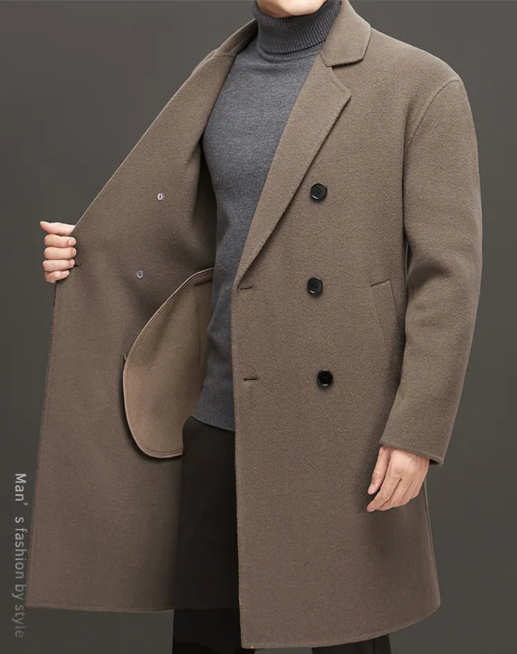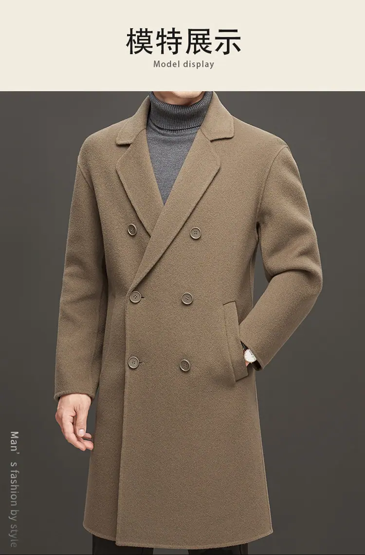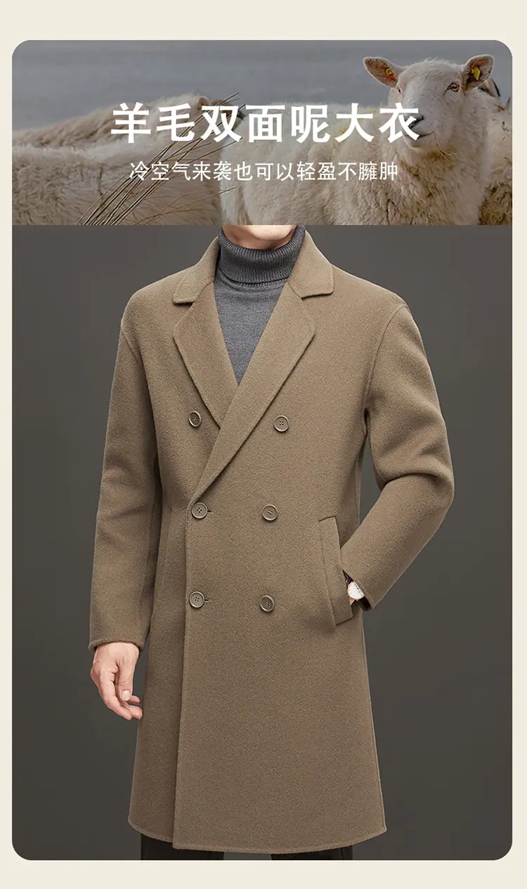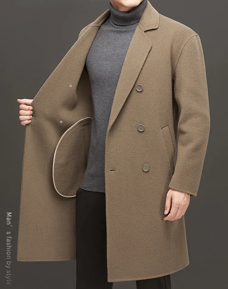 Compra Otoño e Invierno Abrigo de Lana de Largo Medio para Hombres Jóvenes y de Mediana Edad Estilo Coreano Holgado de Doble Vista Chaqueta Cárdigan de Nailon al por mayor en Joom.pro