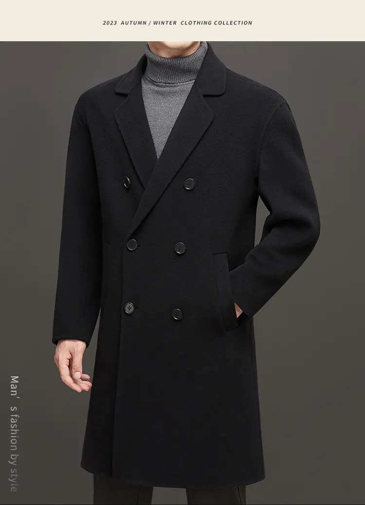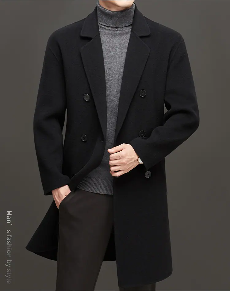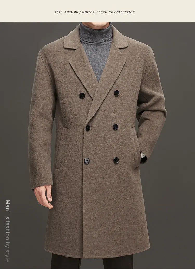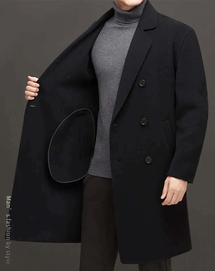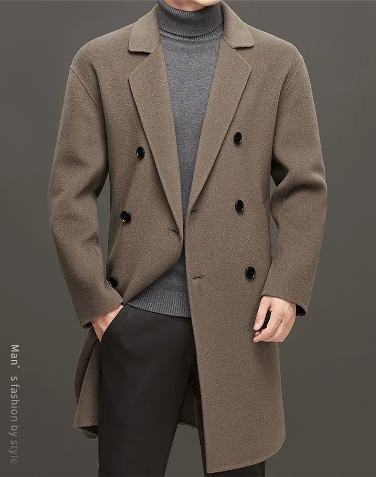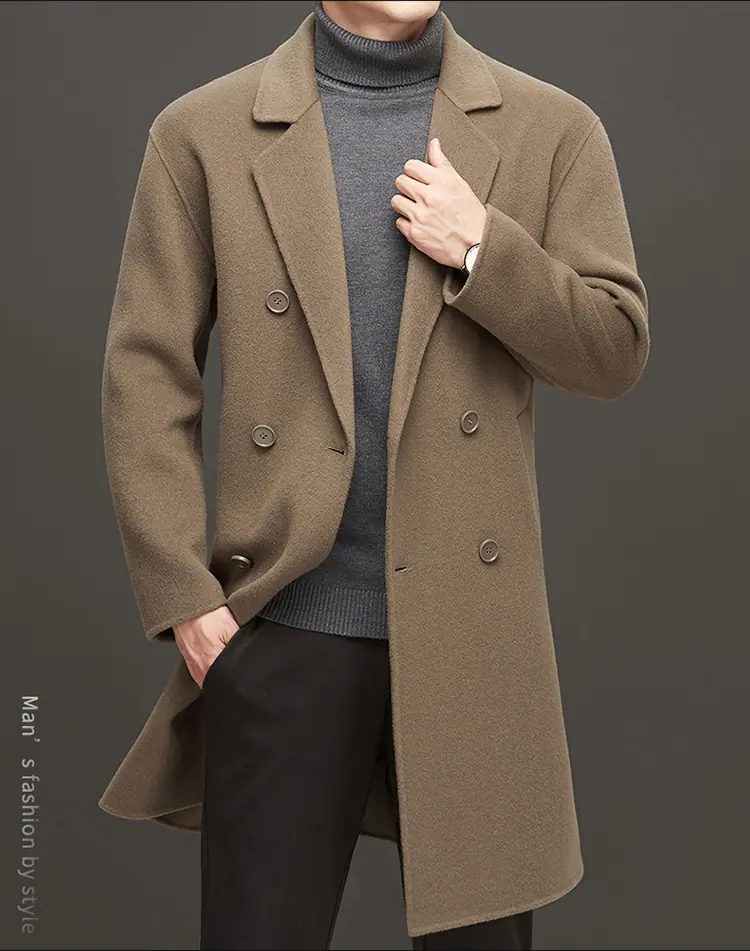 Compra Otoño e Invierno Abrigo de Lana de Largo Medio para Hombres Jóvenes y de Mediana Edad Estilo Coreano Holgado de Doble Vista Chaqueta Cárdigan de Nailon al por mayor en Joom.pro