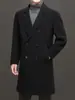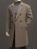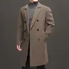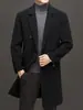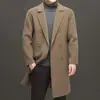 Otoño e Invierno Abrigo de Lana de Largo Medio para Hombres Jóvenes y de Mediana Edad Estilo Coreano Holgado de Doble Vista Chaqueta Cárdigan de Nailon