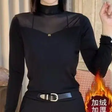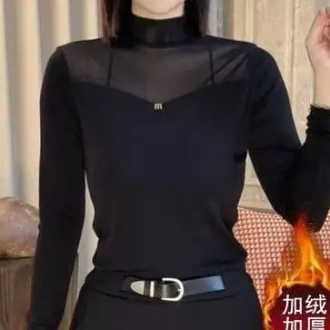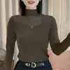 Compra Nueva Moda Otoño/Invierno Capa Base de Cuello Semi-Alto Adelgazante Versátil Top de Malla Sentido del Diseño para Mujer Manga Larga al por mayor en Joom.pro