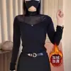 Nueva Moda Otoño/Invierno Capa Base de Cuello Semi-Alto Adelgazante Versátil Top de Malla Sentido del Diseño para Mujer Manga Larga