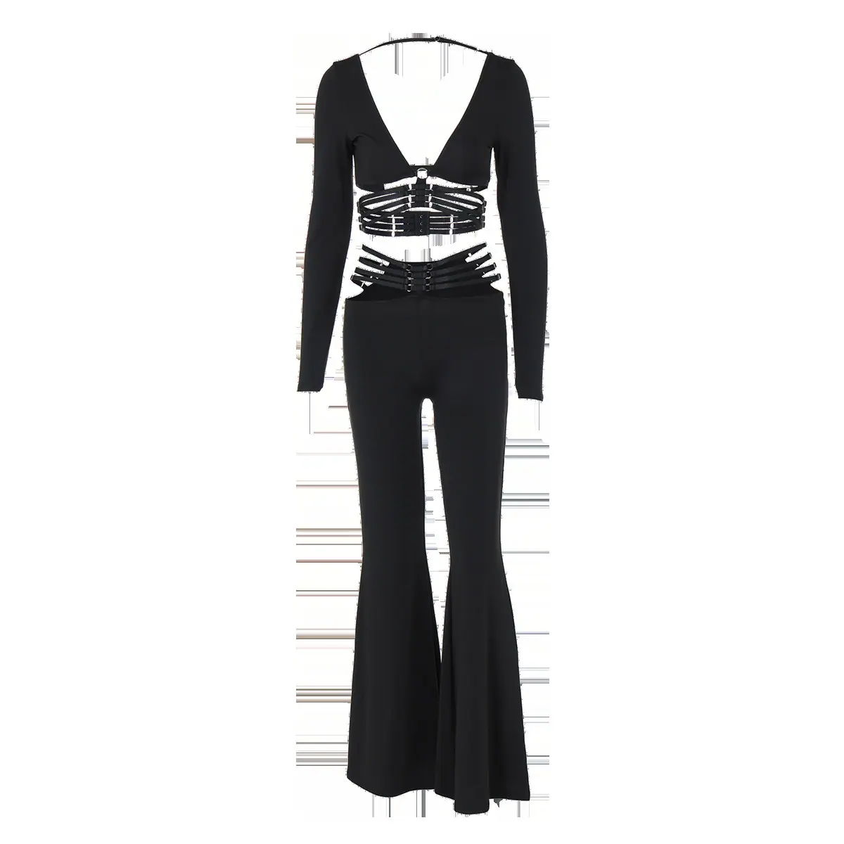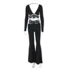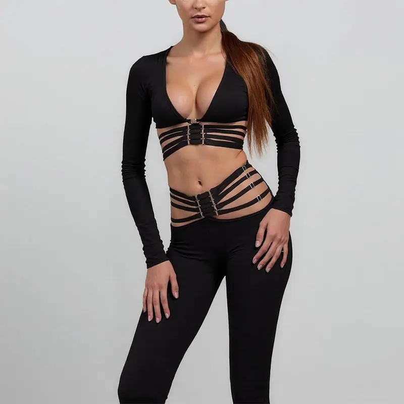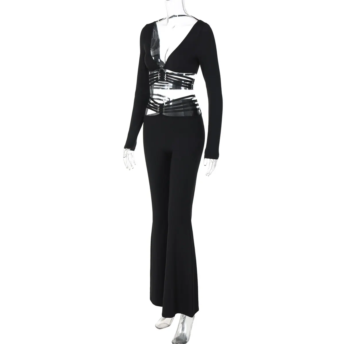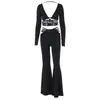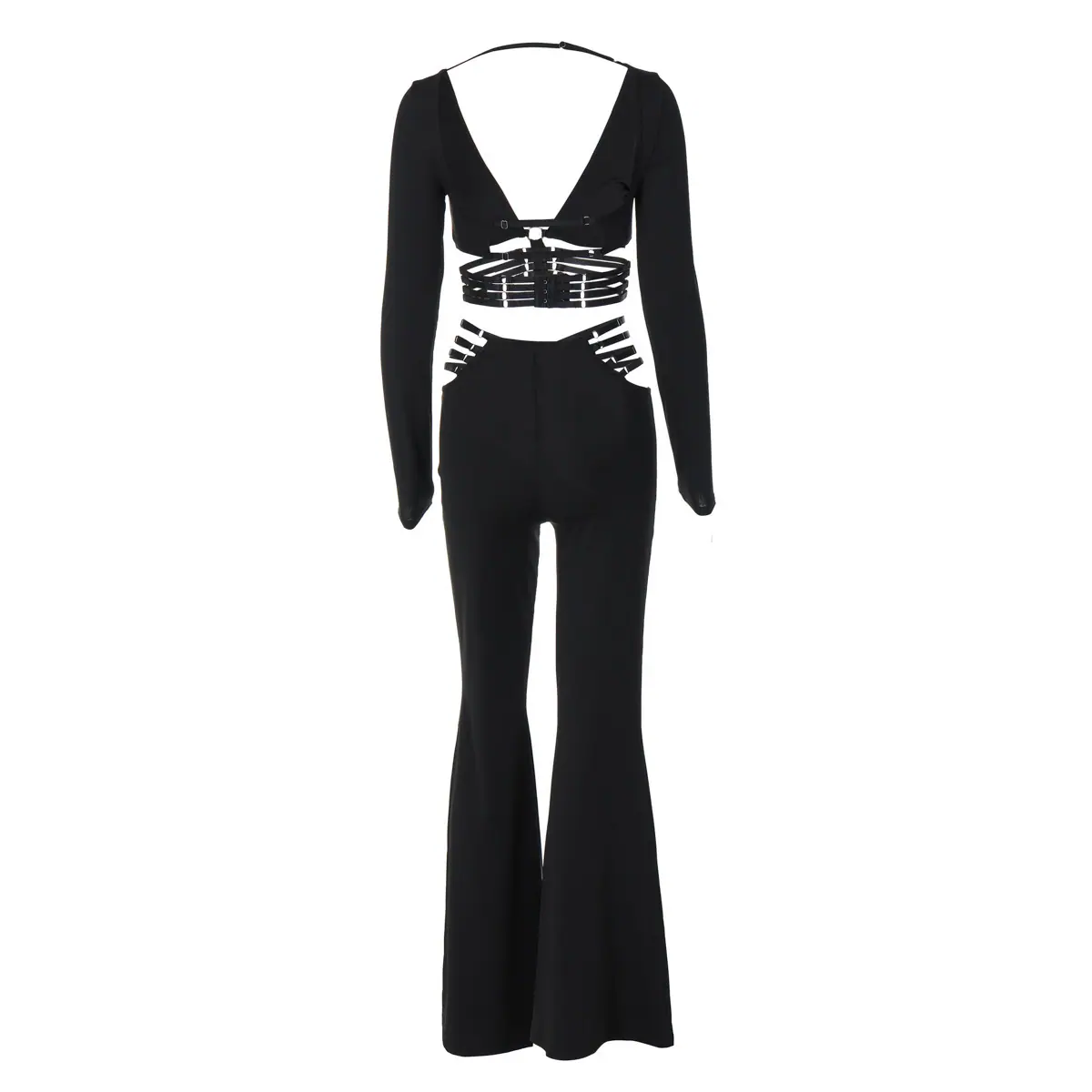 Ropa de Mujer Europea y Americana 2025 Verano Nueva Moda Sexy Cuello en V Mangas Largas Tops Ajustados Tirantes Pantalones de Pierna Ancha Traje Venta al por Mayor