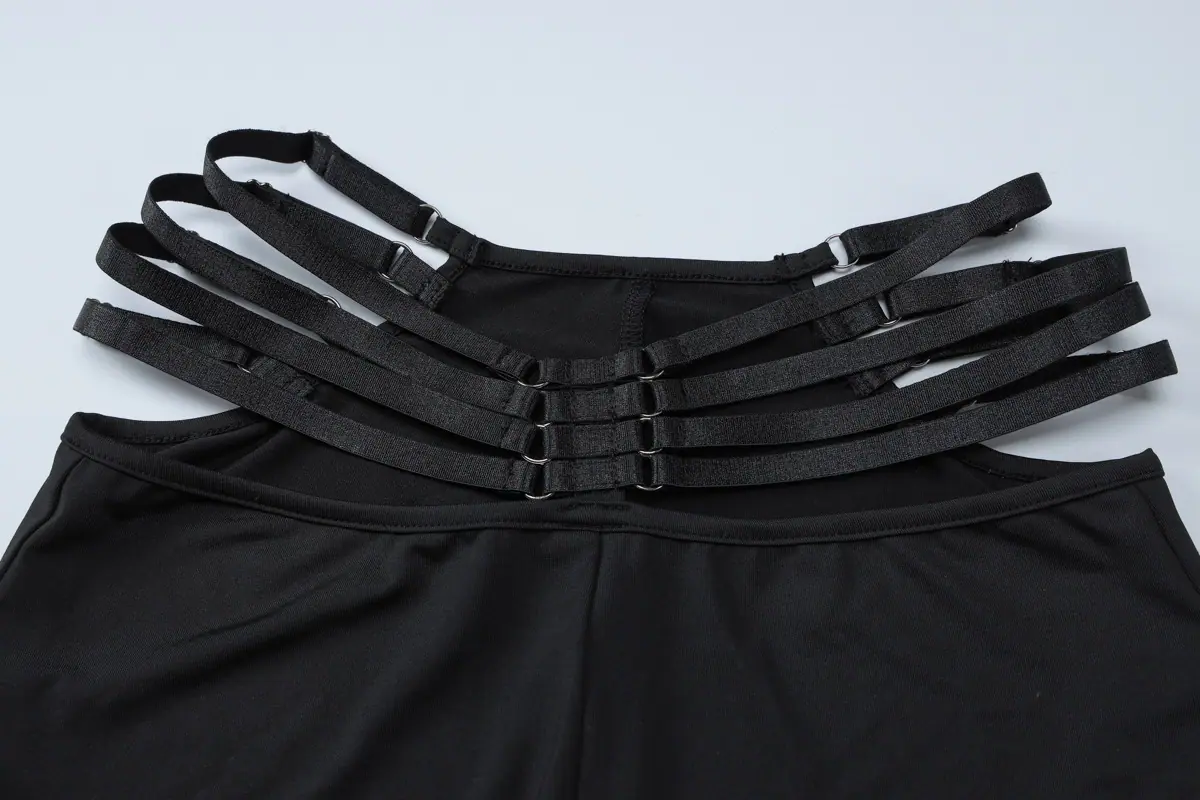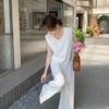 Ropa nueva transfronteriza europea y americana para mujer 2025 moda de invierno temperamento tirantes slim color sólido abertura vestido con lazo mujer