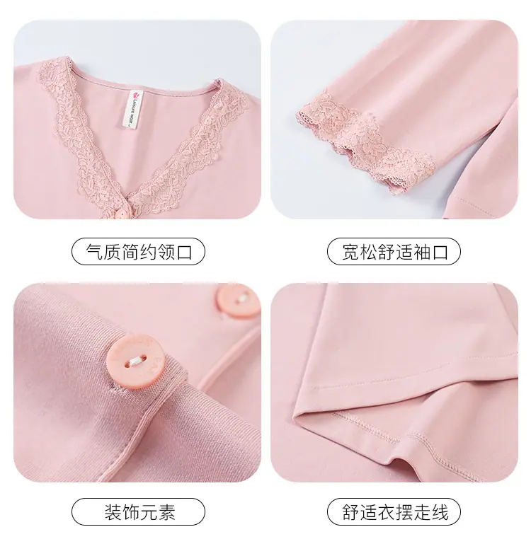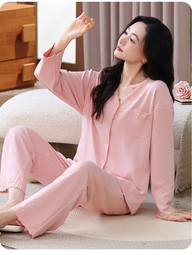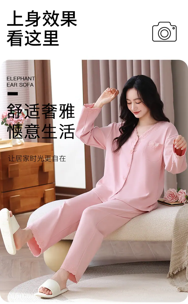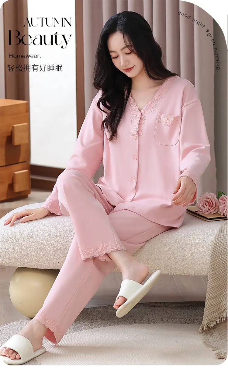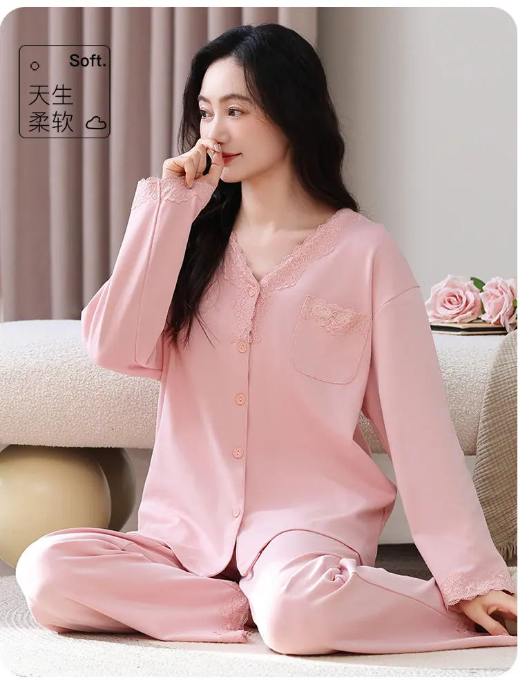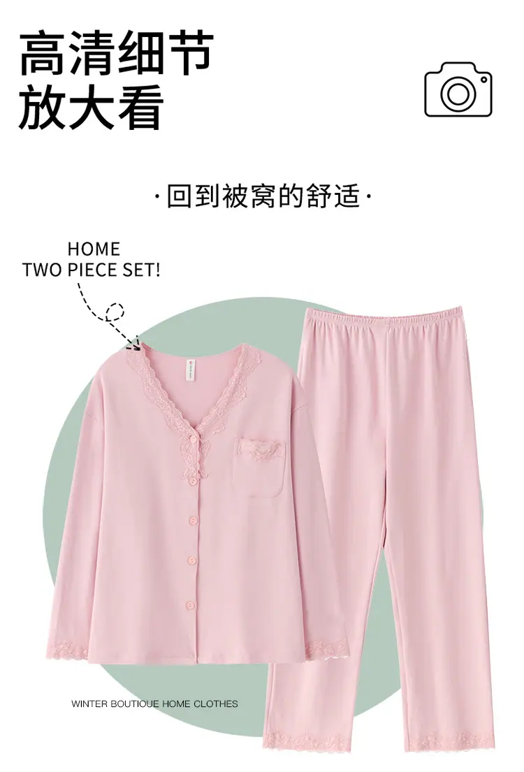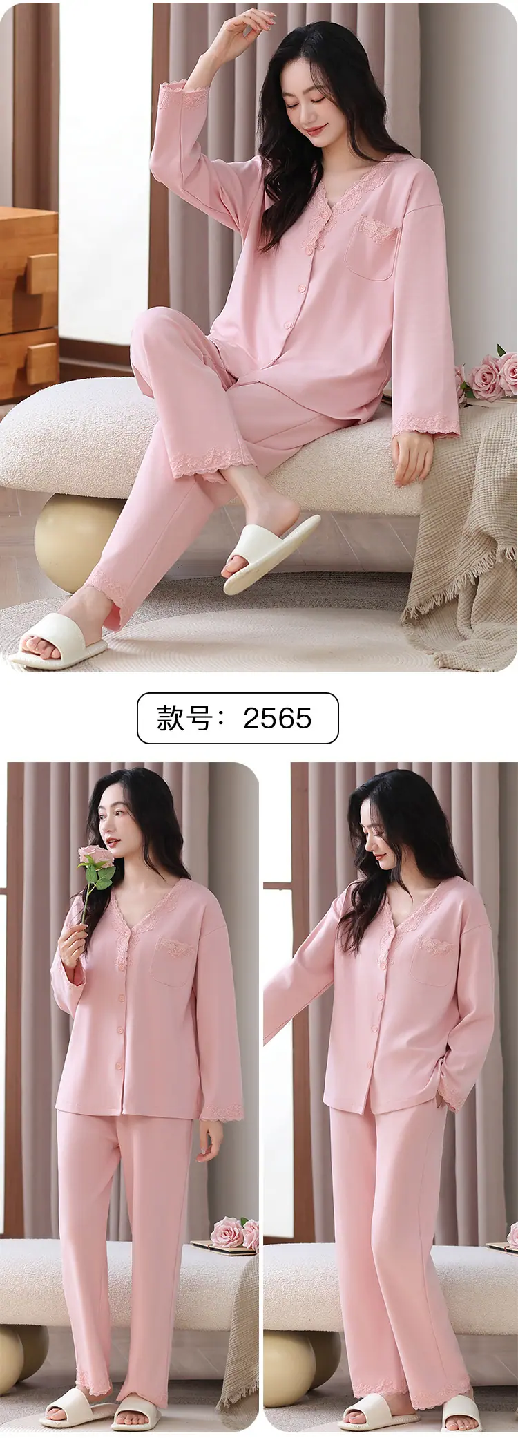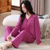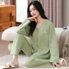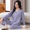 Pijamas de Otoño para Mujer Tejido 100% Algodón Manga Larga Estilo Fino Otoño/Invierno Conjunto de Alta Gama Ropa para Primavera/Otoño Ropa para el Hogar
