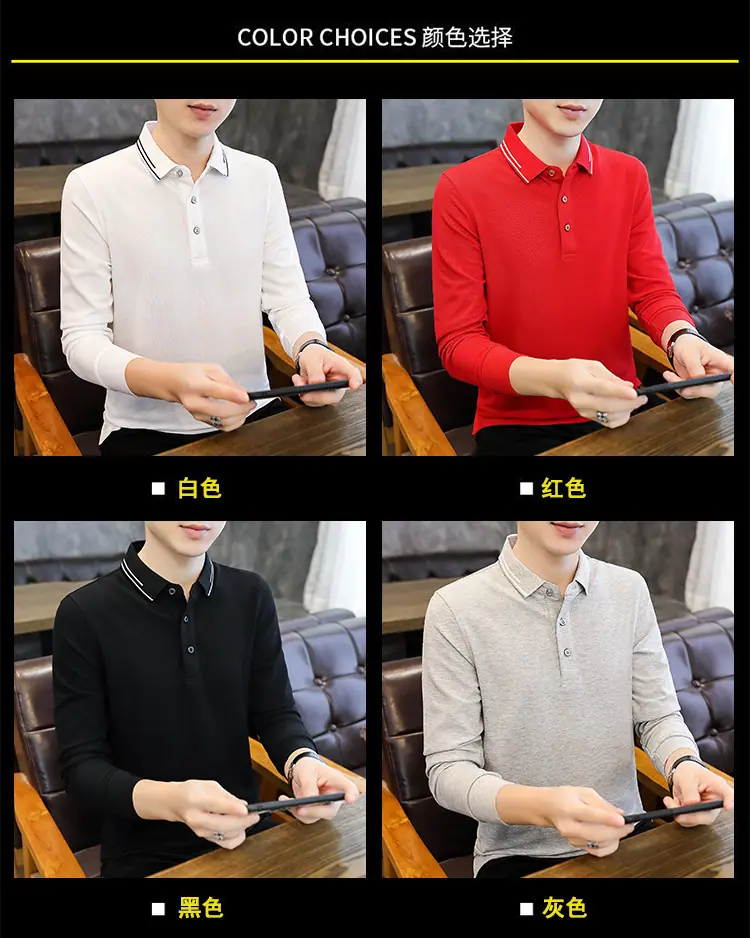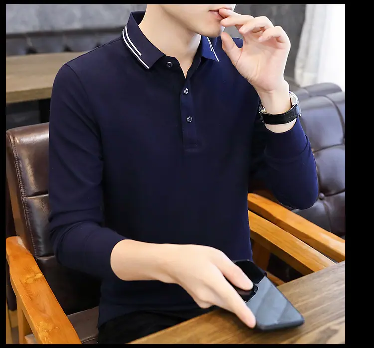 Compra Camiseta de Manga Larga para Hombre Nueva de Primavera Cuello de Negocios Polo para Hombre Estilo para Hombre al por mayor en Joom.pro