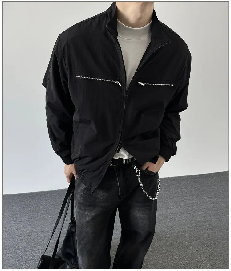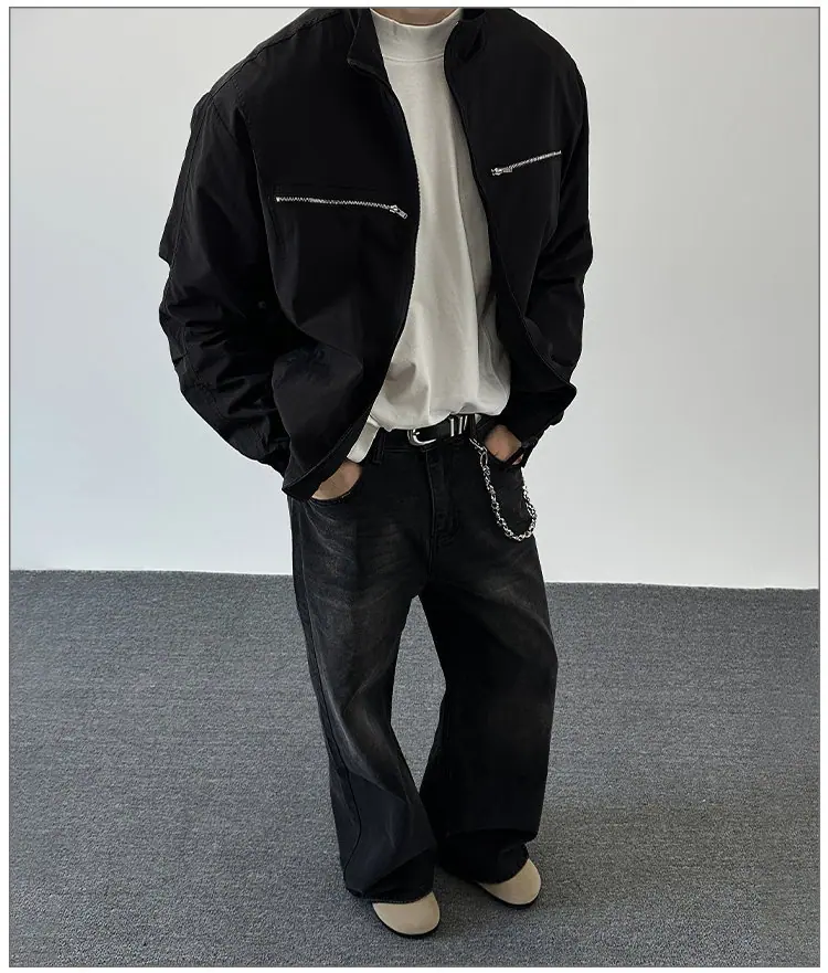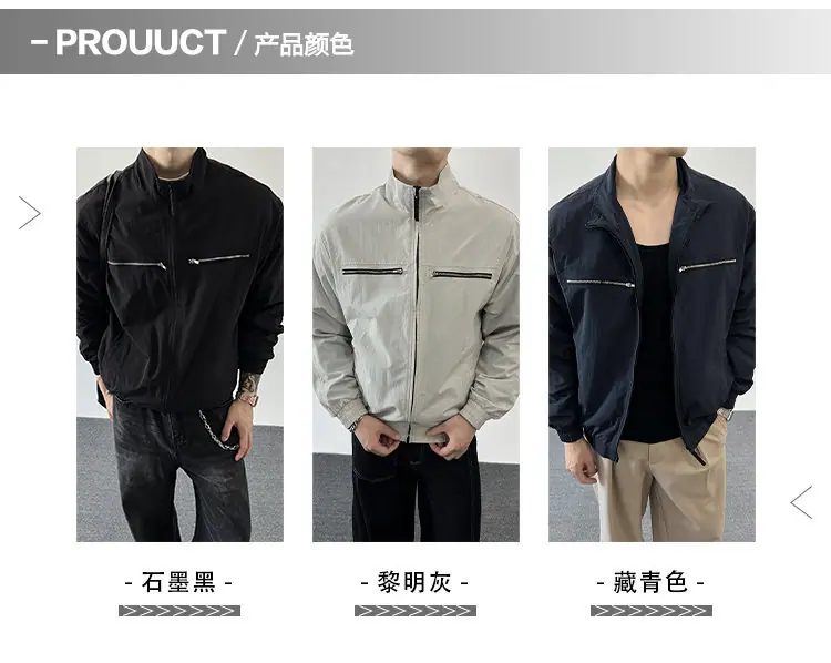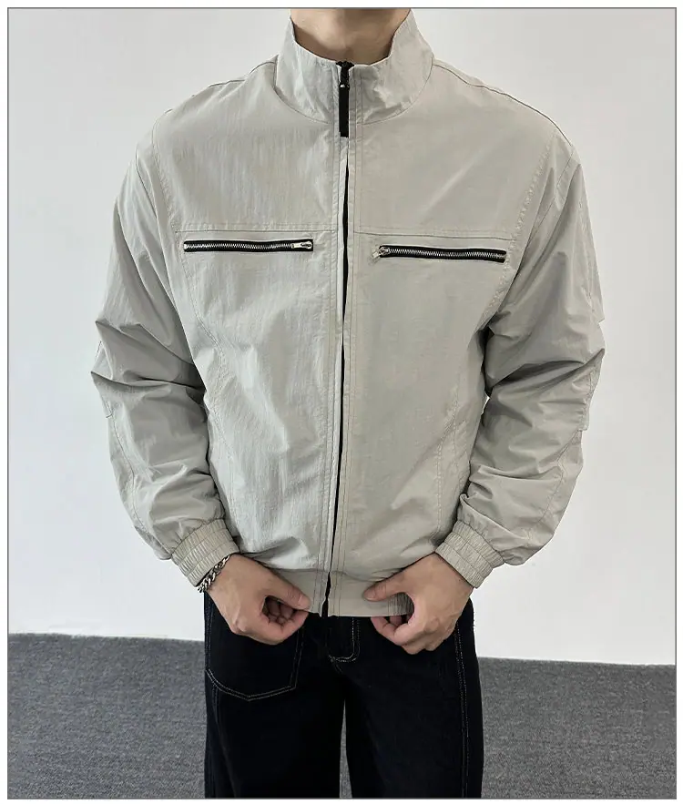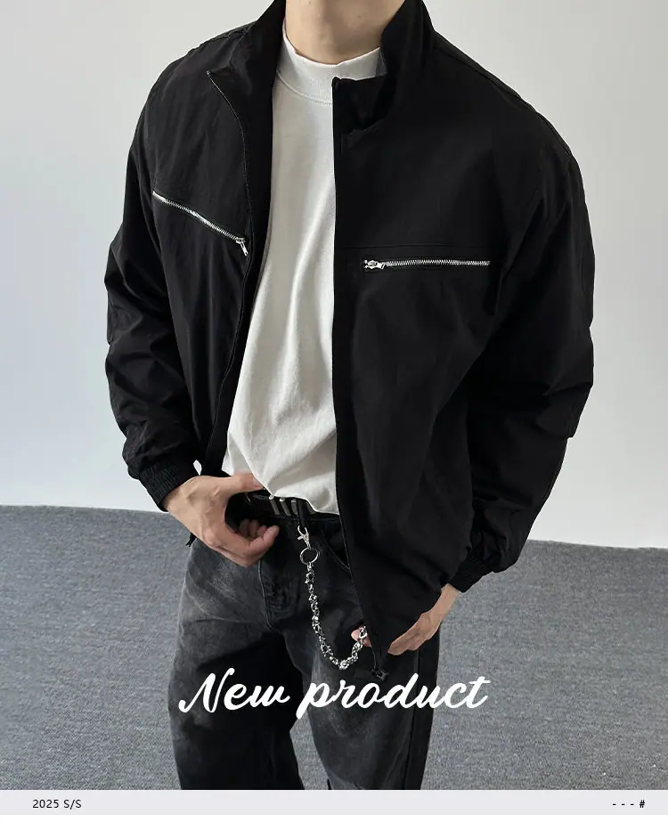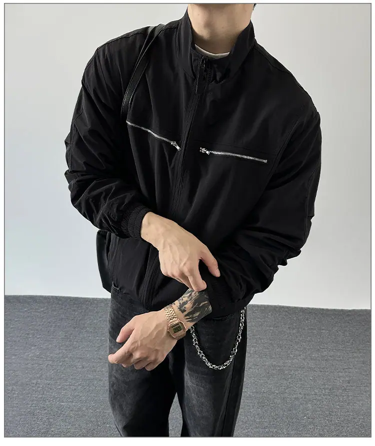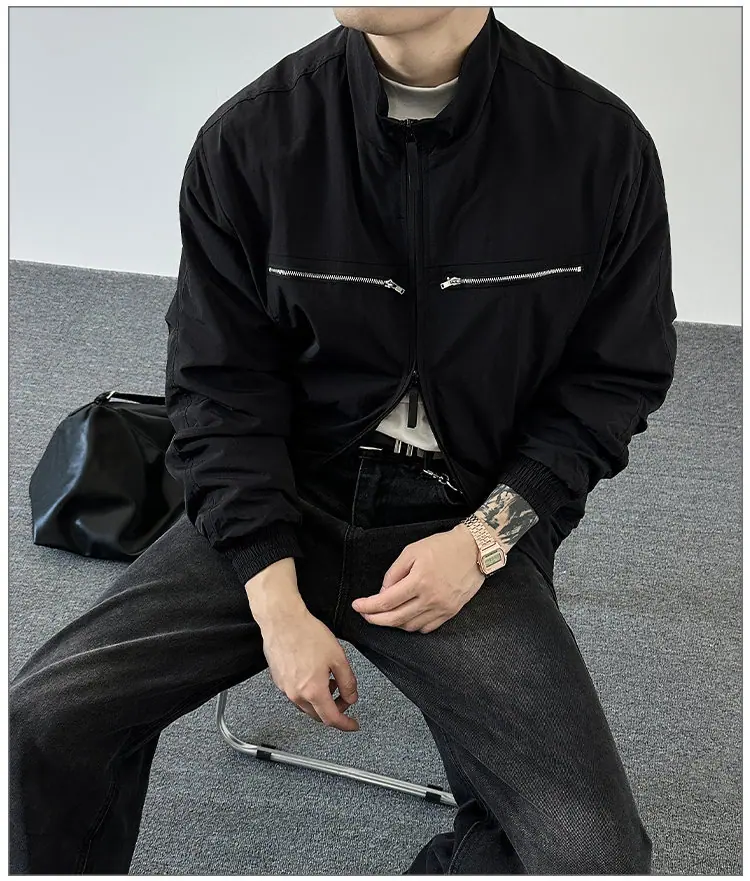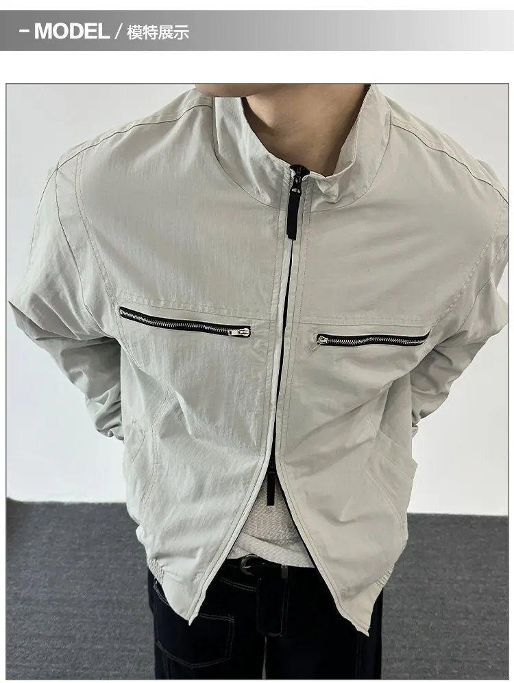 2025 Otoño Nuevo Chaqueta con Cremallera Cuello Alto para Hombre Casual Deportivo Guapo Holgado Ropa de Trabajo Tendencia Marca Adolescente Top