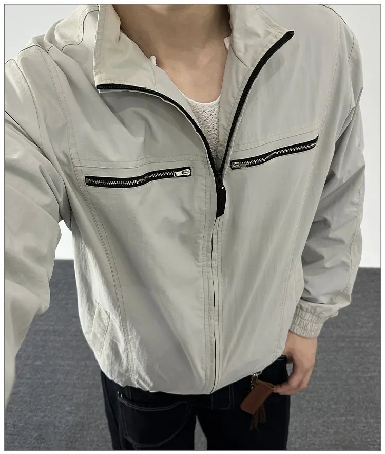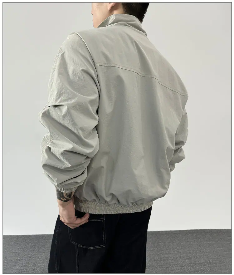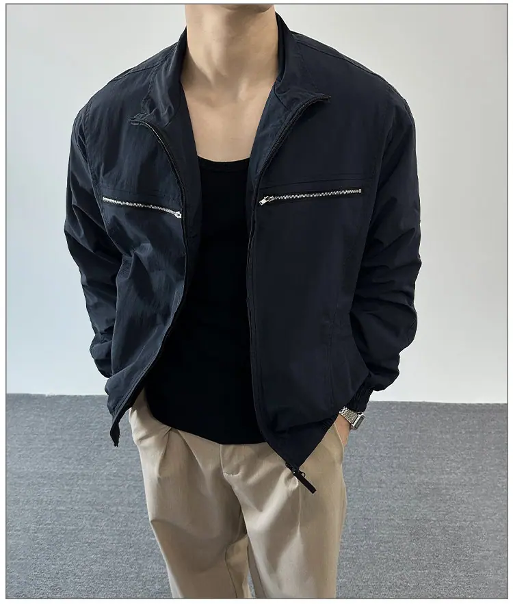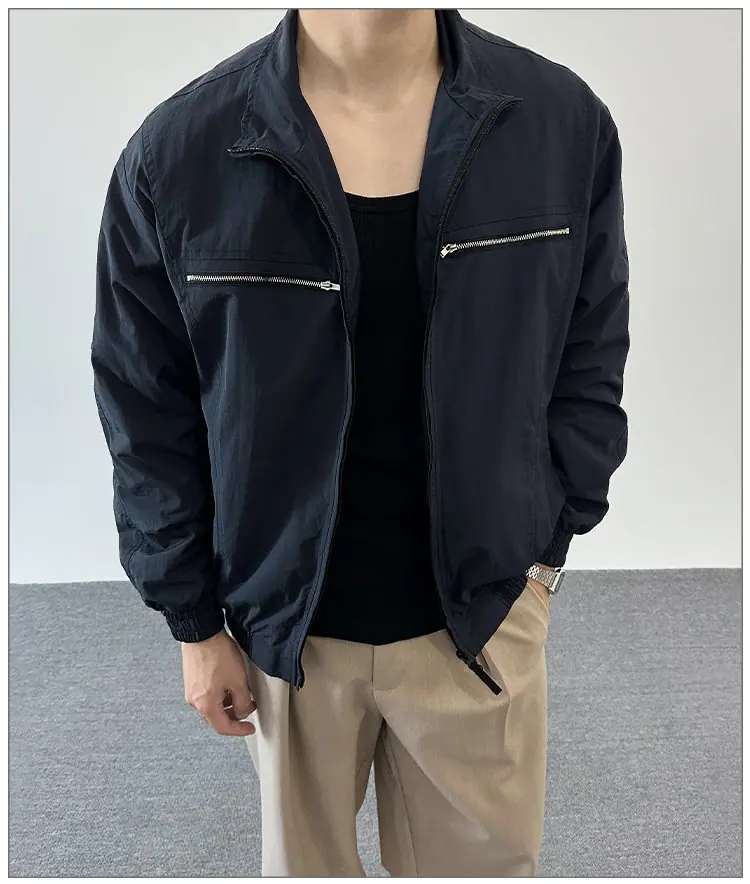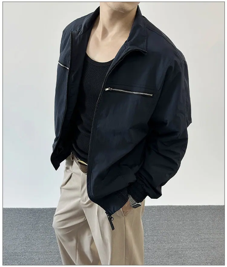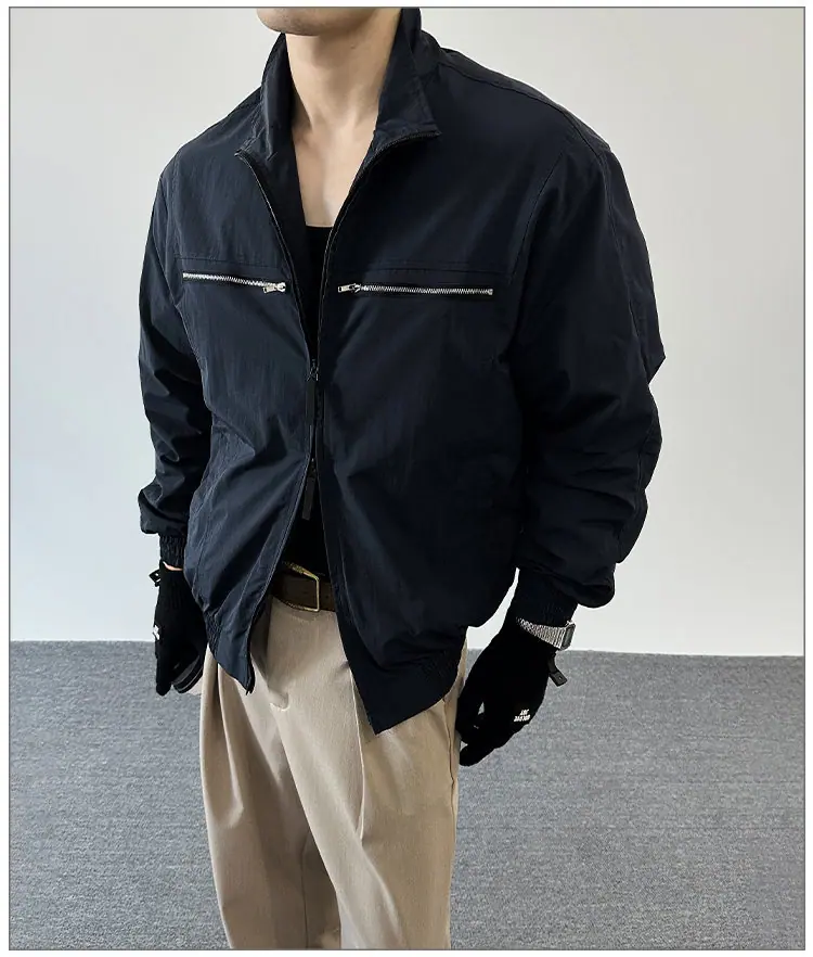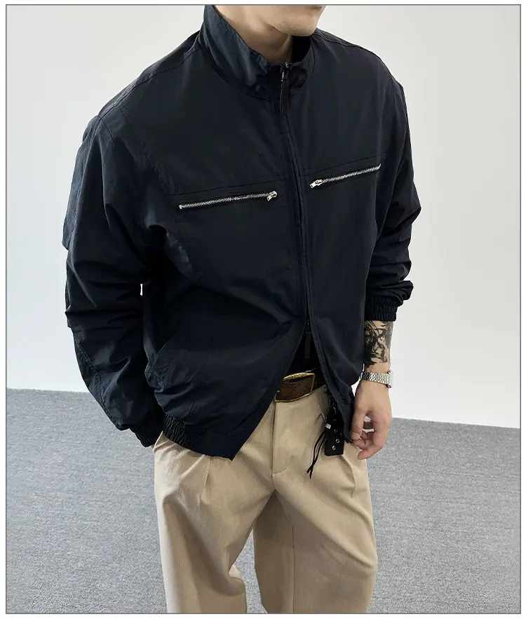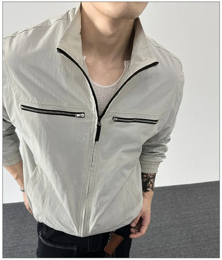 2025 Otoño Nuevo Chaqueta con Cremallera Cuello Alto para Hombre Casual Deportivo Guapo Holgado Ropa de Trabajo Tendencia Marca Adolescente Top
