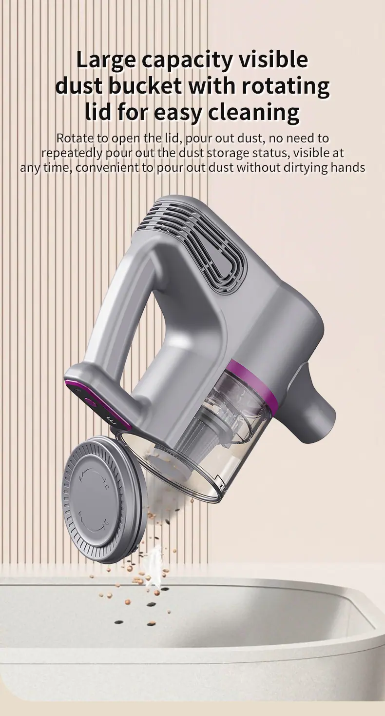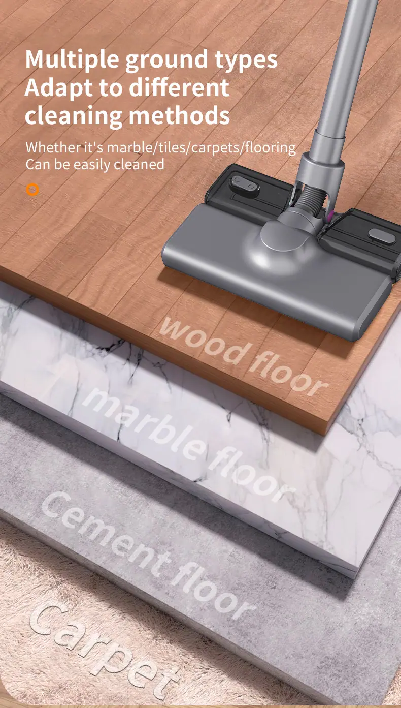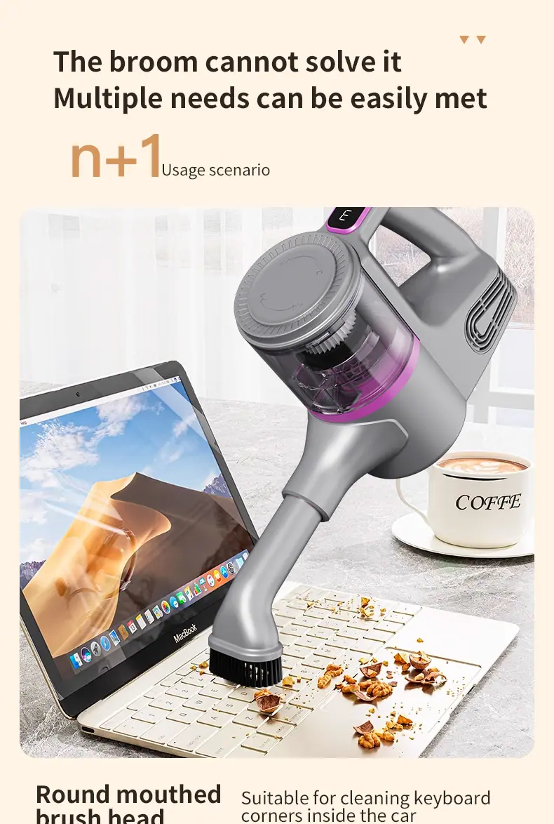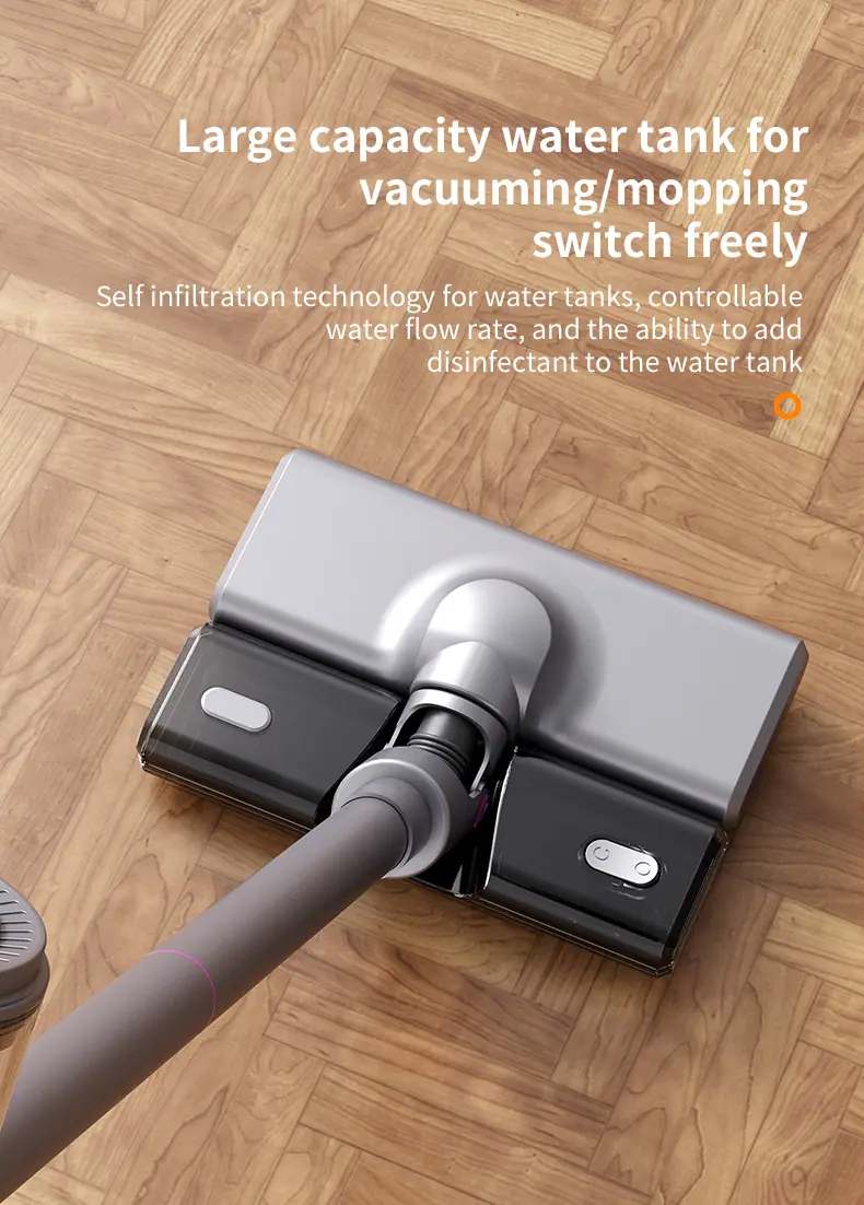 Función : Diseño dividido, pantalla LCD de tres niveles, aspirado y trapeado en uno, aspirado, uso multirango como en camas, en coches, en sofás.