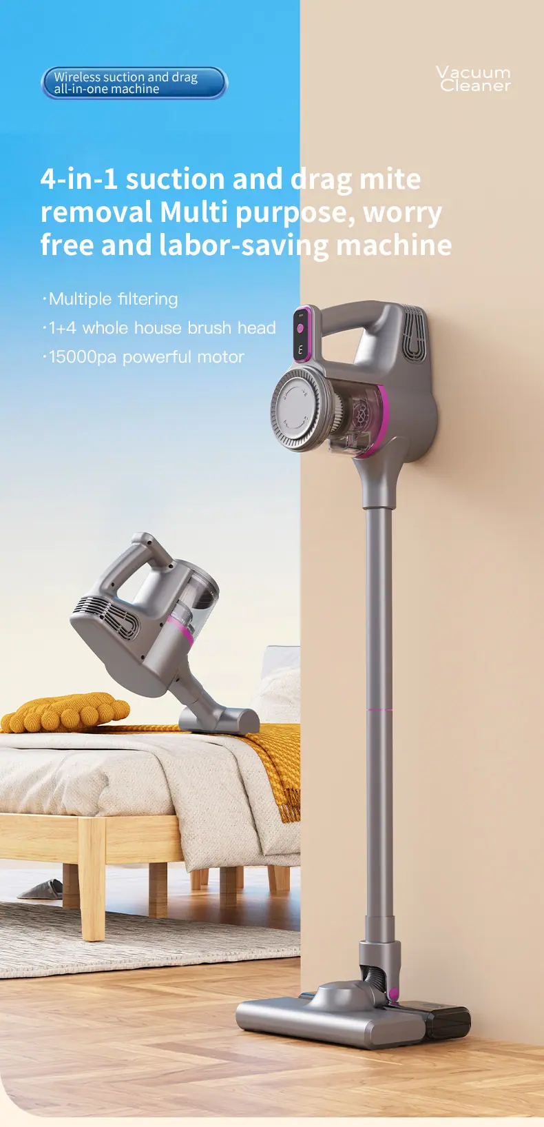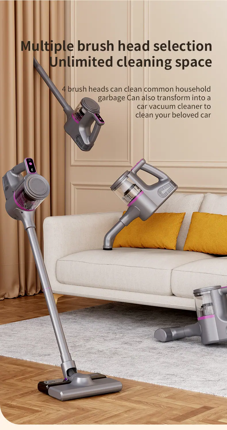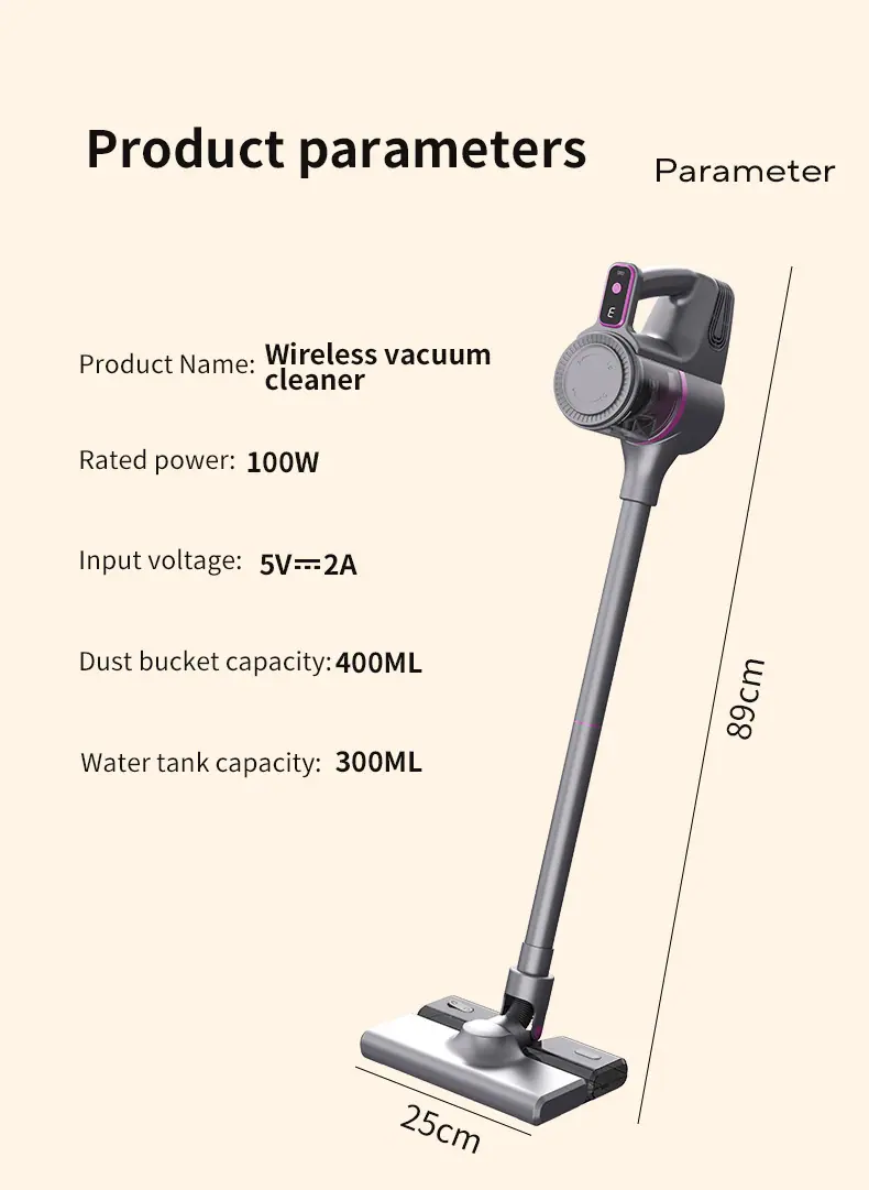 Función : Diseño dividido, pantalla LCD de tres niveles, aspirado y trapeado en uno, aspirado, uso multirango como en camas, en coches, en sofás.