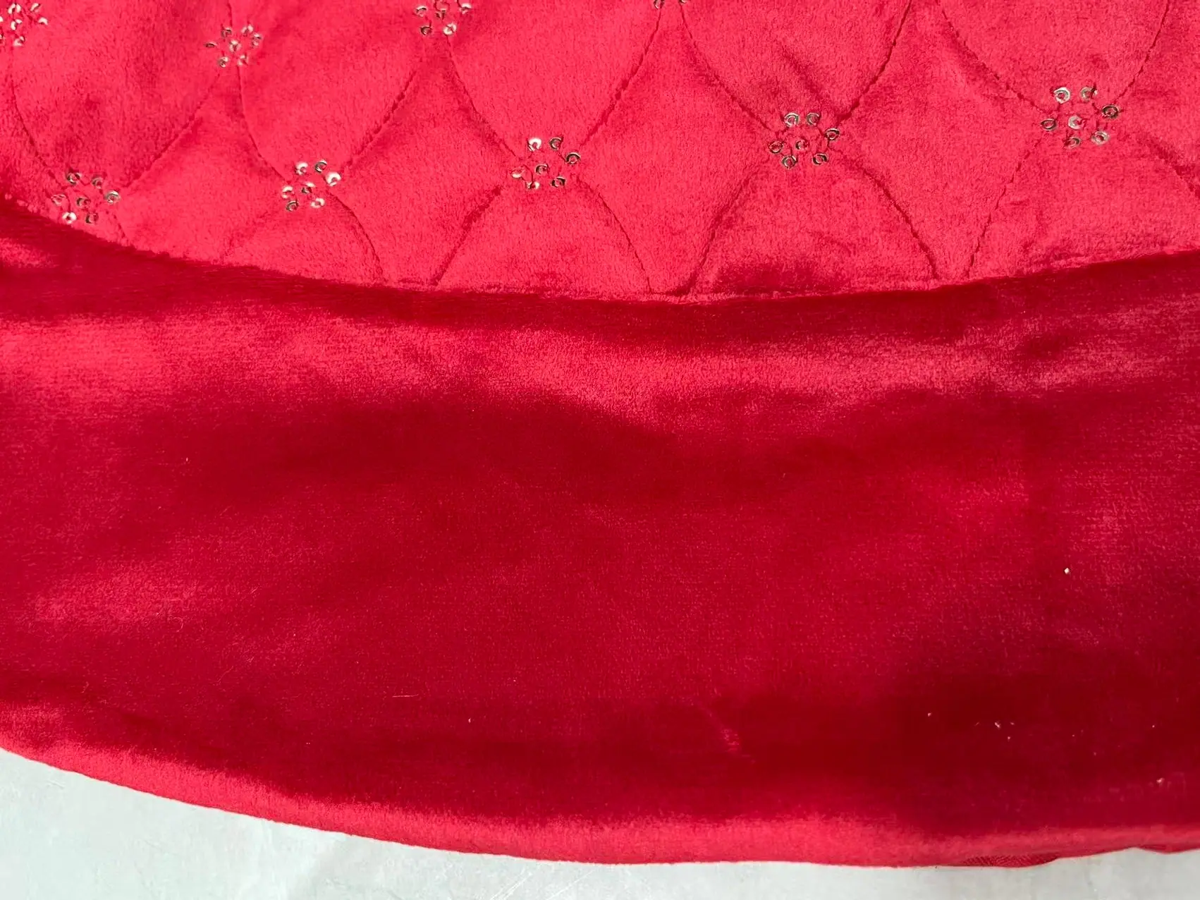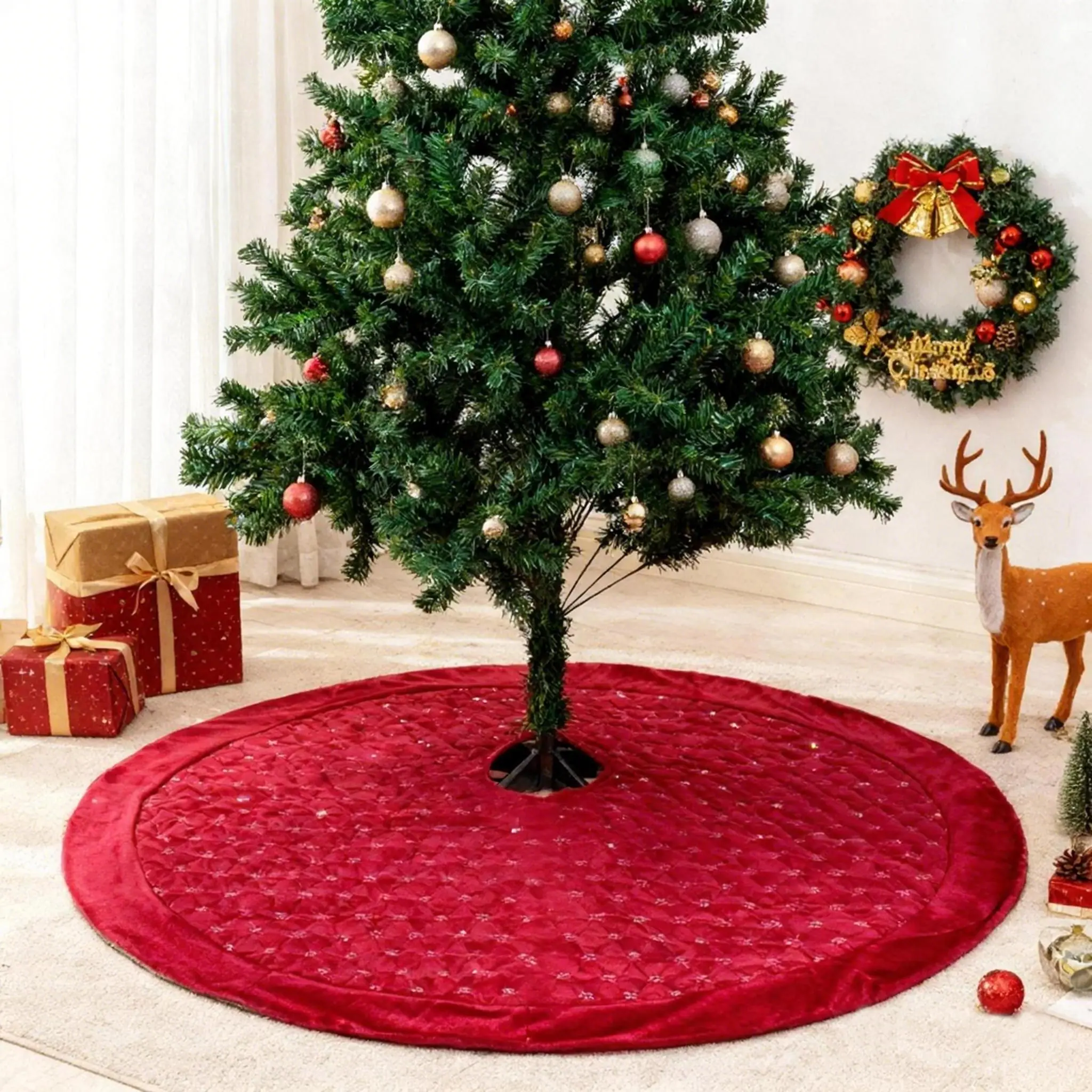 Falda de Árbol de Navidad Roja de Terciopelo Suave de 122 cm con lentejuelas doradas y puño de piel roja SY# SH2030L