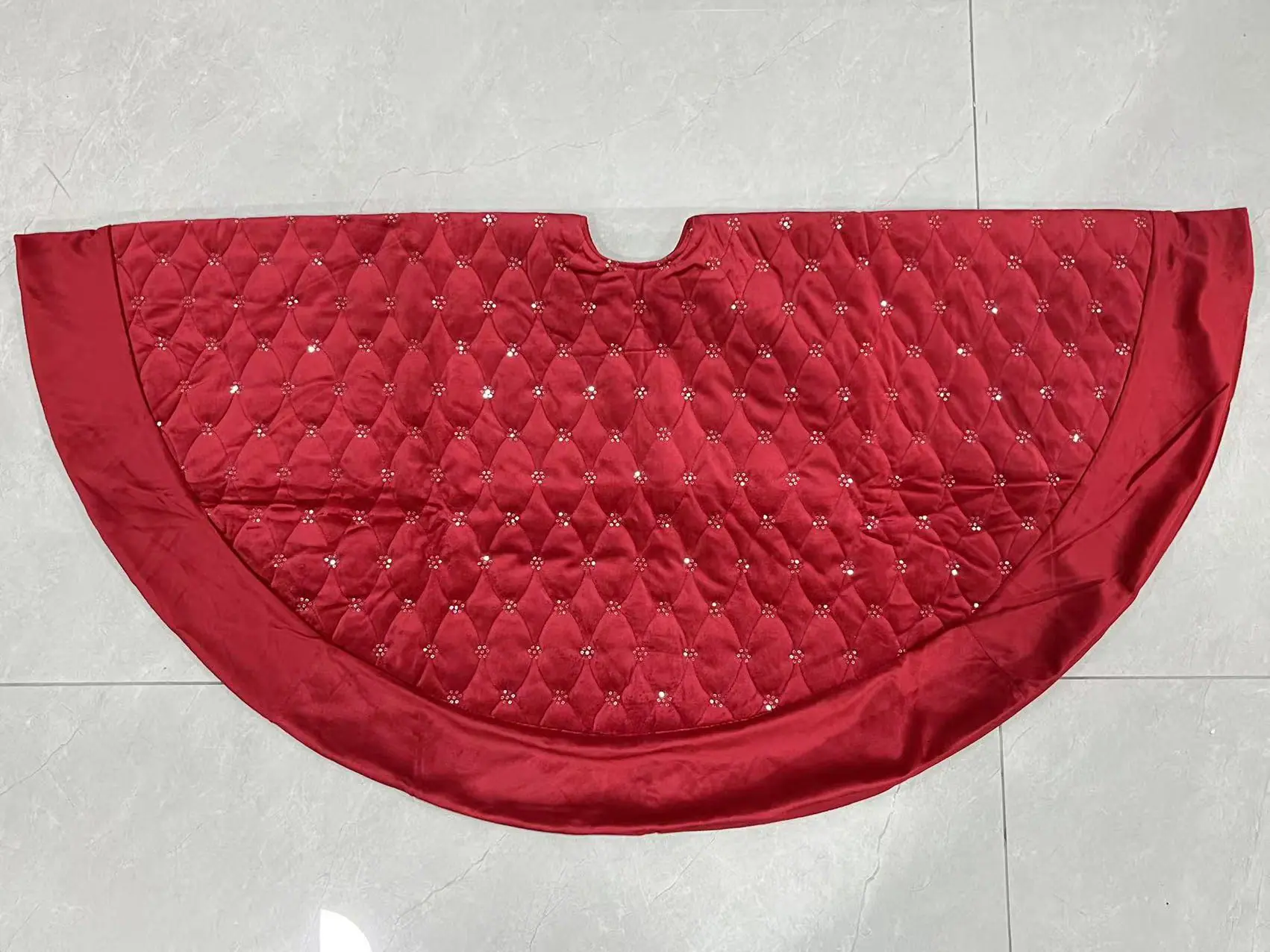Tamaño: 48 pulgadas (DIA 122cm) Color: Rojo Material: Terciopelo Tamaño de la caja: 42x32x24cm Cantidad de cajas: 12 piezas Detalles: 1. Alta Calidad : MaterialElaborado con tela premium, este Calcetín de Terciopelo Rojo garantiza durabilidad y longevidad, perfecto para decoración navideña repetida. 2. Diseño Elegante : Con lentejuelas doradas y un puño de piel roja, esta falda añade un toque de elegancia y sofisticación a su árbol de Navidad.