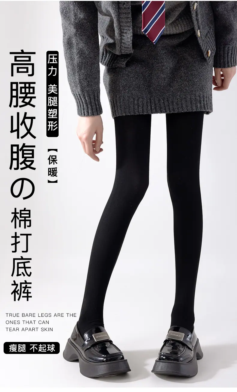 Black - footed Vertical cotton leggings 300g (plus velvet)