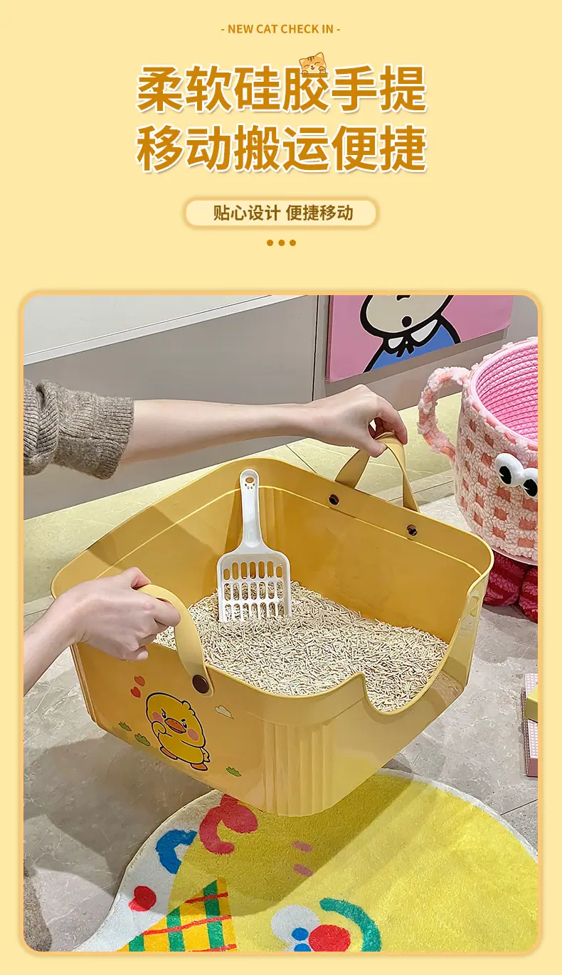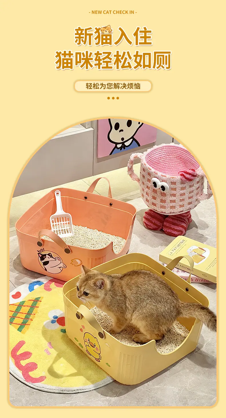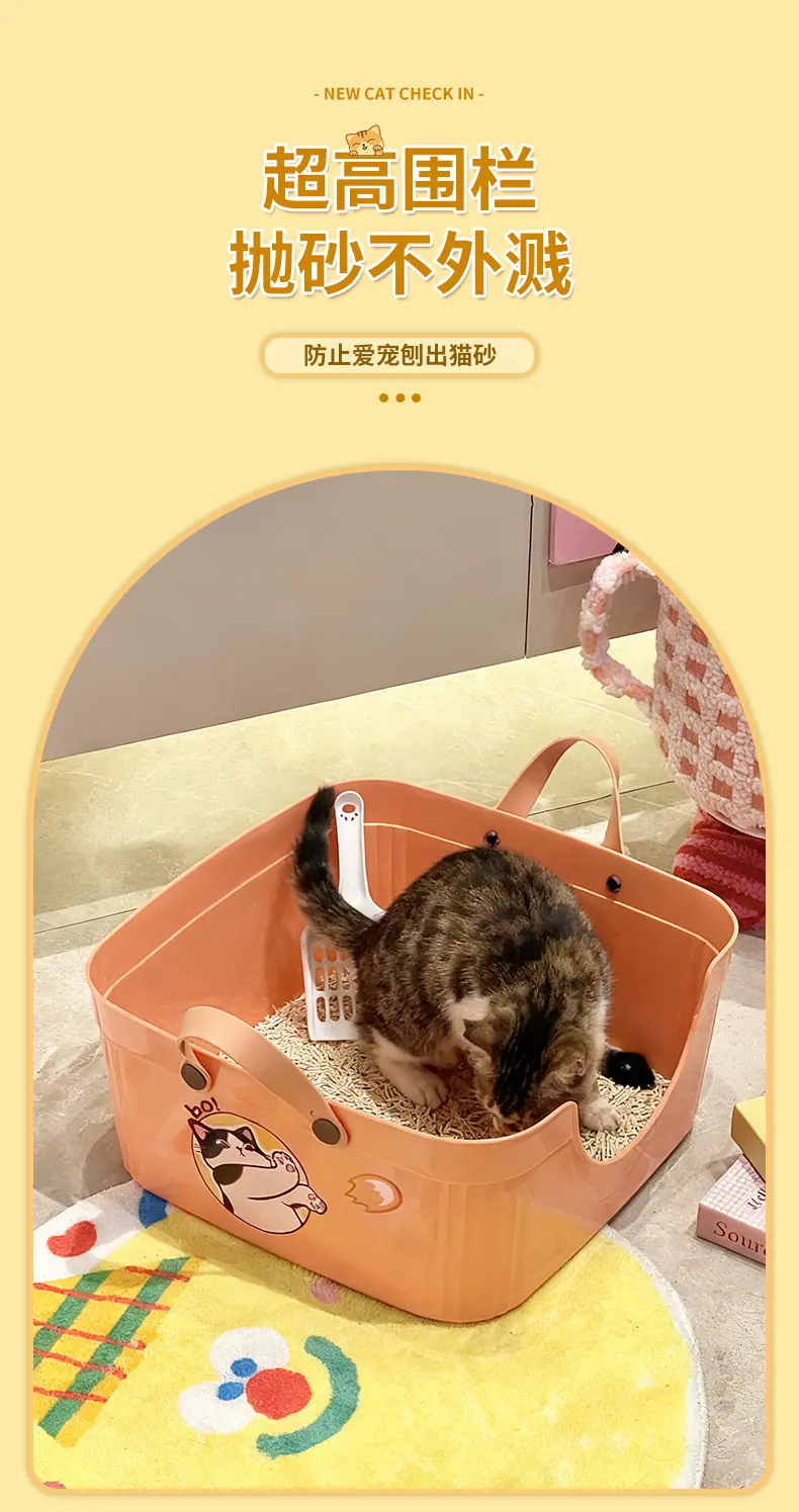 Compra Caja de Arena Abierta para Gatos Borde Alto Anti-Salpicaduras Inodoro para Gatos Caja de Arena Semicerrada para Gatos con Pala para Arena Mango Recipiente para Excremento de Gato al por mayor en Joom.pro