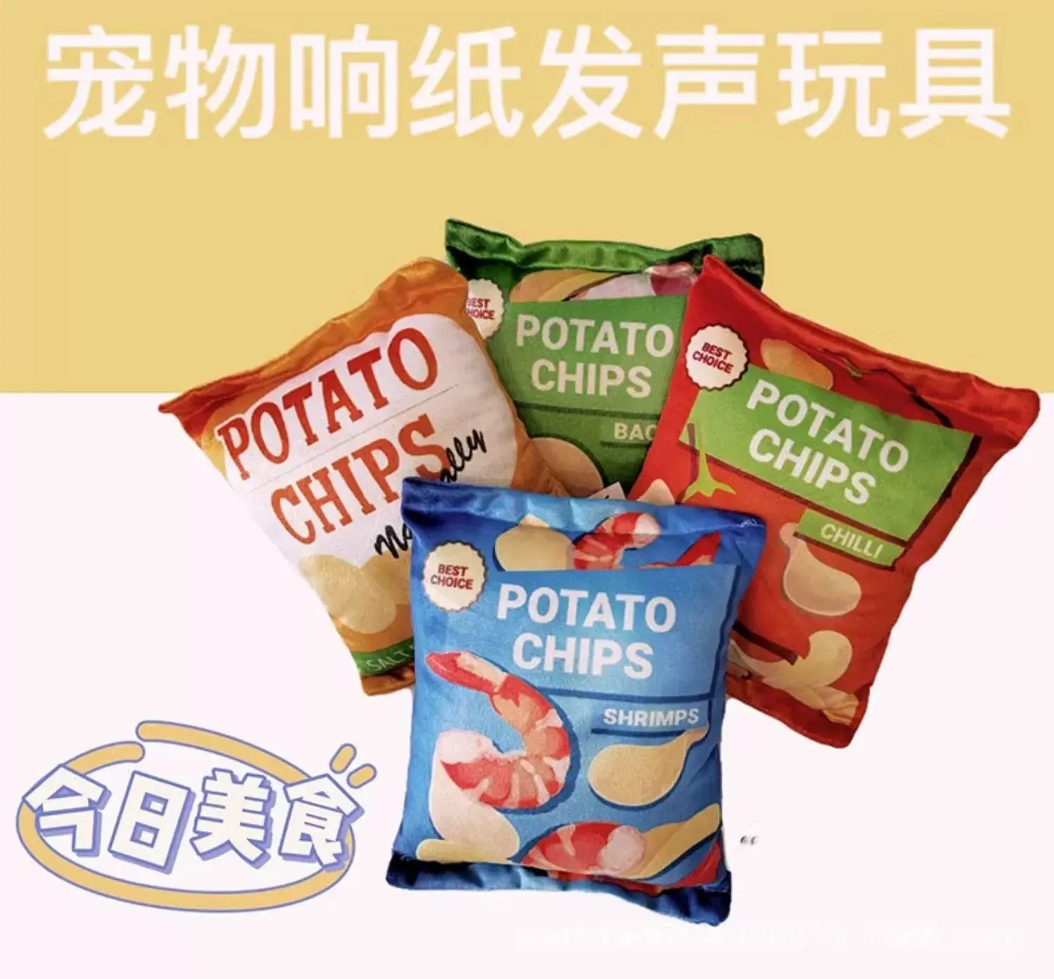Fruit watermelon (red), Fruit orange (orange), Potato chips shrimp flavor blue, Original potato chips (orange)